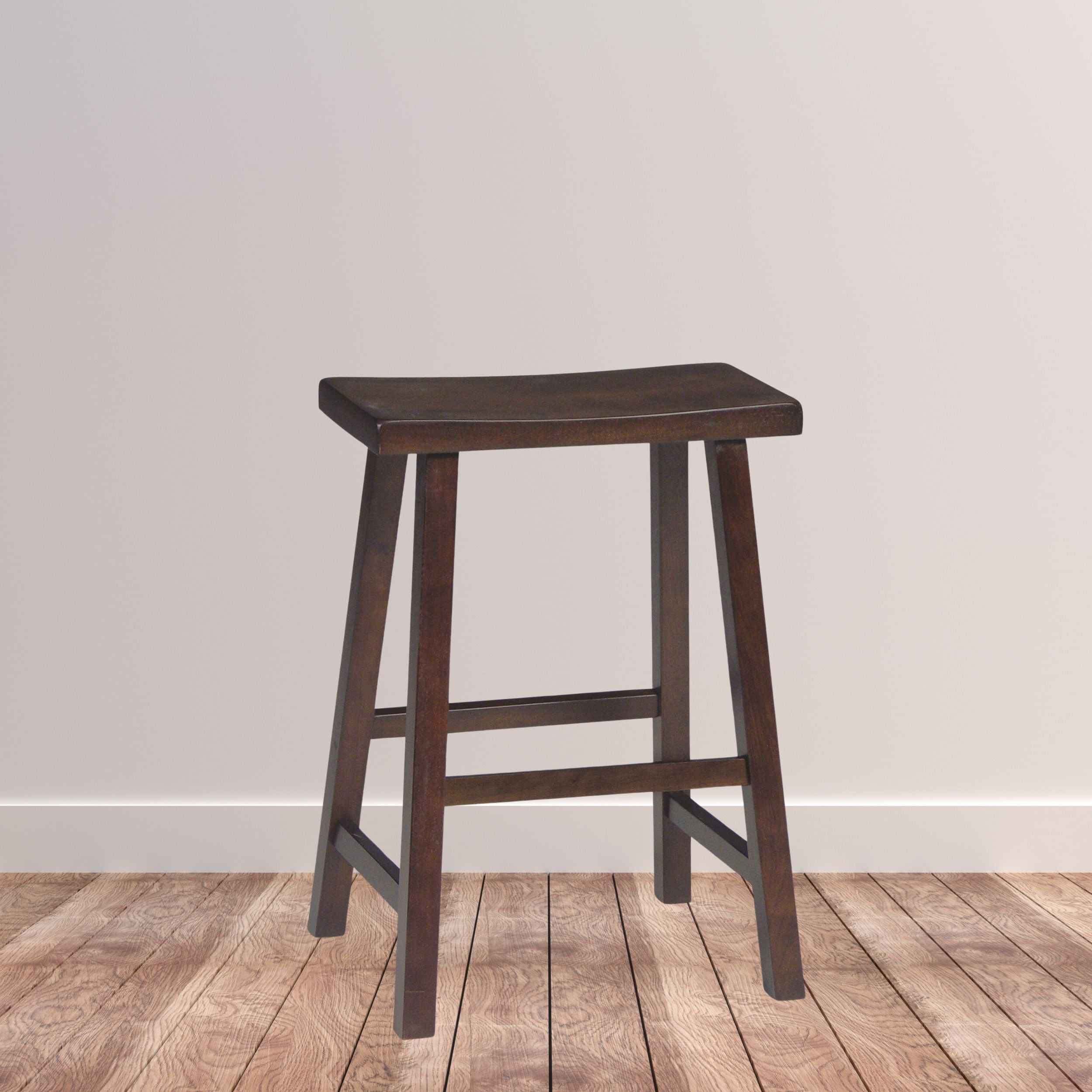 Crafted from solid wood Walnut finish Ideal for low counters and bar tables Inspired by Chinese furniture Seat shape helps maintain adequate seating position and eliminates back and neck strain Features convenient foot rests Available in multiple finishes Not rated for commercial use, residential use only Saddle seat counter stool is fully assembled Dimensions: 14.5″ x 17.5″ x 23.75″ Seat is 23.75″ H and measures 17.5″ W x 9″ D Weight: 11.5 lbs. Recommended Location: Dining Room & Kitchen
