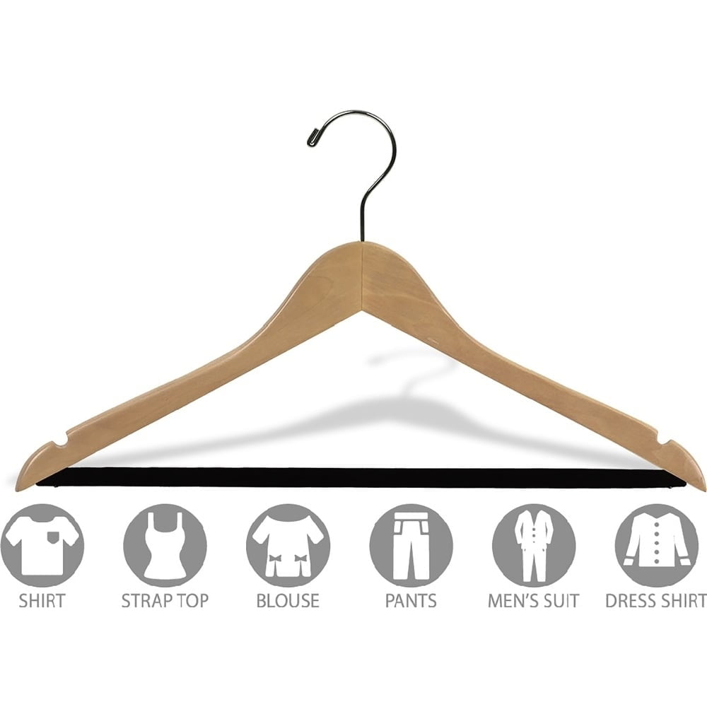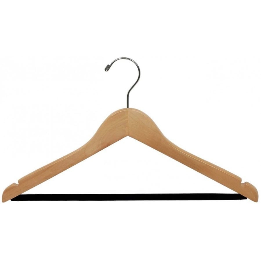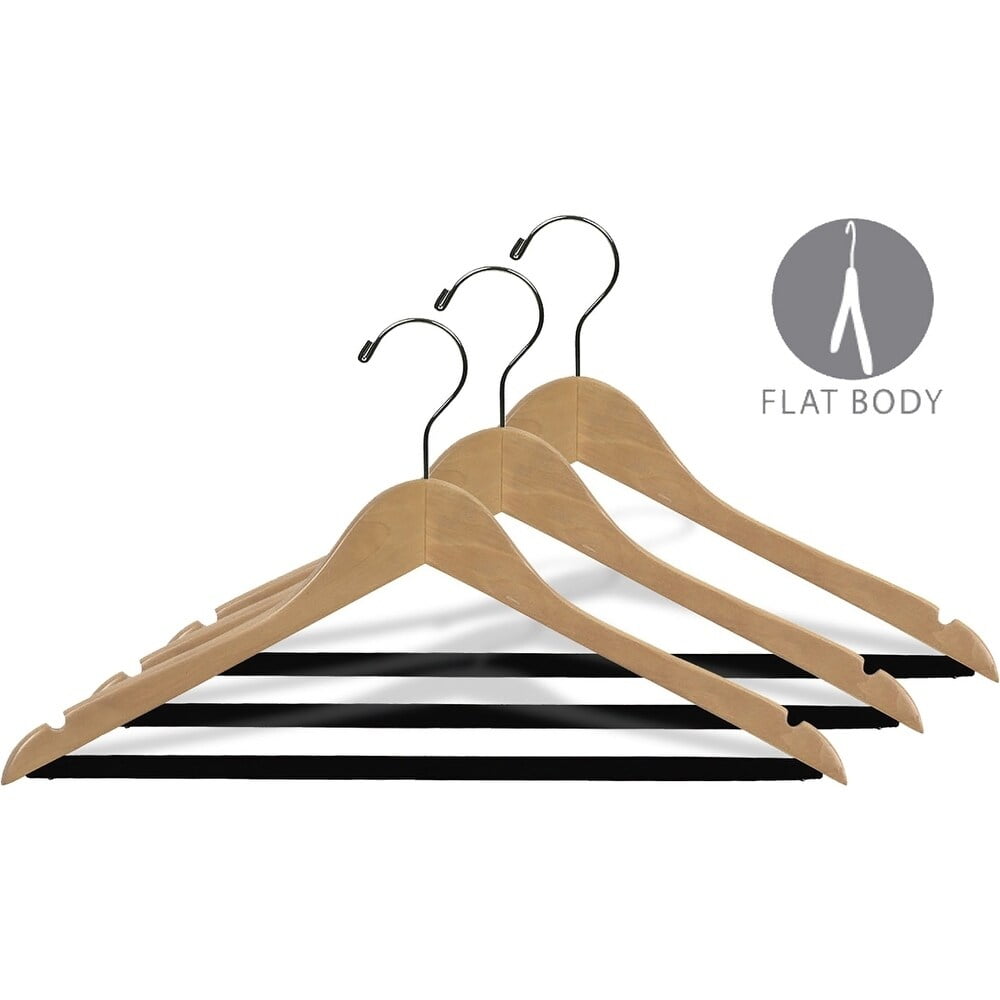 INTERNATIONAL HANGER 20 inch Natural Wood Suit Hanger with Flocked Non-Slip Bar, 25 Pack