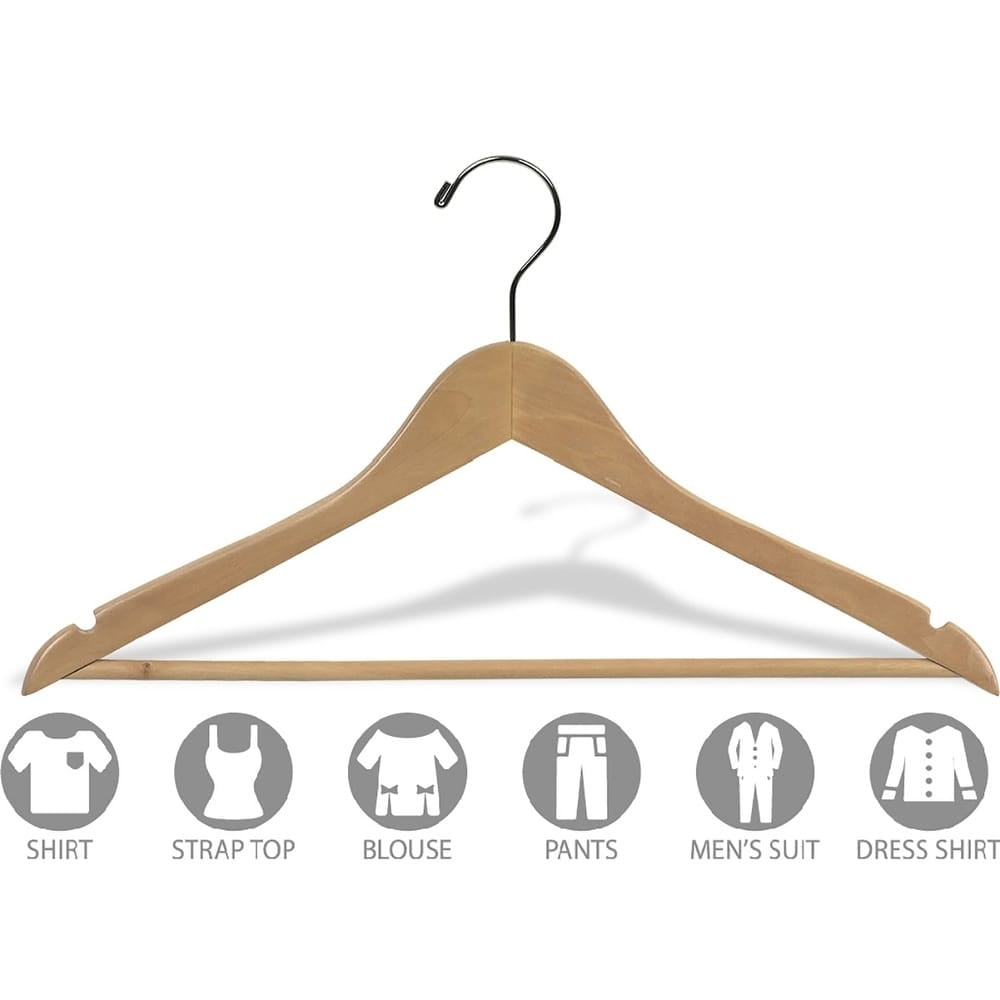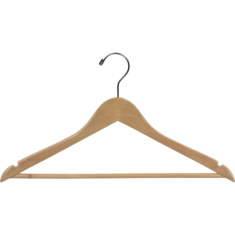 International Hanger Natural Wood Suit Hanger with Solid Bar for Tops or Pants, 100 Pack