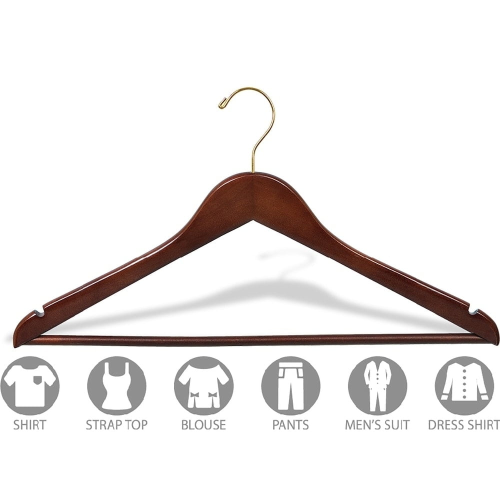 International Hanger Walnut Wood Suit Hanger for Tops or Pants, 50 Pack