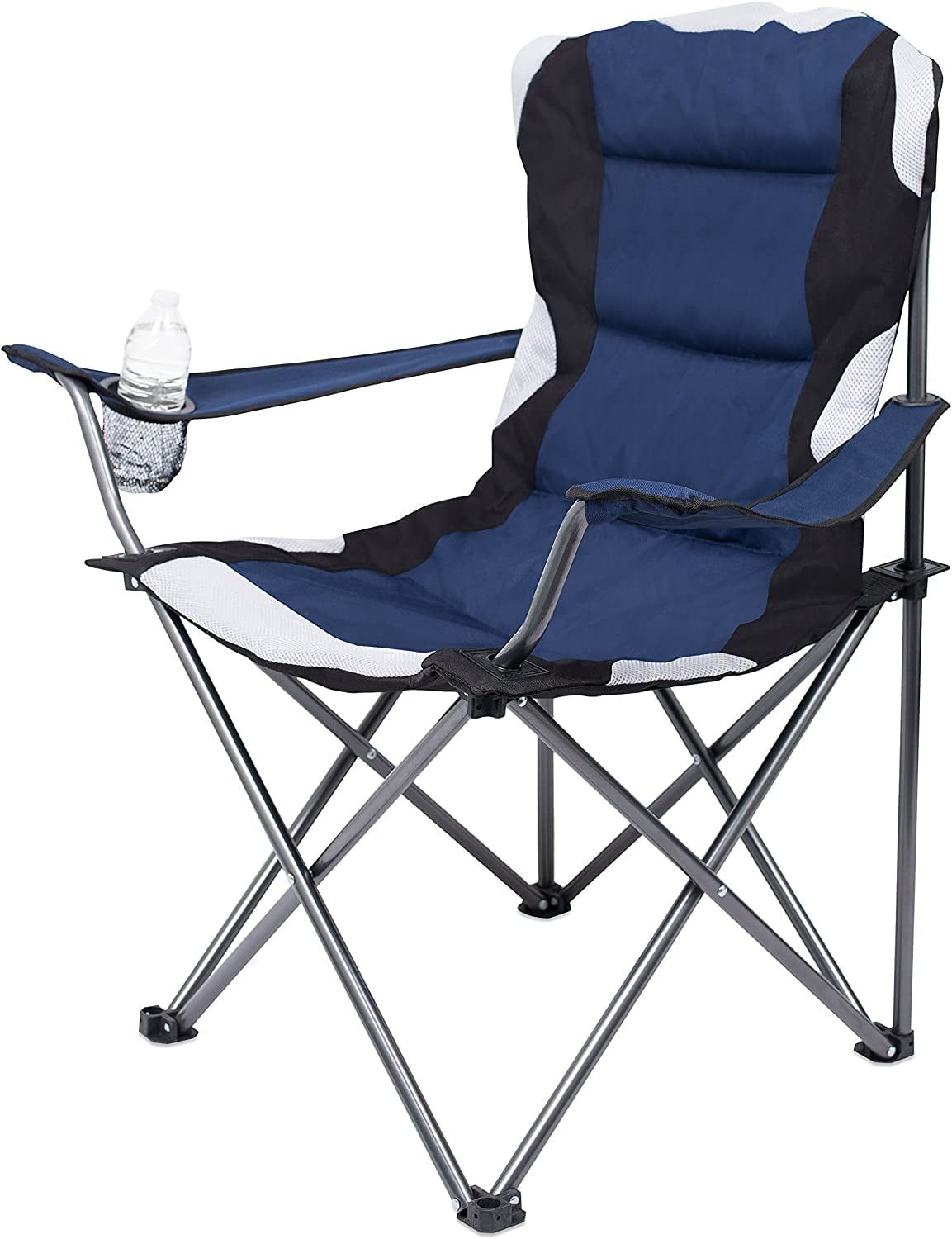 Internet’s Best Padded Camping Folding Chair – Comfortable Outdoor Sports Chairs w/Cup Holder, Portable Carry Bag – for Beach, Park, Soccer, Baseball, Softball, Picnic, Adults – Navy Blue 1 – Pack