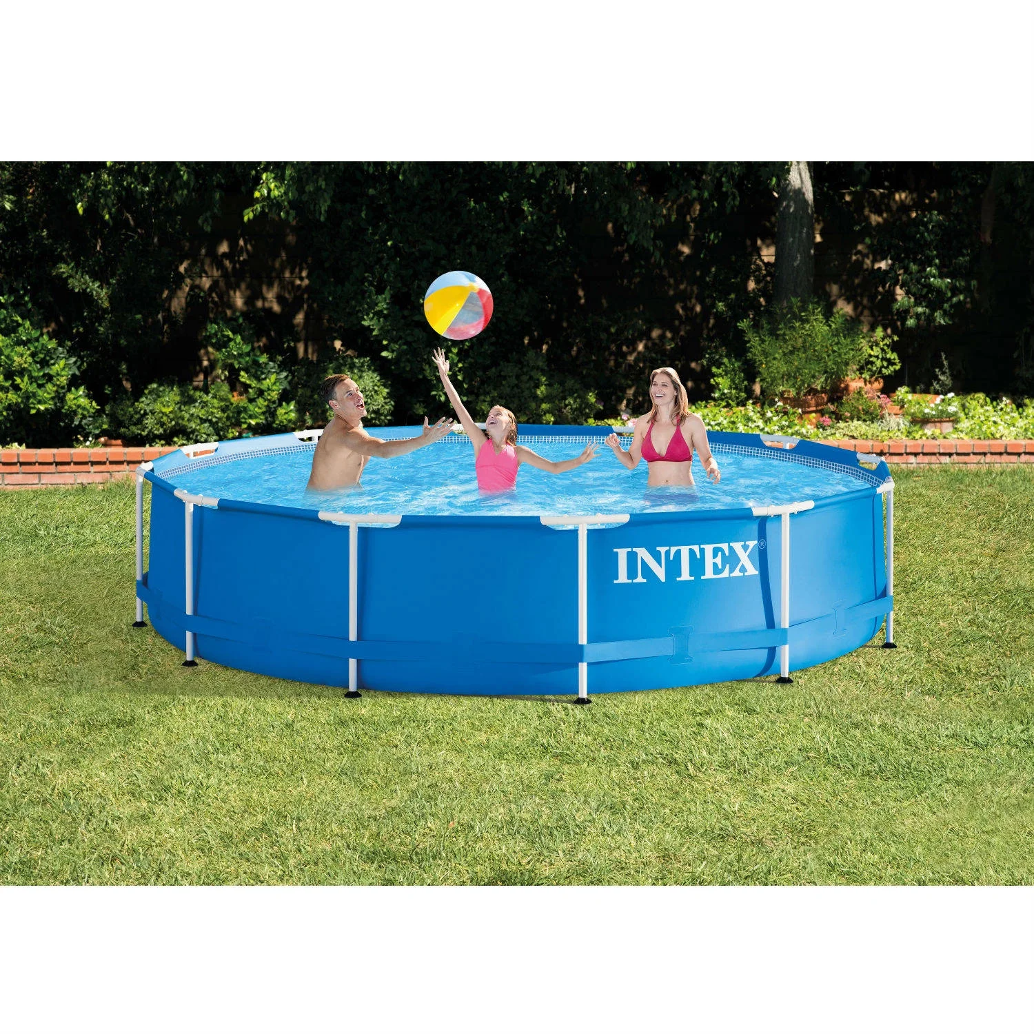 Intex 12′ x 30” Metal Frame Above Ground Swimming Pool with Filter Pump: Hydro Aeration is incorporated into the filter pump providing improved circulation and filtration, improved water clarity, and increased negative ions at the water surface Includes cartridge filter pump with 530 gallons per hour pump flow rate Perfect for family’s first pool Puncture-resistant 3-ply material Convenient drain plug connects to garden hose for easy water draining Setup and pool maintenance DVD included for convenience Ready for water in 30 minutes Age Range: 6 years and up