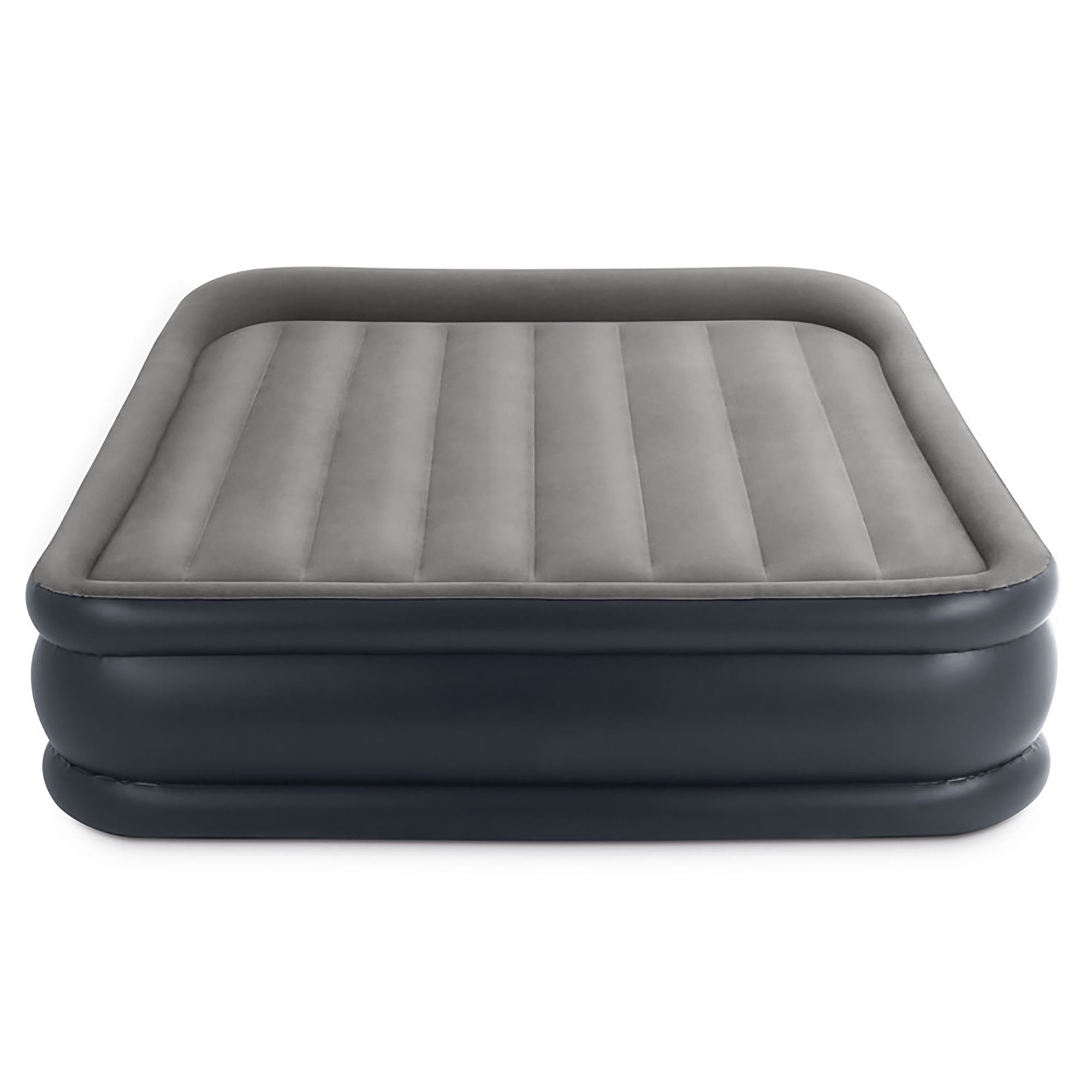 INTEX: DELUXE PILLOW REST: QUEEN – AIRBED – The Intex Deluxe Pillow Rest Queen Airbed combines luxury, convenience, and durability for a premium sleeping experience. Part of the Dura-Beam Plus Series, this airbed is designed with Fiber-Tech Technology to provide exceptional comfort, stability, and support. Standing at 16.5 inches high, it offers easy accessibility and a feel closer to a traditional mattress. The soft, velvety sleeping surface, combined with a built-in pillow, ensures added comfort for a restful night’s sleep. Its unique edge construction enhances stability, while the powerful internal pump inflates the mattress in approximately 2¼ minutes, making setup quick and hassle-free. With an approximate size of 60″ x 80″ x 16.5″ and a maximum weight capacity of 600 lbs, this airbed is ideal for guests, travel, or everyday use. A convenient carry bag is included for effortless storage and transport. The Deluxe Pillow Rest Airbed elevates your sleeping comfort to a whole new level. KEY FEATURES OVERVIEW: 1) 64135ED Intex 16.5in Queen Deluxe Pillow Rest Raised Airbed with Internal Pump. 2) Dura-Beam Plus Series. 3) The deluxe version of our Pillow Rest Raised Airbed has reached another level of luxury. Engineered with Fiber-Tech Technology, this airbed provides enhanced comfort, stability, and support. The 16.5in raised height provides easy accessibility and a closer feel to traditional mattresses. The soft, velvety sleeping surface and built-in pillow provide extra comfort, while the powerful internal pump allows for easy inflation and deflation. 4) Fiber-Tech Construction. 5) Mattress is raised 16.5in from the floor for convenience. 6) Built-in pillow for added comfort. 7) Unique edge construction provides superior stability. 8) Carry bag is included for easy storage and transport. 9) Powerful internal pump for rapid inflation. 10) Approximate inflation time is 3 1⁄4 mins. 11) Approximate inflated size 60″ x 80″ x 16.5″. 12) Max weight limit 600 lb.