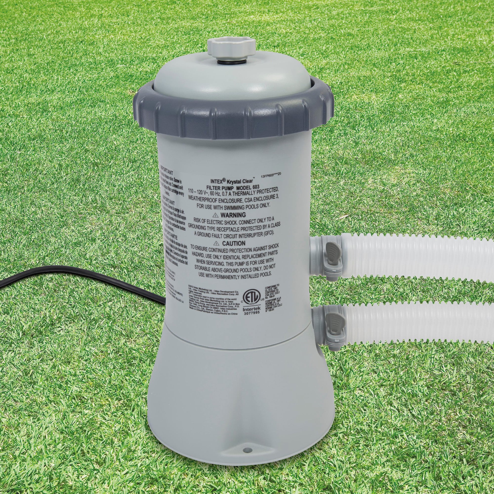 Pool measures 15ft x 33in and holds up to 2,587 gal. (80%) Quick and easy setup; ready for water in 10 minutes Spread out on level ground, inflate the top ring, and fill with water Made with puncture-resistant 3-ply PVC material to resist daily wear and tear Dual suction outlet fittings improve water circulation, hygiene, and clarity 530 GPH Krystal Clear Cartridge Filter pump provides excellent filtration Pump powered by the revolutionary Hydro Aeration® Technology Discover INTEX family pools for backyard use and enjoy pristine water all summer With replaceable Type A/C filter cartridge Repair patch included for easy fixes Ideal for ages 6+ Pool Shape: Round Weight: 48.6 lbs. Dimensions (L x W x H): 15 ft x 15 ft x 33 in Disclaimer: Check HOA rules before purchase