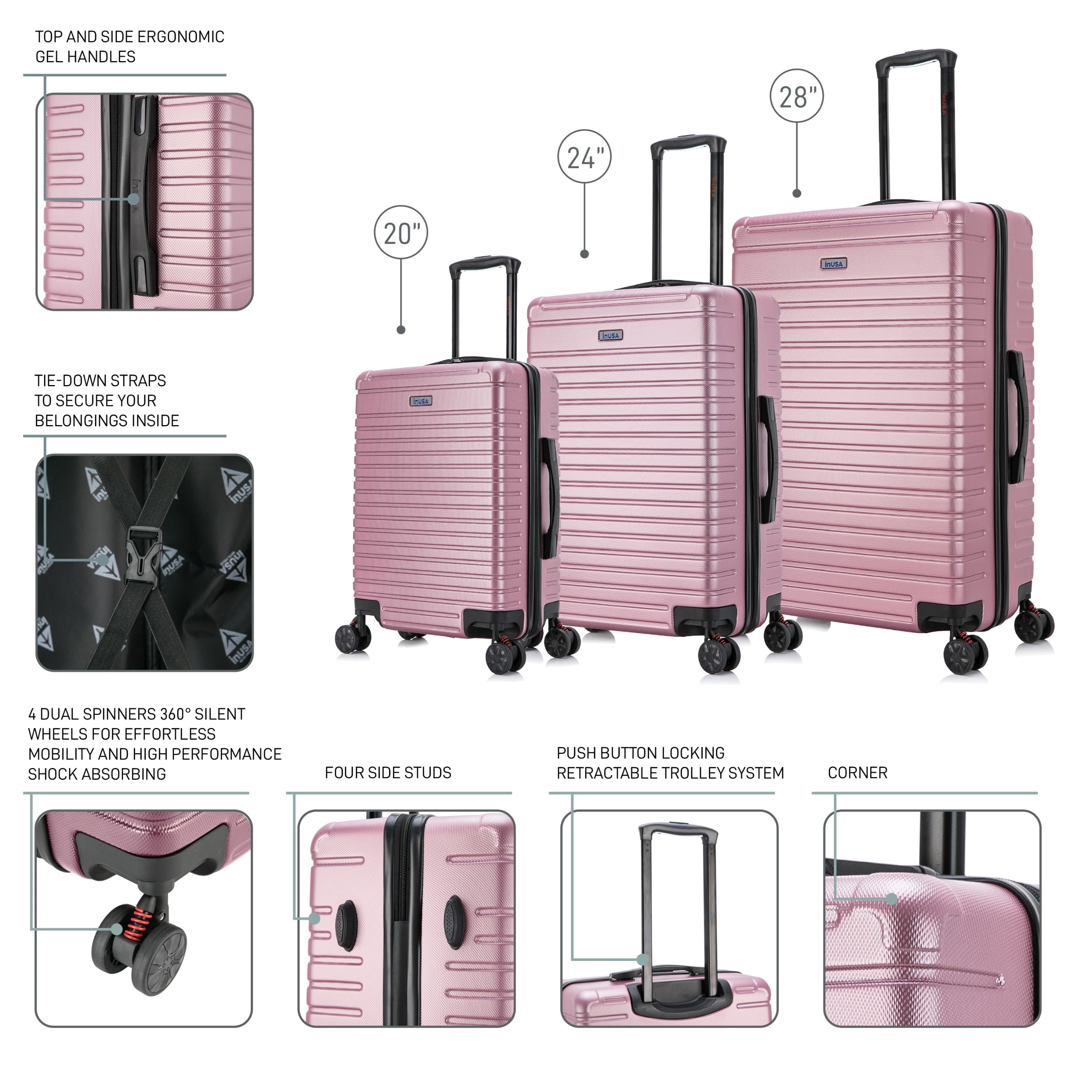 InUSA Deep 3-Piece Hardside Luggage Sets with Spinner Wheels, Handle, Trolley, (20″/24″/28″), Rose Gold