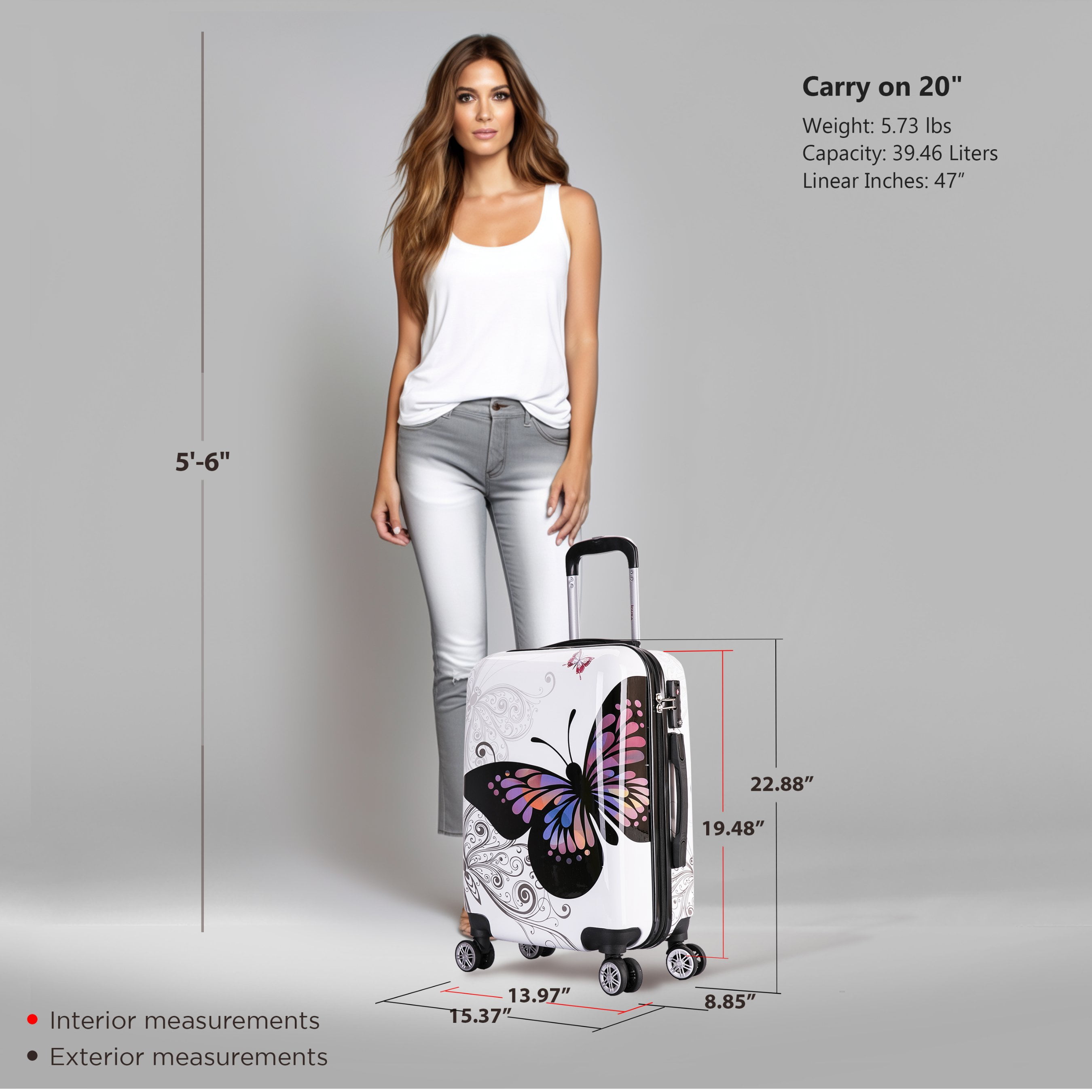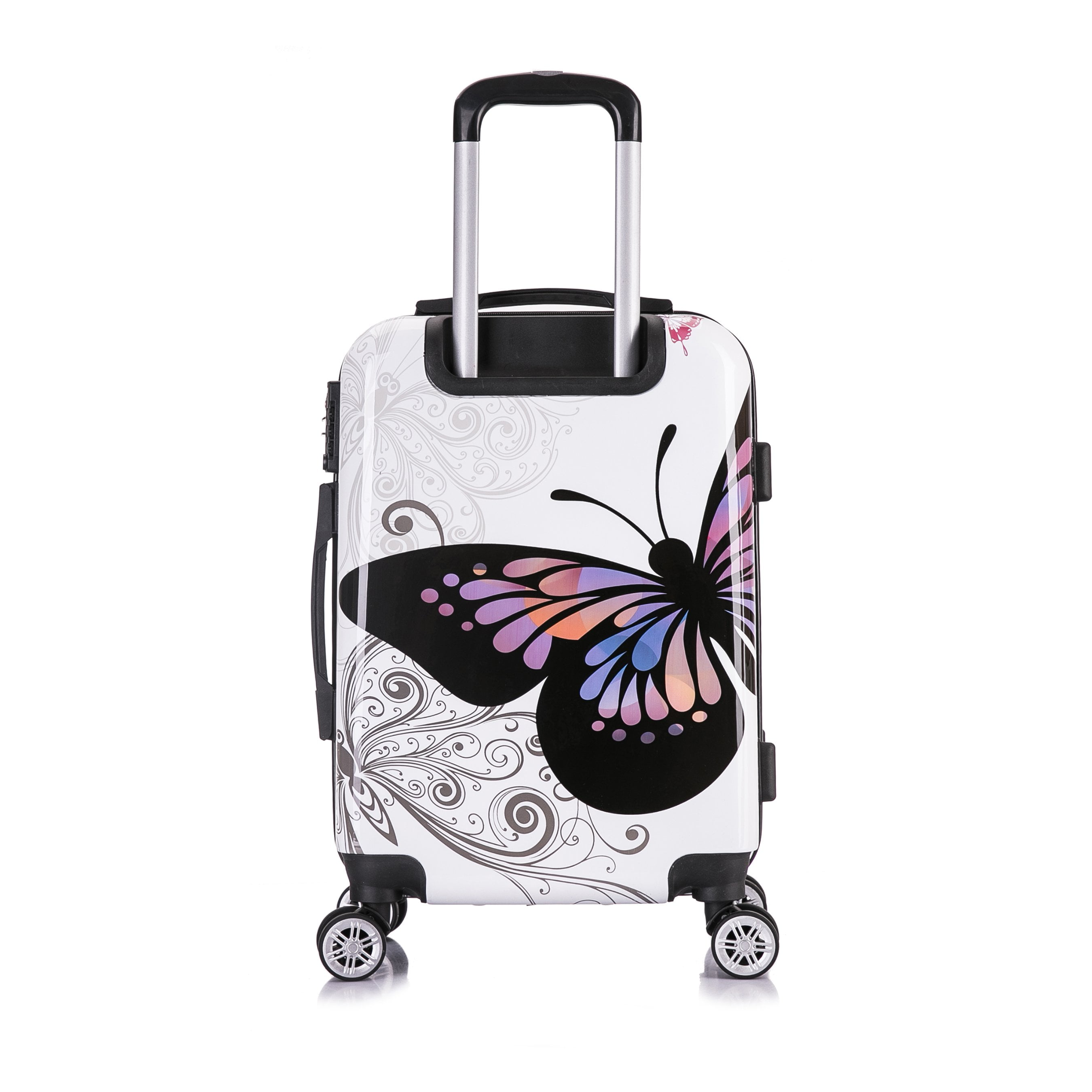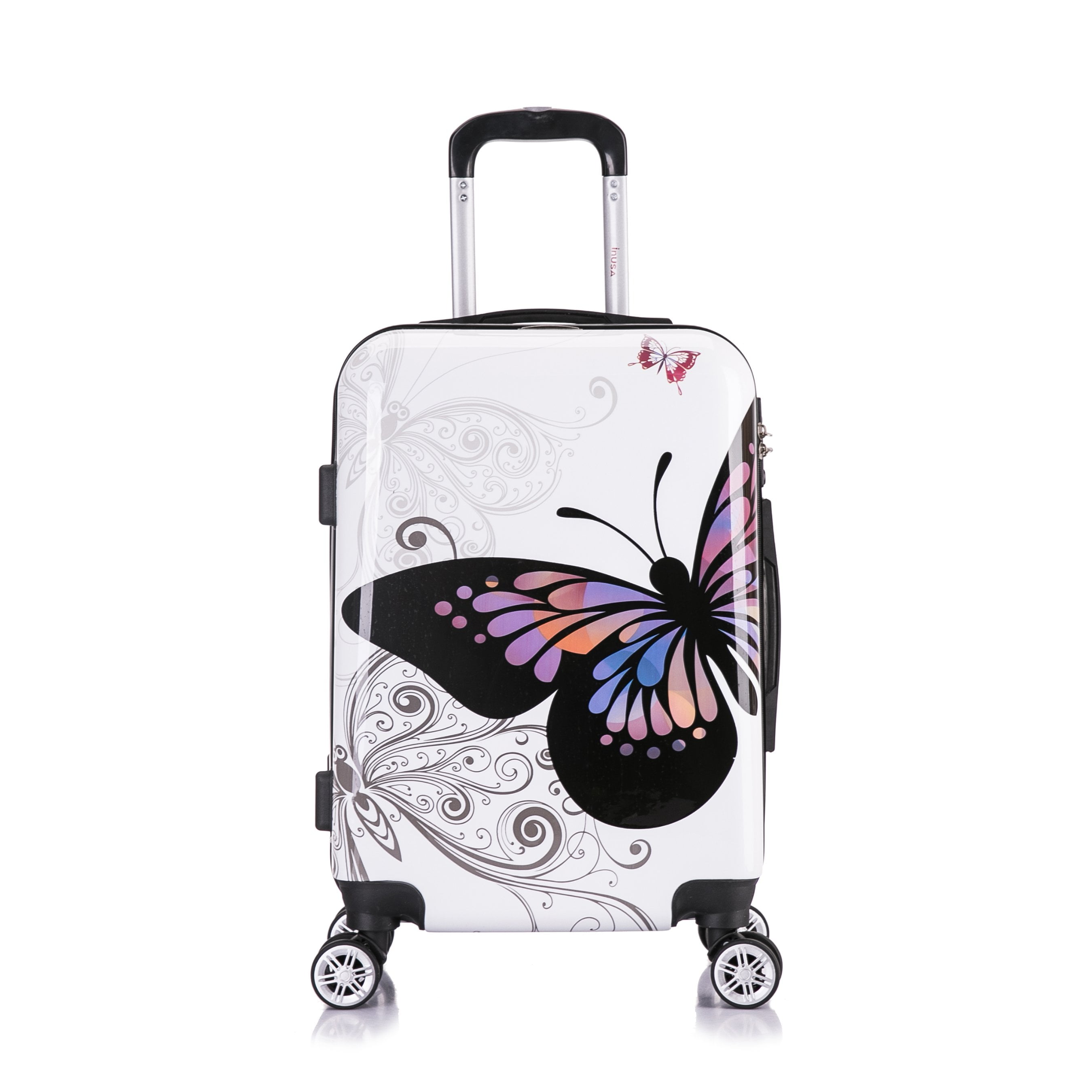 InUSA Print 20″ Hardside Checked Luggage with Spinner Wheels, Handle and Trolley, Butterfly