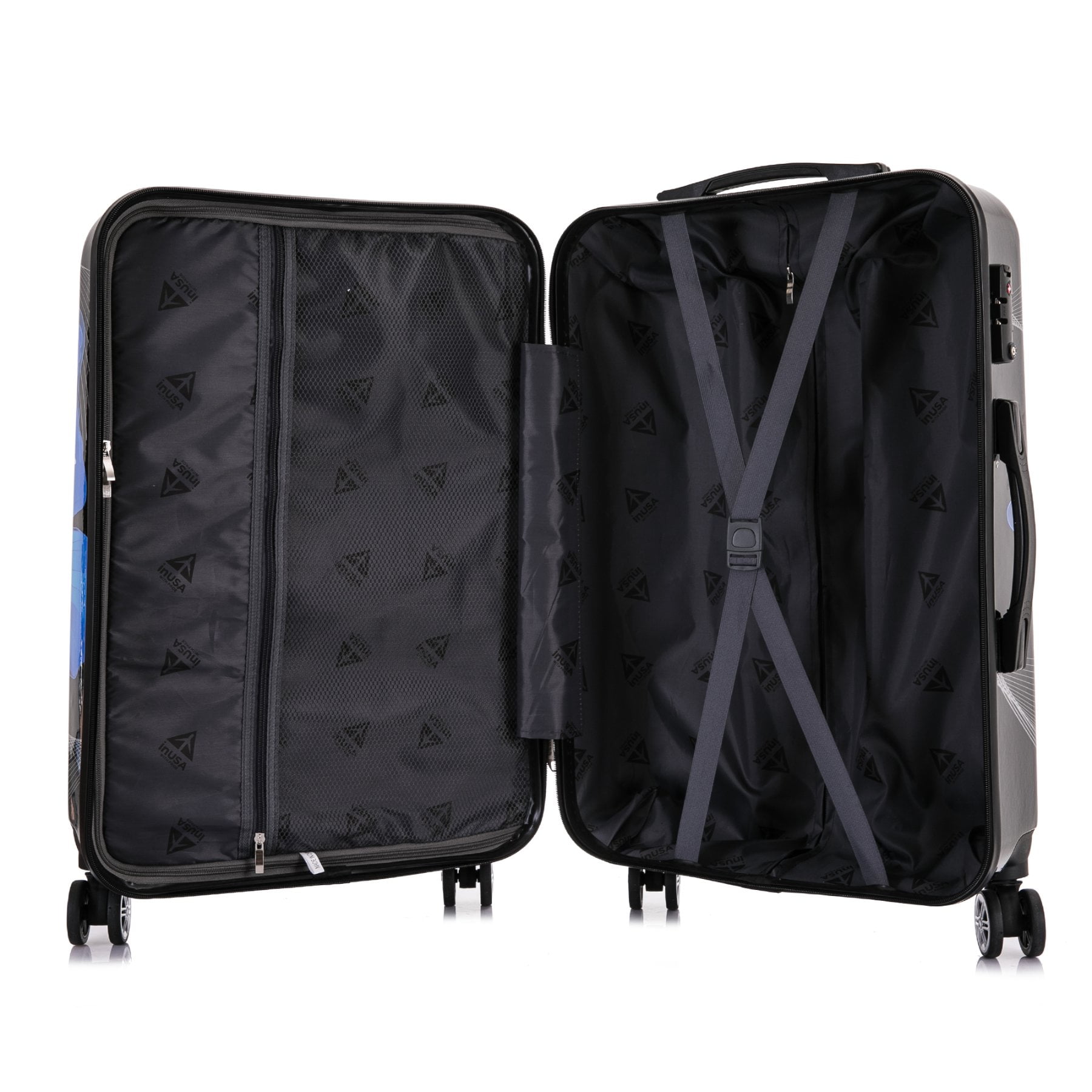 InUSA Print 3-Piece Hardside Luggage Sets with Spinner Wheels, Handle, Trolley, (20″/24″/28″), Black Butterfly
