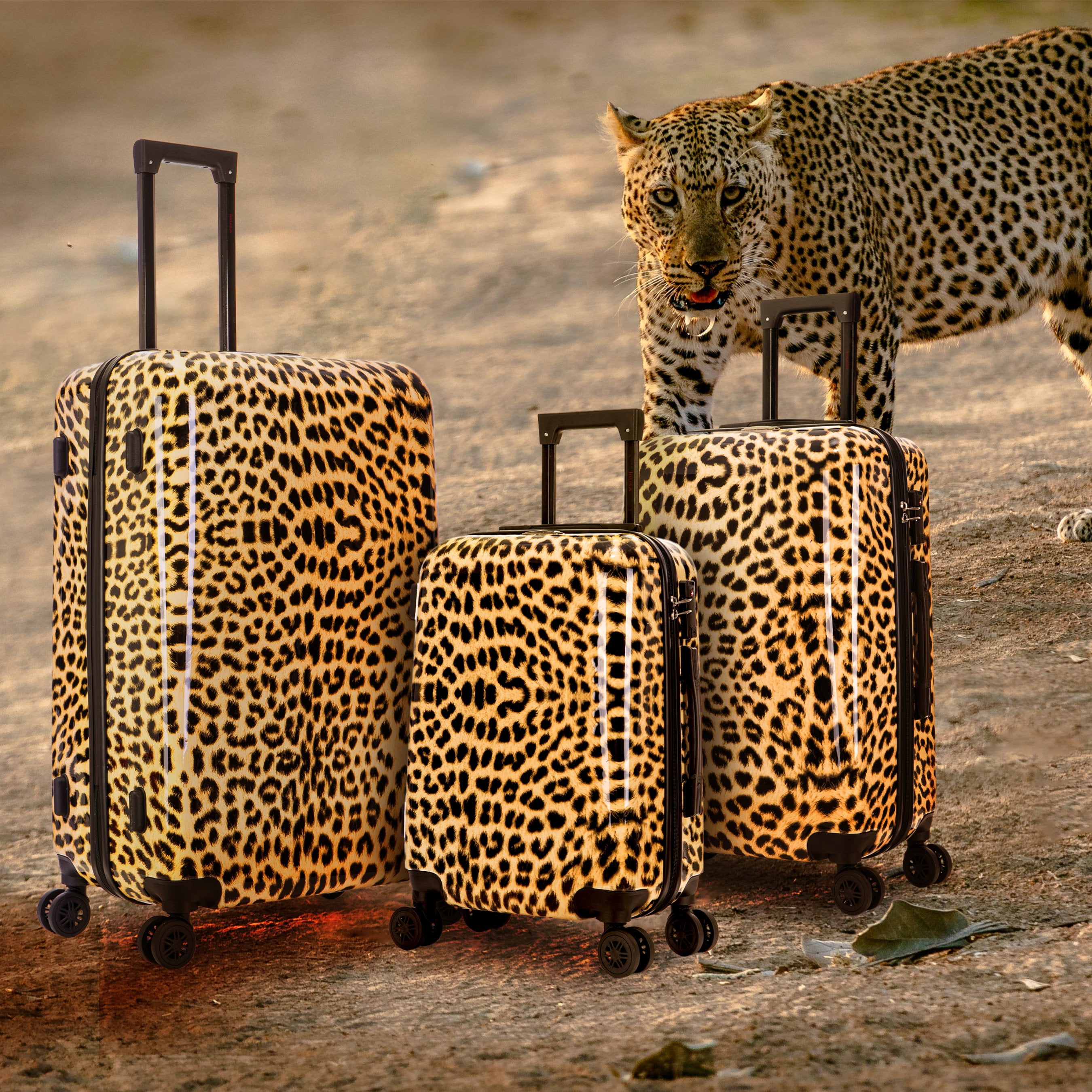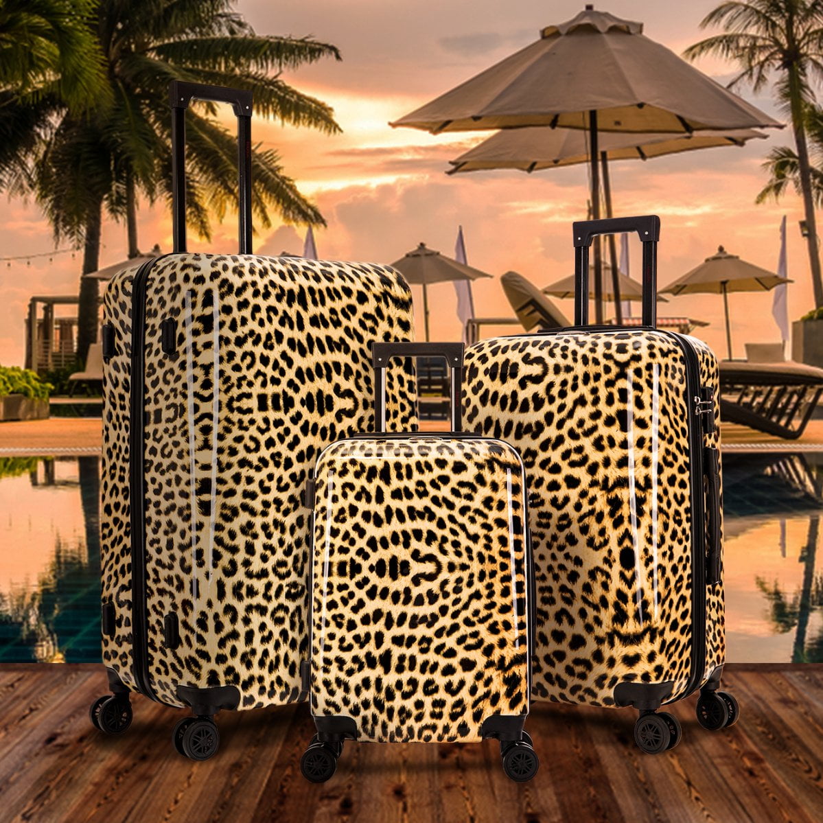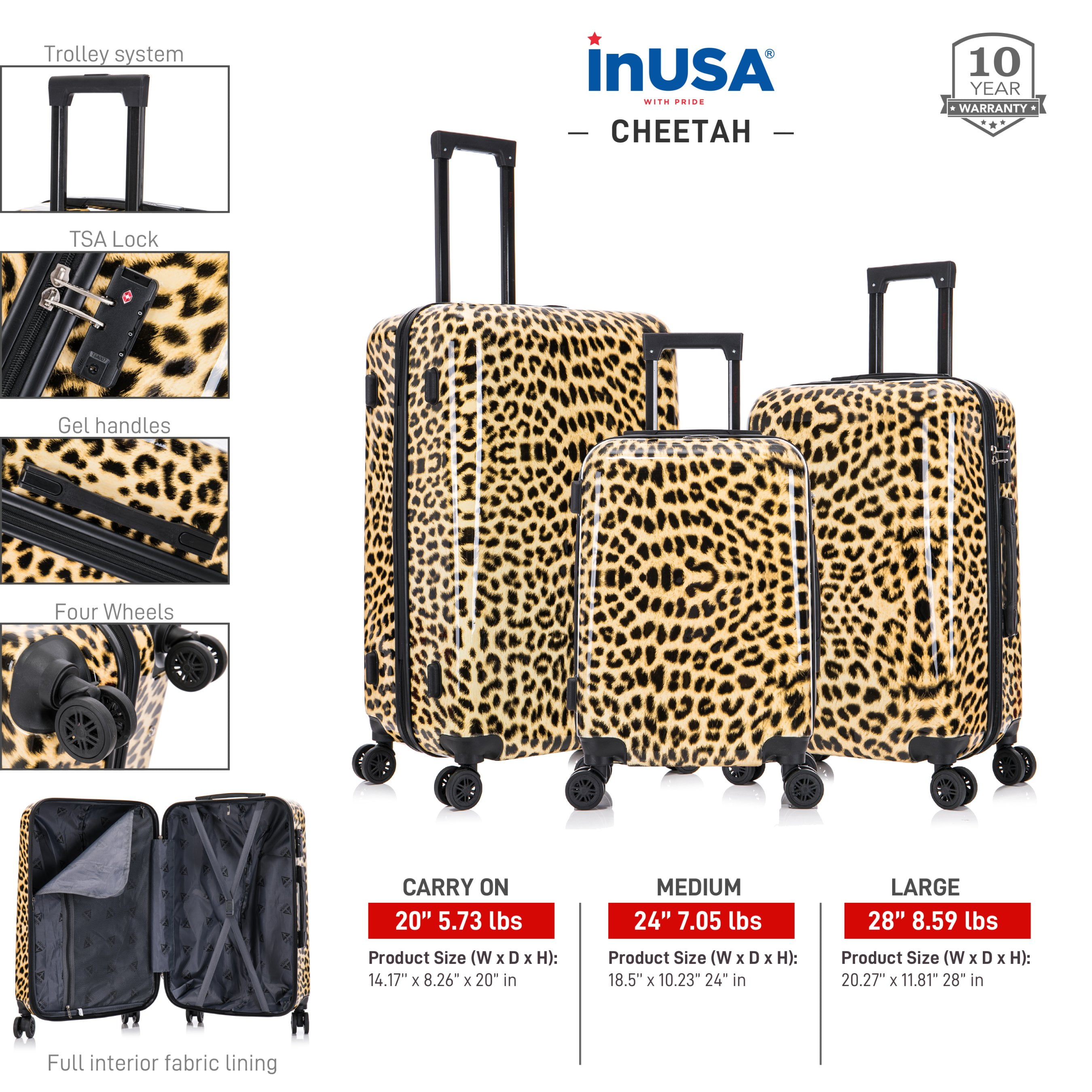 InUSA Print 3-Piece Hardside Luggage Sets with Spinner Wheels, Handle, Trolley, (20″/24″/28″), Cheetah