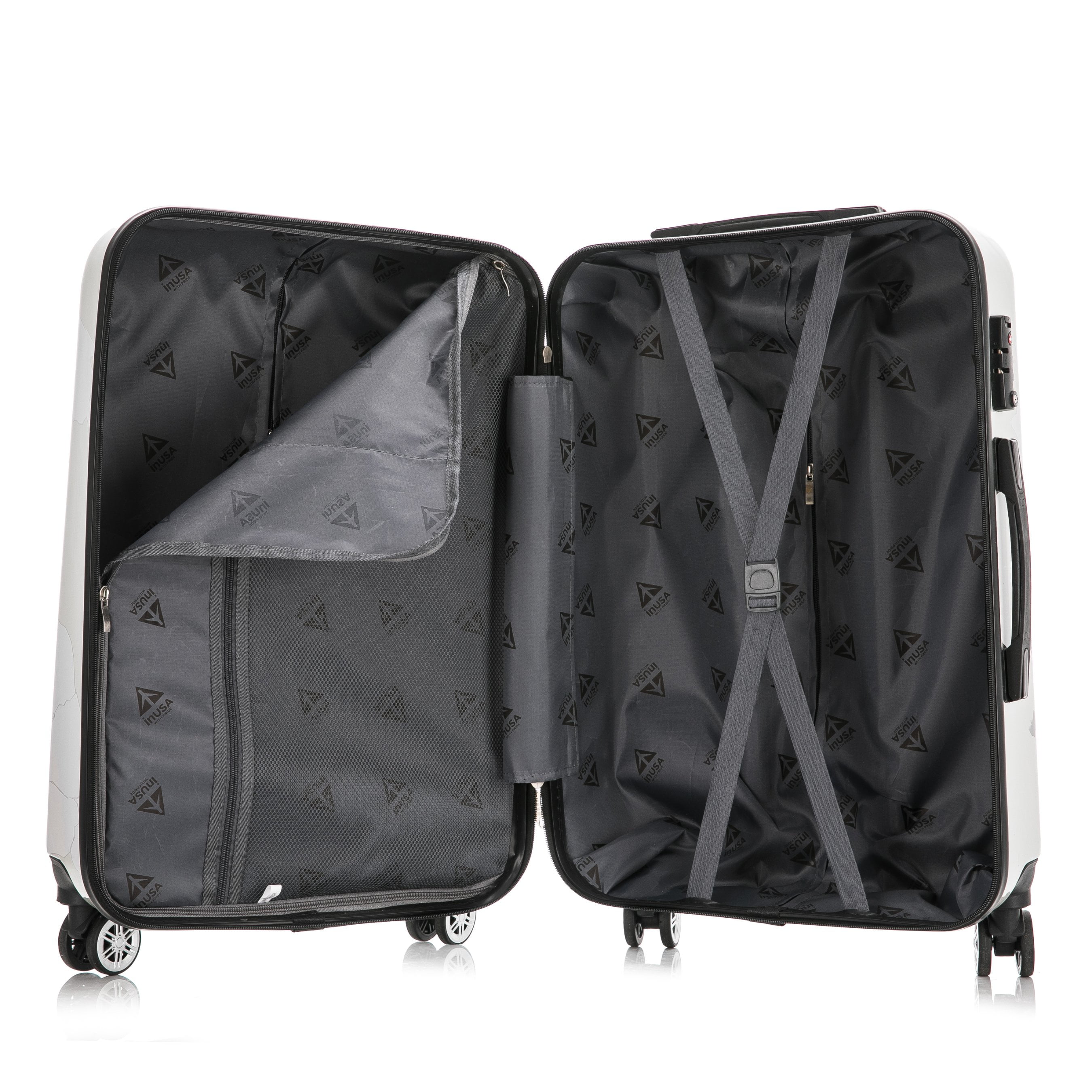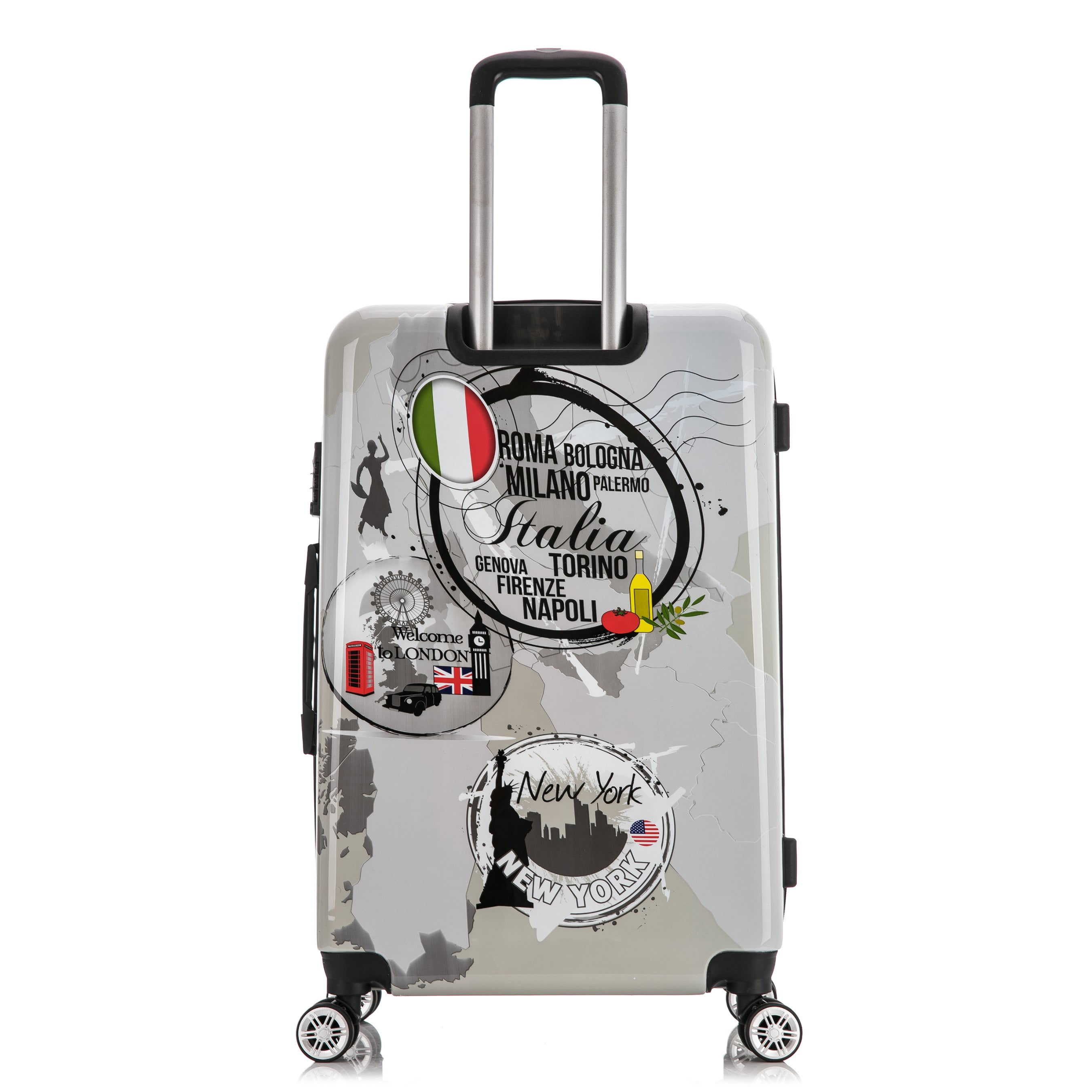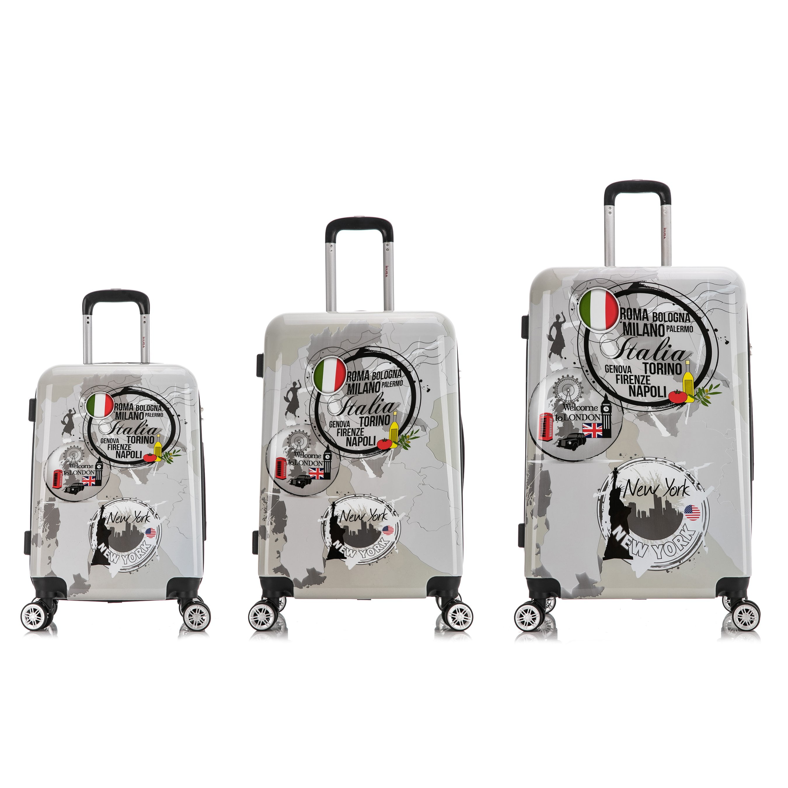 InUSA Print 3-Piece Hardside Luggage Sets with Spinner Wheels, Handle, Trolley, (20″/24″/28″), World