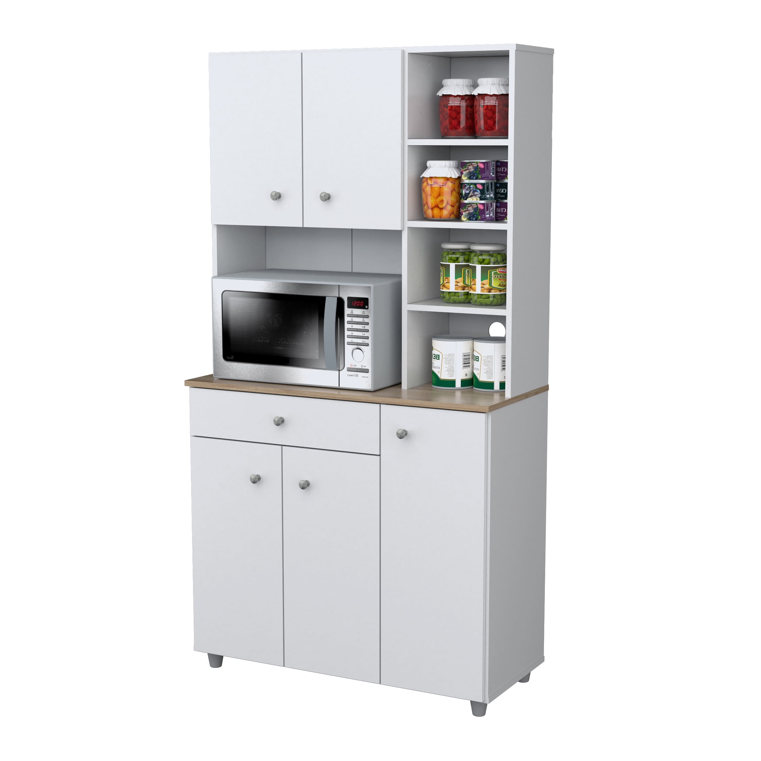 Inval 10-Shelf Kitchen Microwave Storage Cabinet (35 x 66 x 16), White/Maple