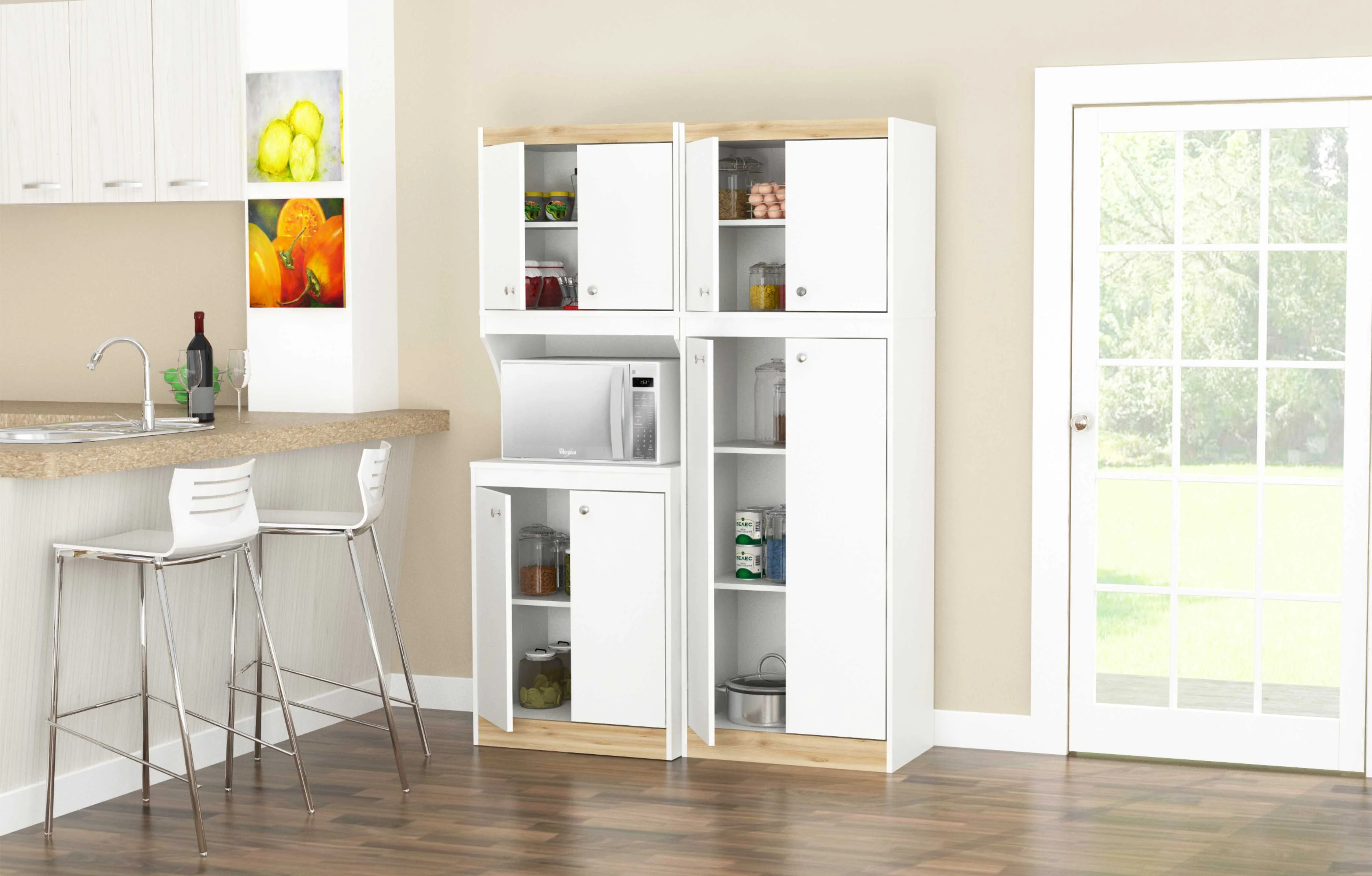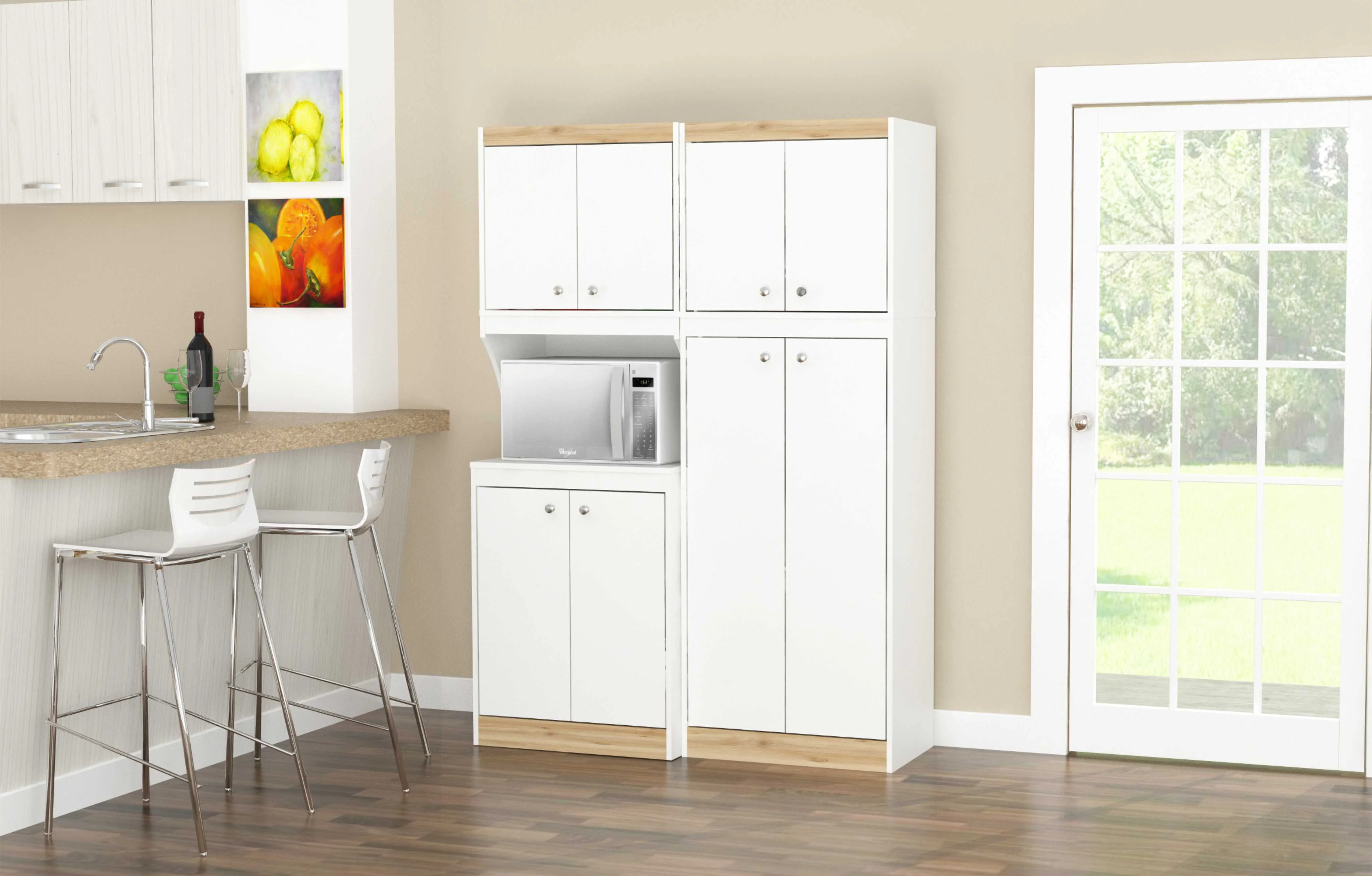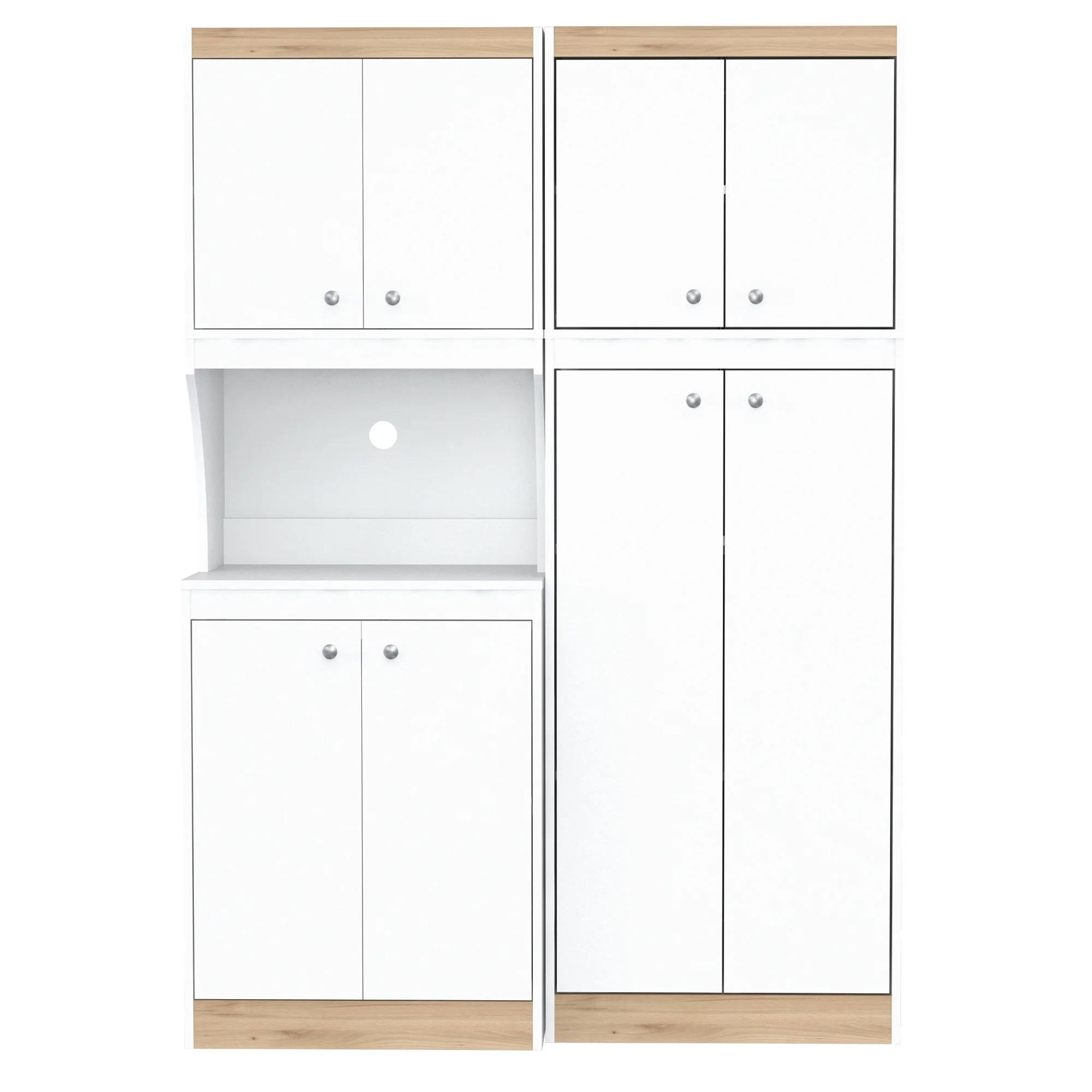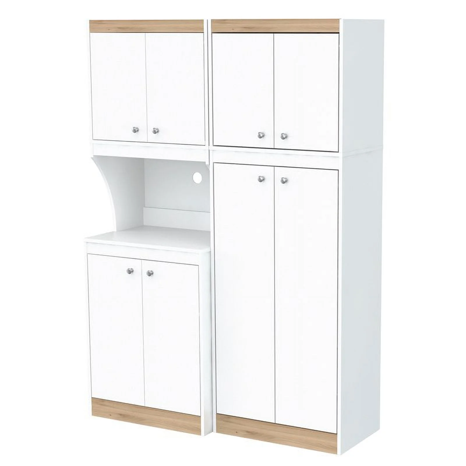 Inval Galley 2-Piece Microwave Kitchen Storage Cabinet 47″W, White and Oak