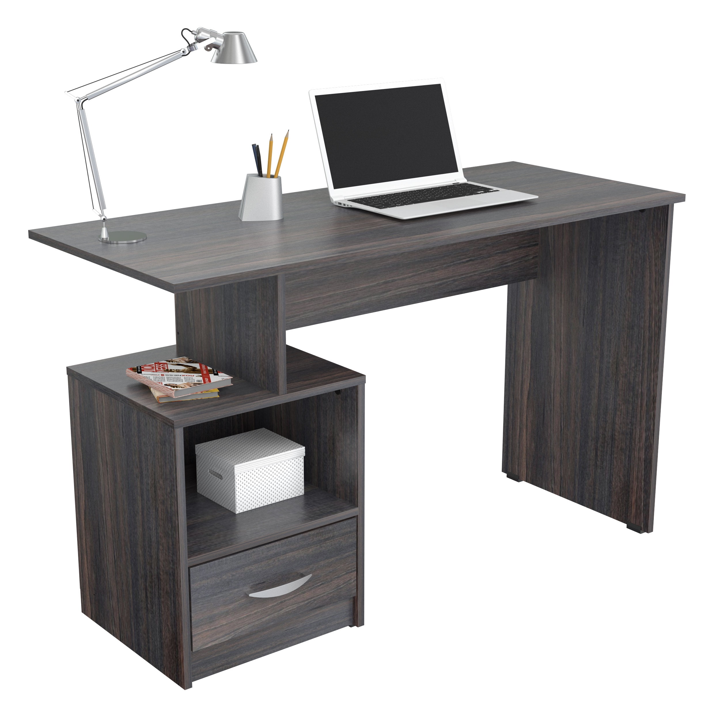 Inval Modern Writing Desk with Drawer and Open Storage, Espresso