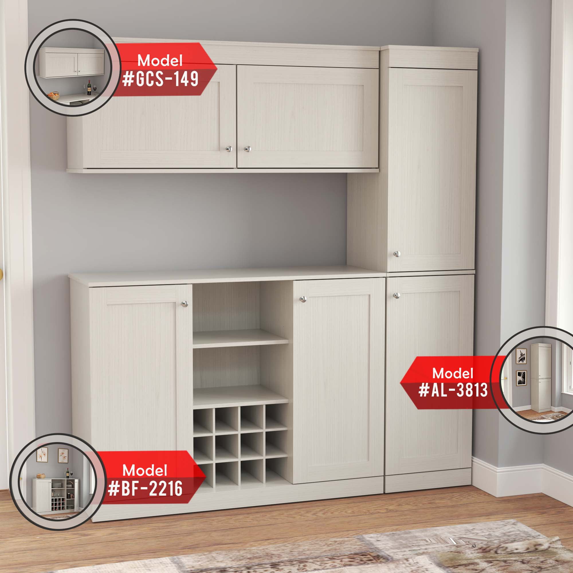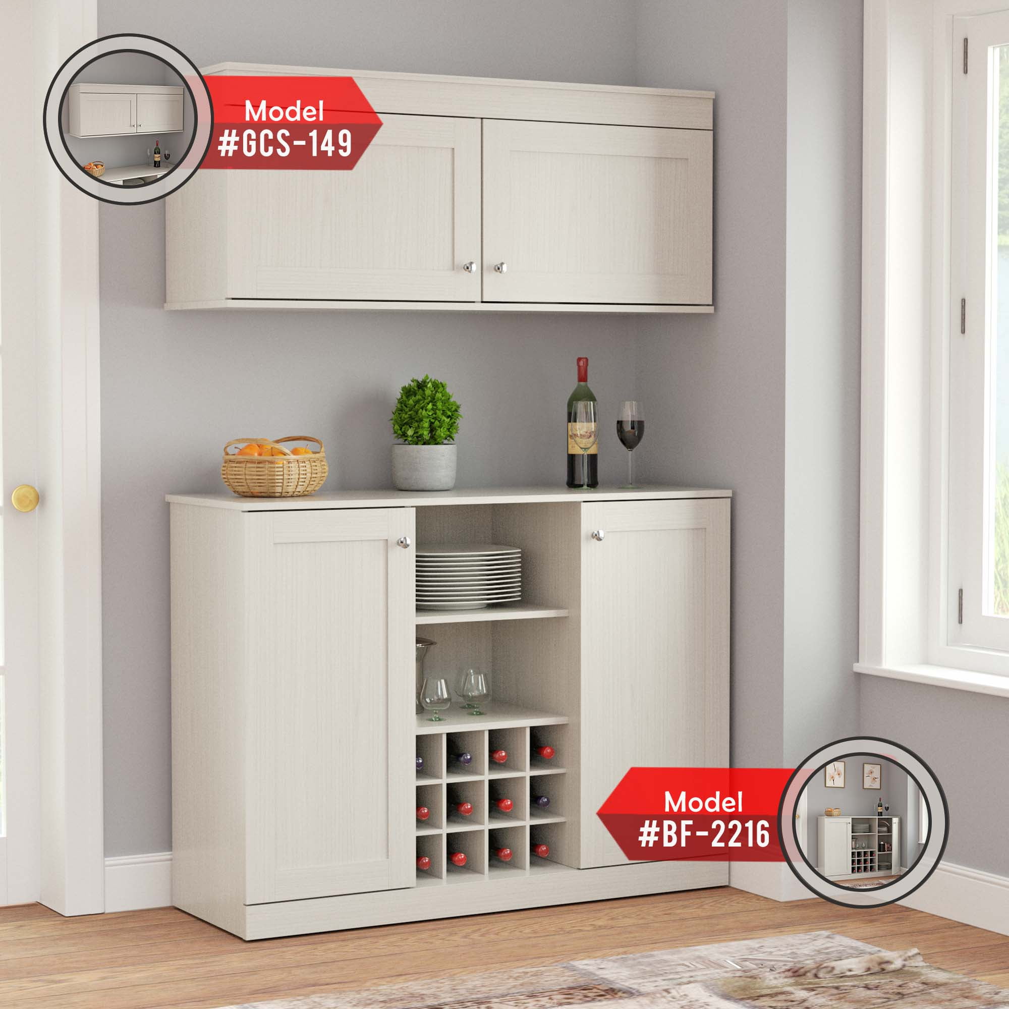 The Shaker Style Buffet Cabinet by Inval is finished in a warm “Washed Oak” laminate, crafted with durable melamine that is resistant to stains, heat, and scratches. Constructed from manufactured wood, it features a modern yet functional design, making it an ideal addition to your home. The cabinet includes two doors with European-style concealed hinges and brushed metal knobs. Inside, an adjustable shelf provides ample storage space. Its compact size makes it perfect for additional storage while seamlessly complementing your existing décor. Assembly is required.