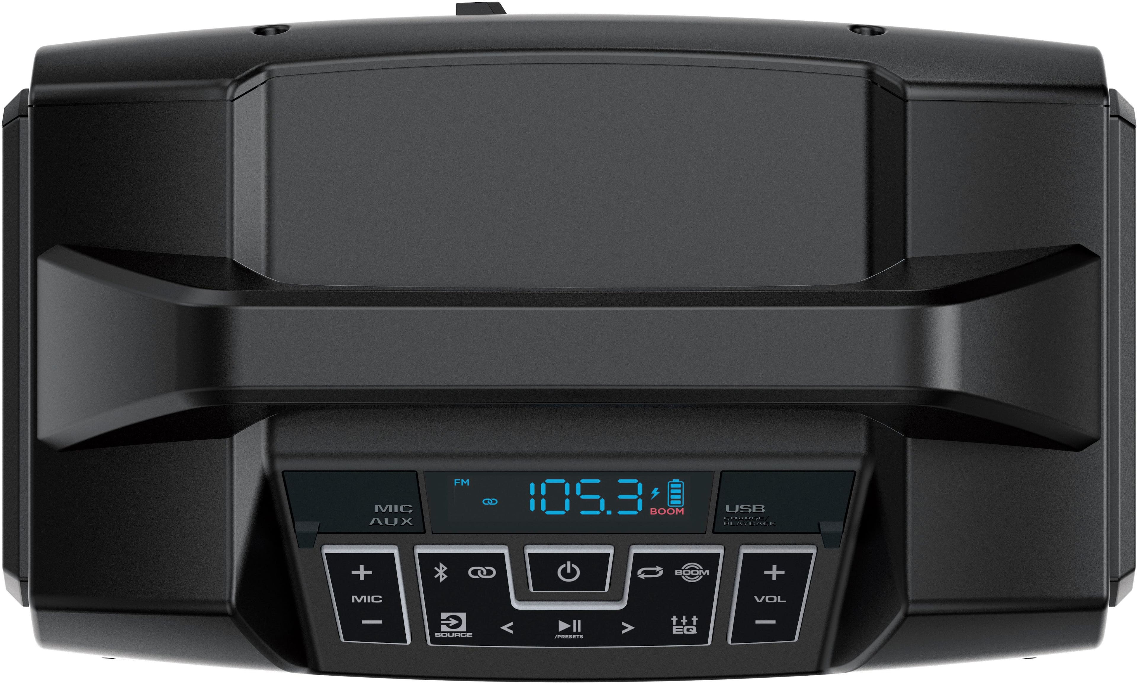 Portability and Convenience Combines in This Powerful Indoor/Outdoor Portable Speaker with FM Radio. It is the time to meet ION Audio’s Sport Boom. This powerful new Sport wireless speaker with a rechargeable battery from ION Audio is the loudest Sport speaker yet. The Sport Boom is a completely new wireless speaker designed with portability and convenience built into it. The Sport Boom wireless speaker features a LI-Ion battery, FM radio and 60 watts of power, makes it easy to have great audio or music wherever you need or want it. The Sport Boom package also includes a high-quality microphone and cable which makes it a great portable PA system. Whether before the game or a fun gathering in your backyard, you can count on Sport Boom to make any event a winning occasion. Boasting a powerful 60-watt, your music will always sound its best. With its IPX5 water-resistant rating, with Sport Boom, there is no such thing as a rain delay! Safe to use by the pool or at the beach, the Sport Boom is the perfect portable speaker for use indoors or outside. You can stream music from any Bluetooth-enabled device or tune in to your favorite radio station via the built-in FM radio. The Sport Boom has a long-life rechargeable Li-Ion battery, so your speaker is always ready for use. The new ION Sound Control app, available via download, provides you with complete control of the portable speaker’s audio and FM radio functions from your mobile device. The Sport Boom, with the rechargeable battery, microphone, and FM radio, in a convenient portable speaker, always delivers a big win.