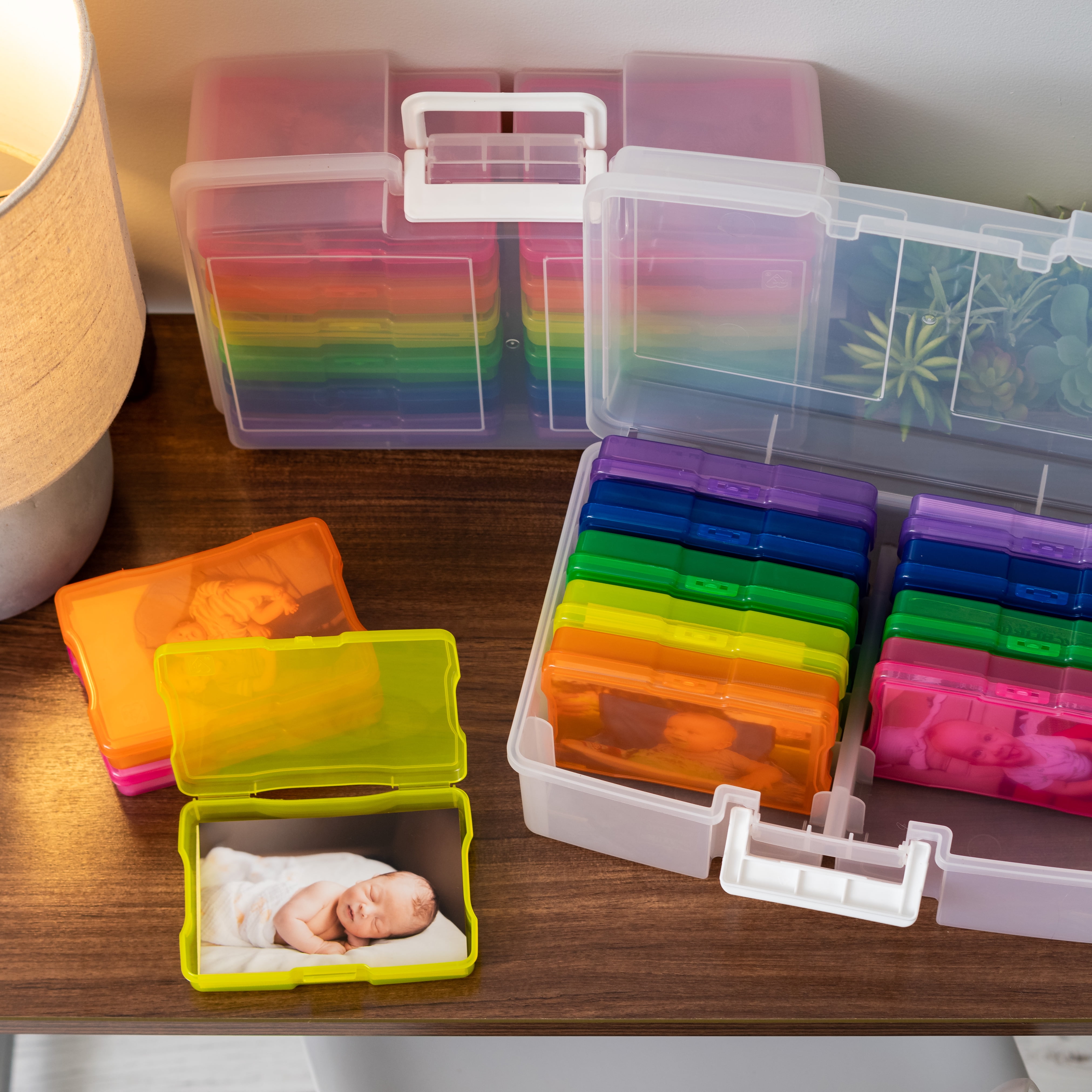 IRIS 4″ x 6″ Photo Craft Keeper Storage Boxes with Handle and 12 cases, Rainbow Color, Set of 2