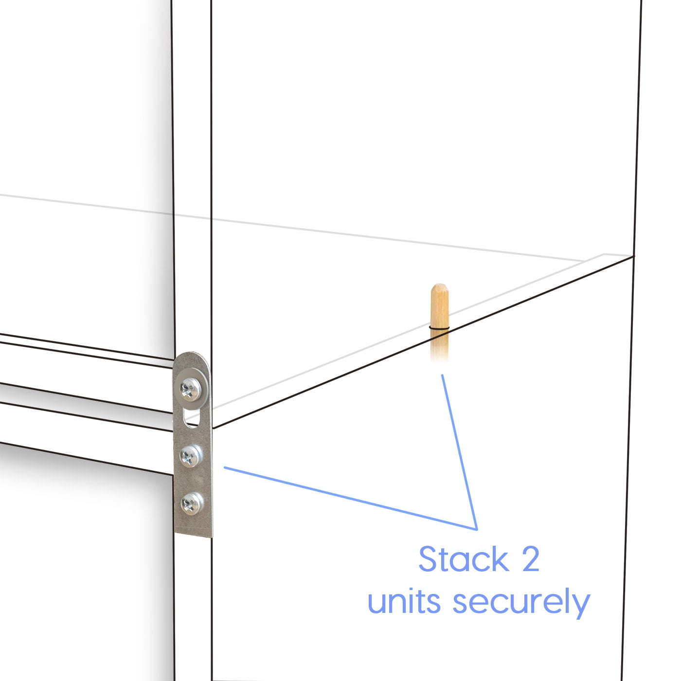 STACK WITH SAFETY: Included safety bracket can be used to attach a single unit to the wall for added stability. Safety bracket can also be used to hold two units together when stacking them.