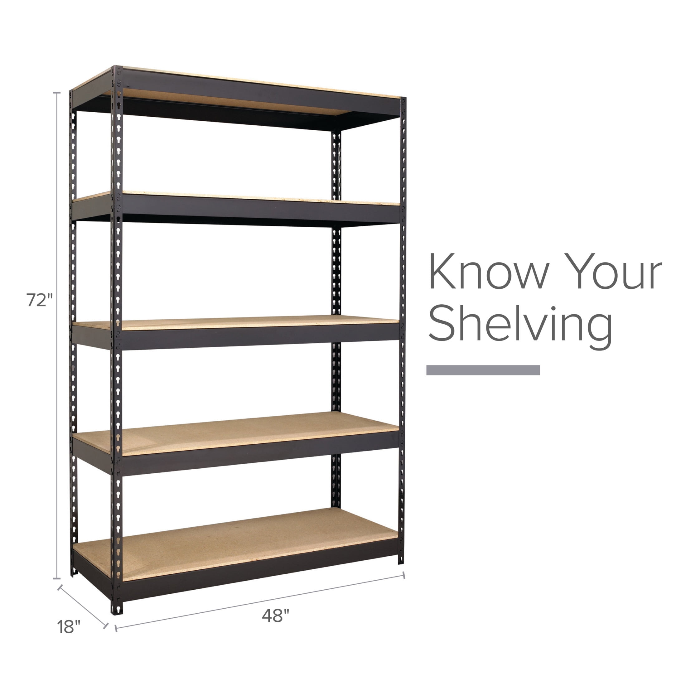 Iron Horse 3800 Riveted Steel Shelving, 5-Shelf, 18Dx48Wx72H, Black