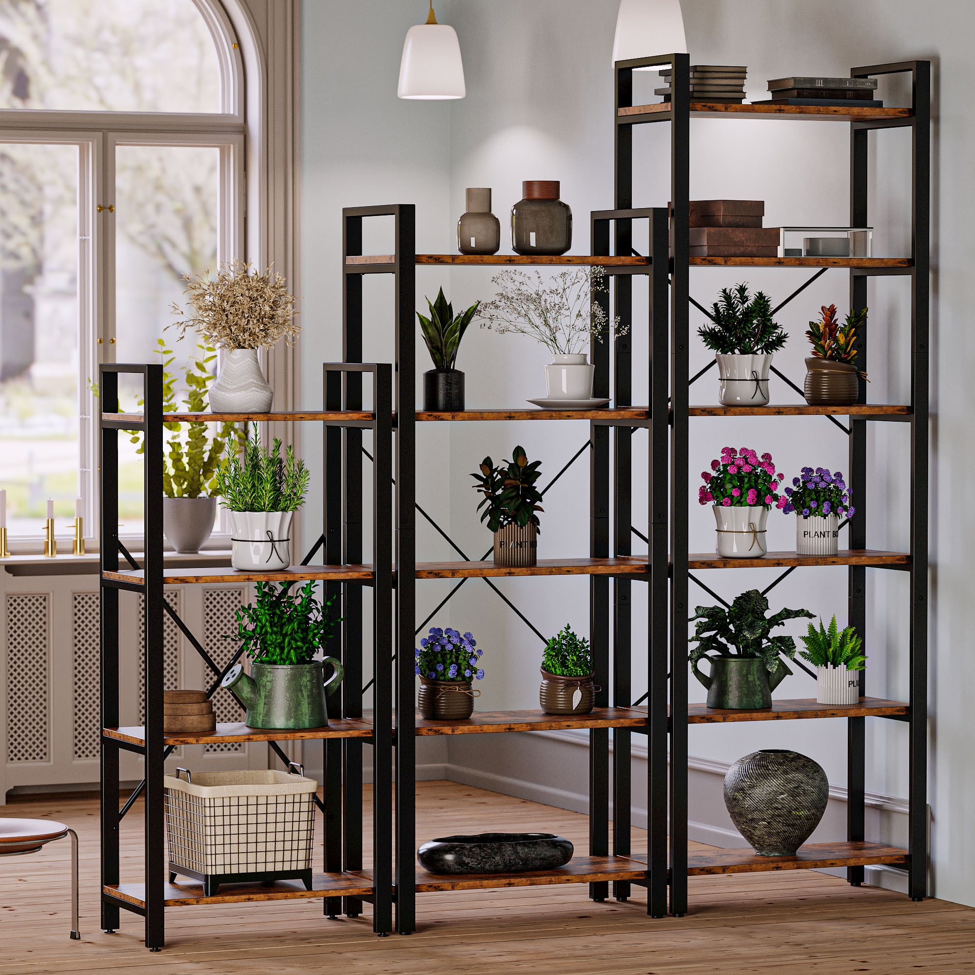 IRONCK 6-tier Bookcase Industrial Bookshelf , Tall Storage Rack, Wood Bookshelf with Metal Frame , Dark Brown