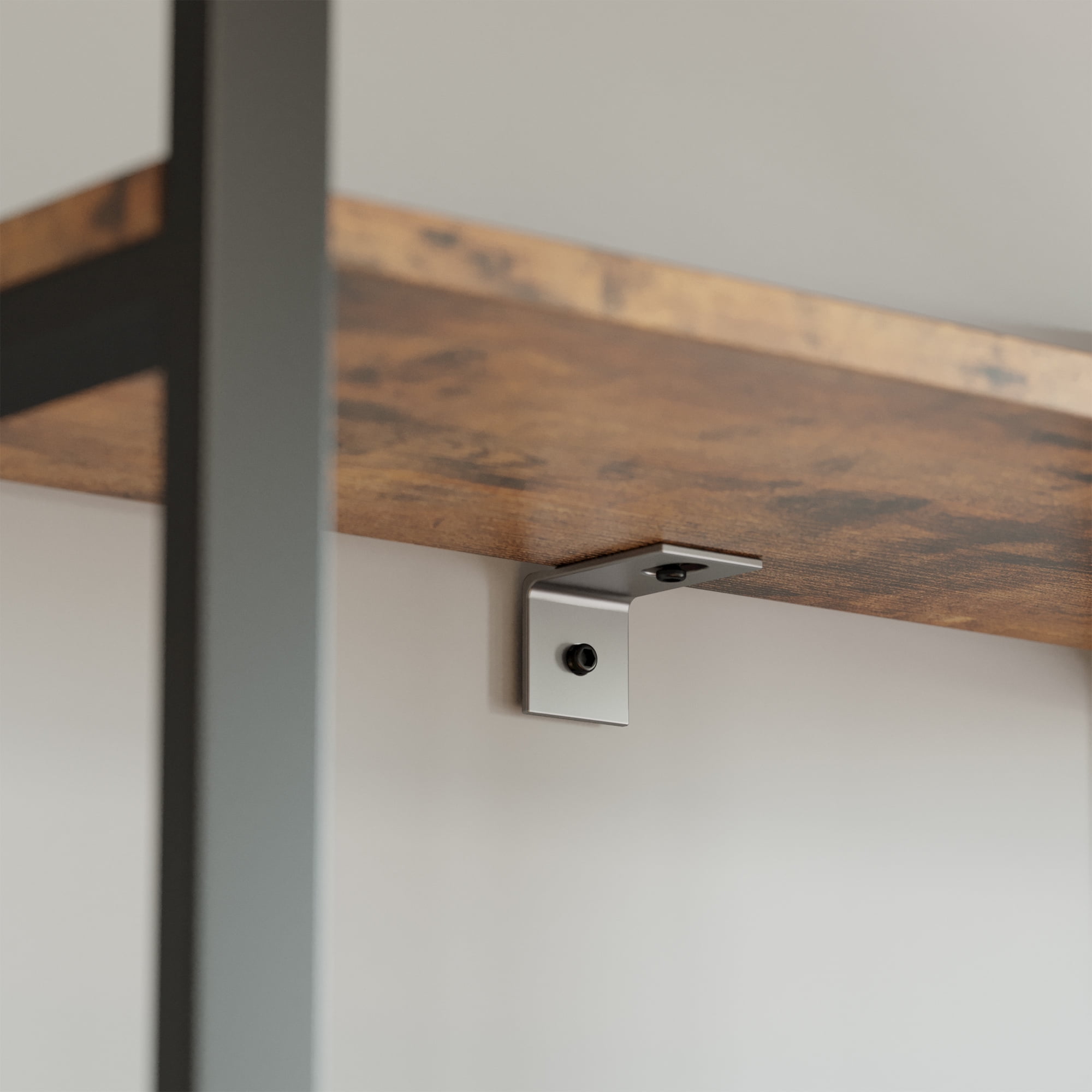Stack, store, and display your books, framed photos, and journals on this modern and industrial style IRONCK 5 Shelf Bookcase. It features five spacious, thick shelves that hold and books, binders, framed photos, collectibles, and whatever your little heart desires. The powder-coated metal frame and rear crossbars for stability add an extra touch of an industrial yet rustic style that will stand out in any room. Its metal frame provides added durability that is sure to hold up for years to come. The mixed material aesthetic and simple design of this unit gives it a contemporary, yet natural feel that will transform your room. This IRONCK bookcase is a versatile fit for the living room, office, bedroom, or virtually anywhere and it’s sure to get your home looking organized in no time.