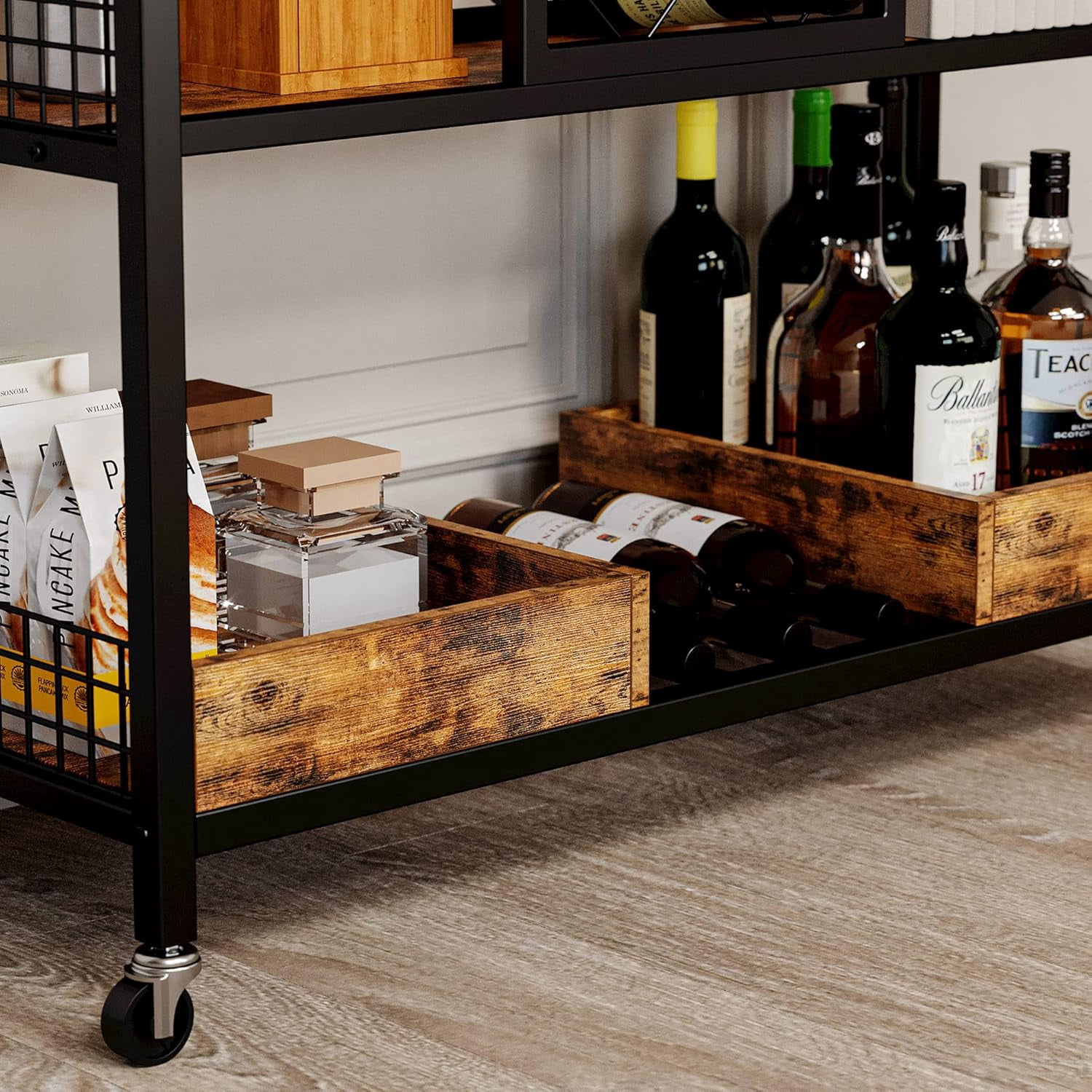 IRONCK Bar Cart with Lockable Wheels for Home, Kitchen, Dining Room, Living Room, Party, Vintage Brown