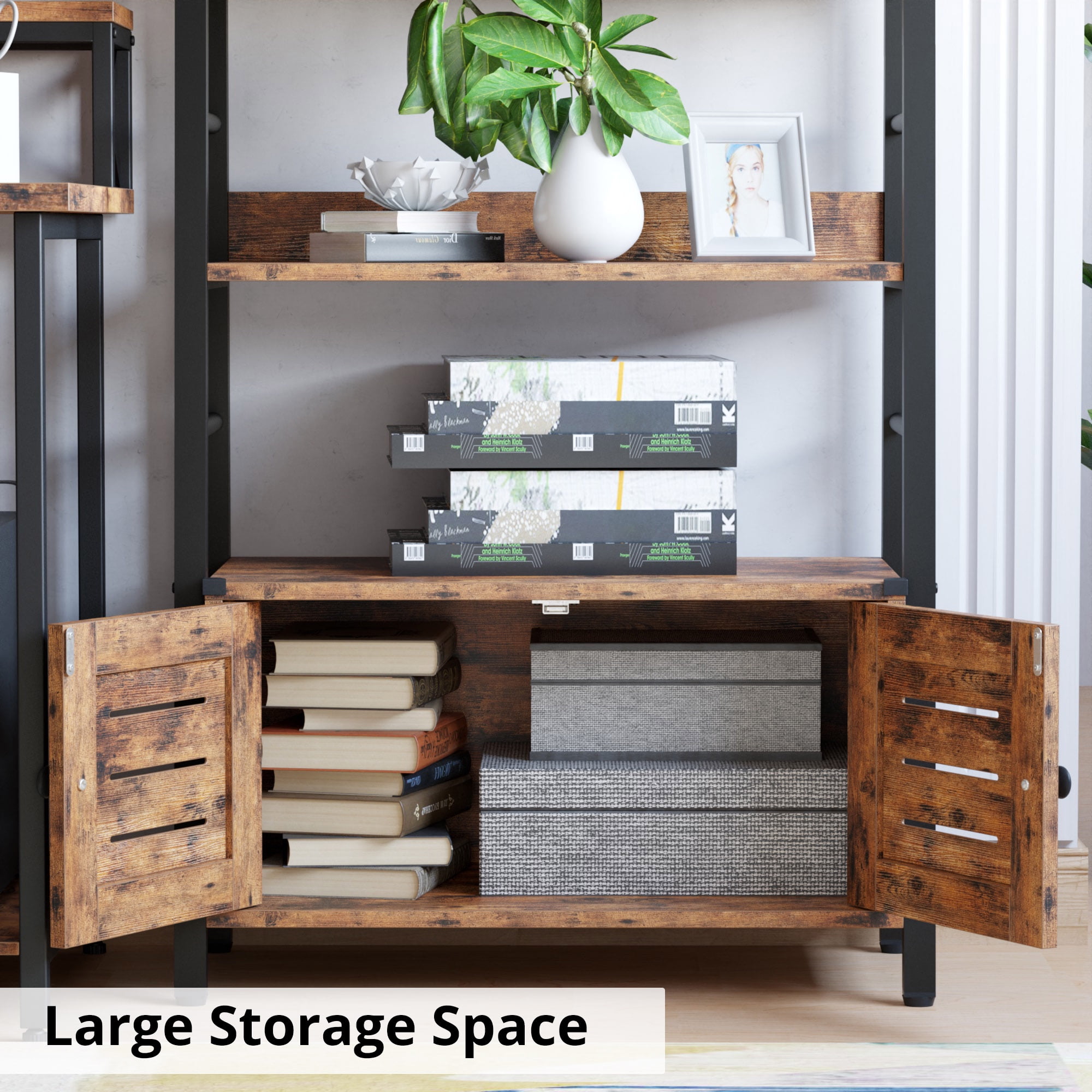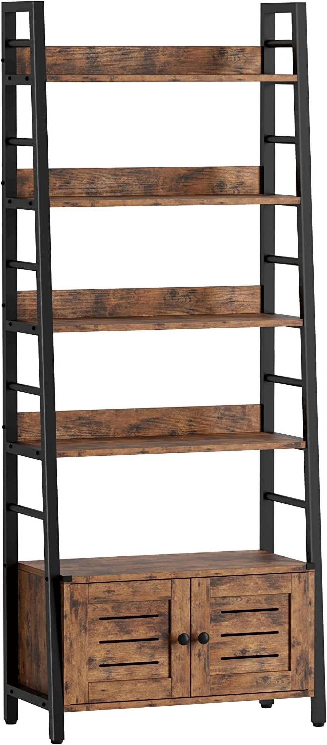 IRONCK Bookshelf with Louvered Doors, 4-tiers Ladder Shelf with Storage Cabinet, Rustic Brown