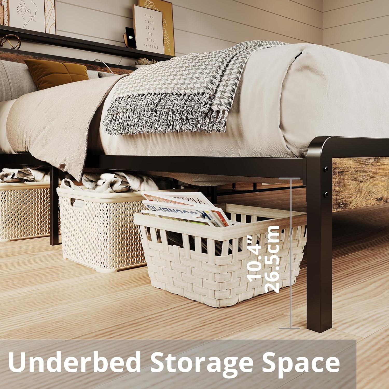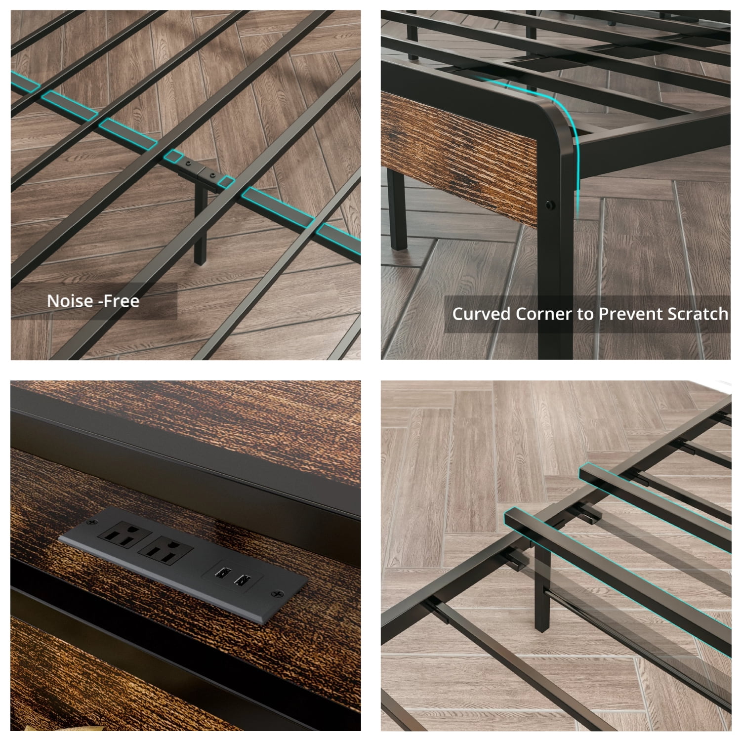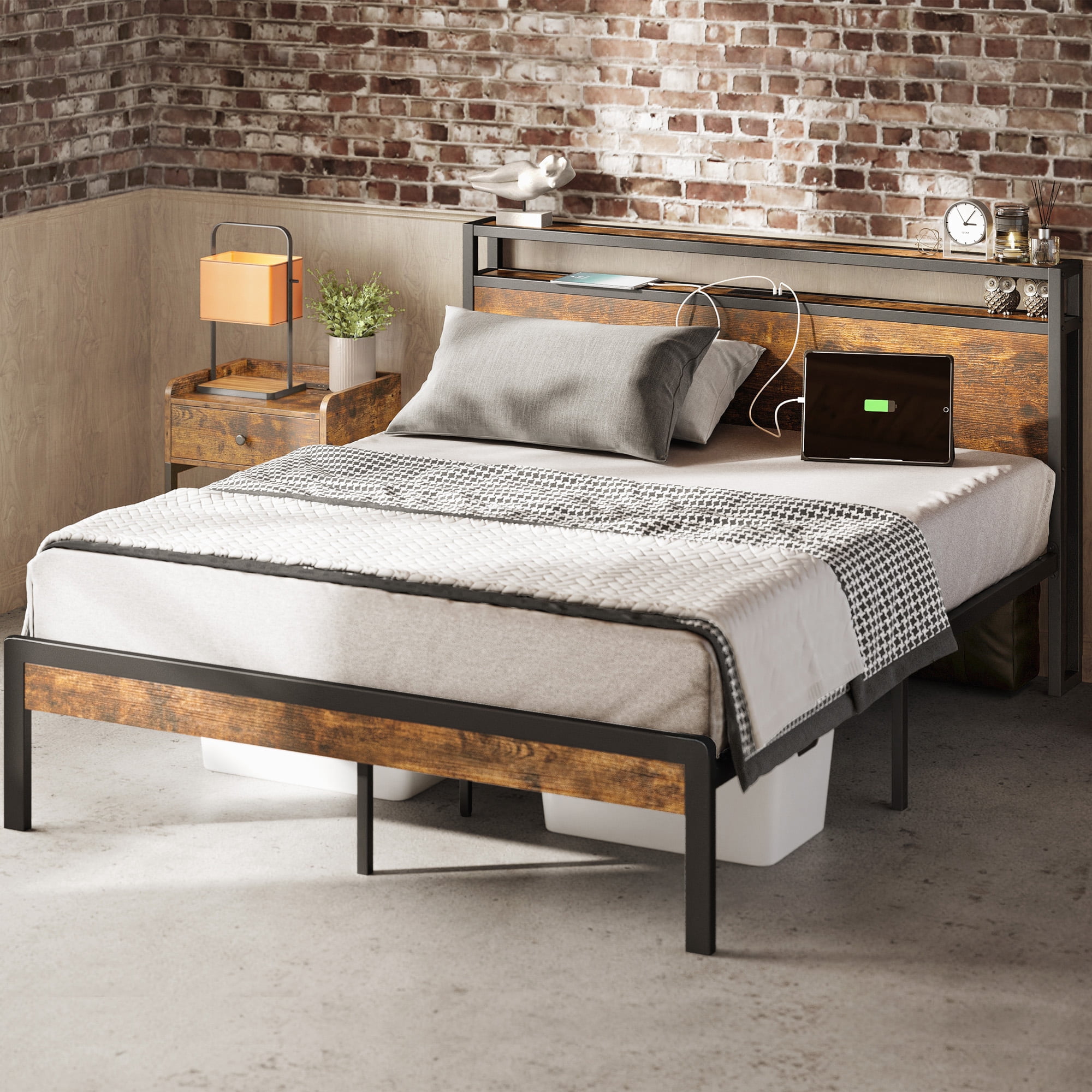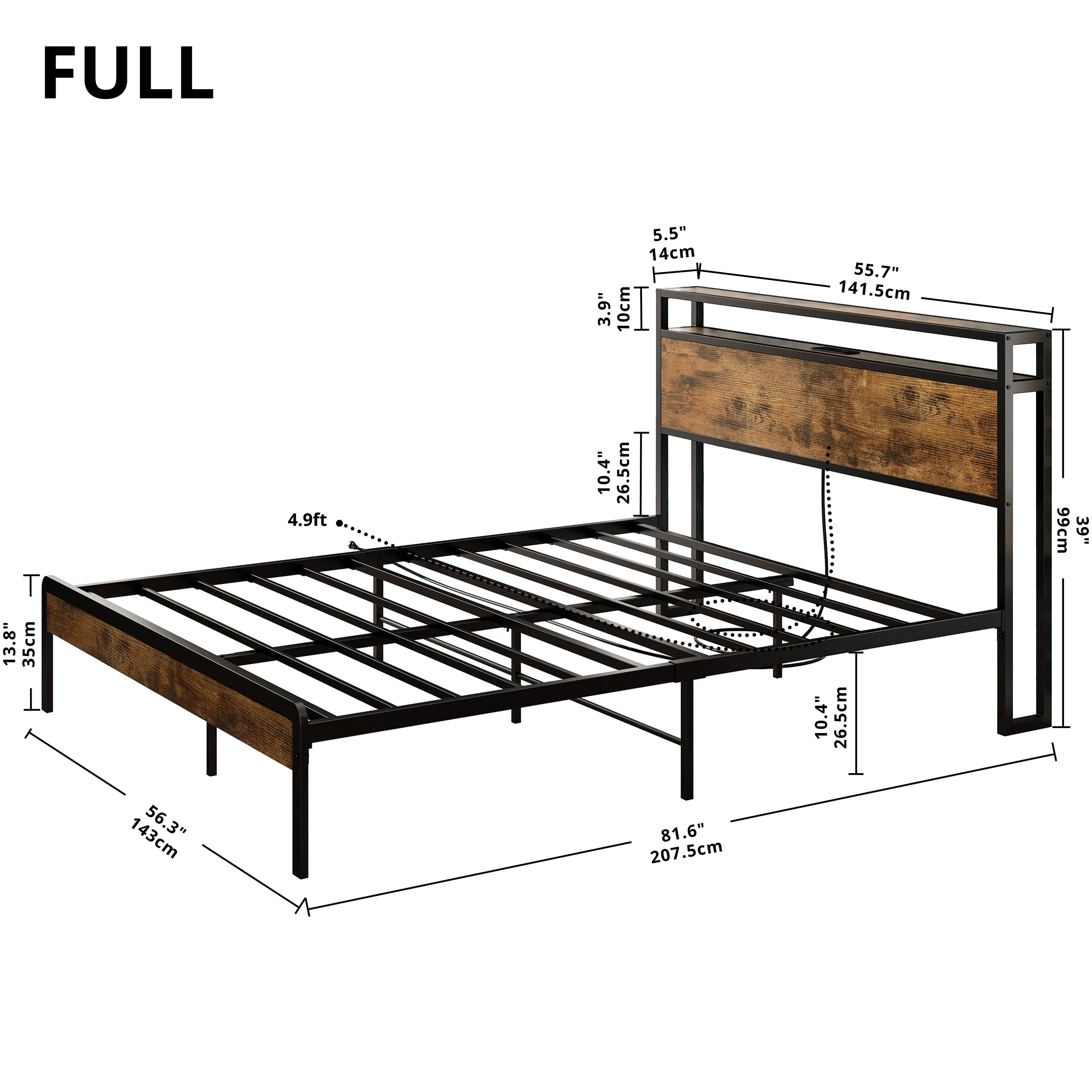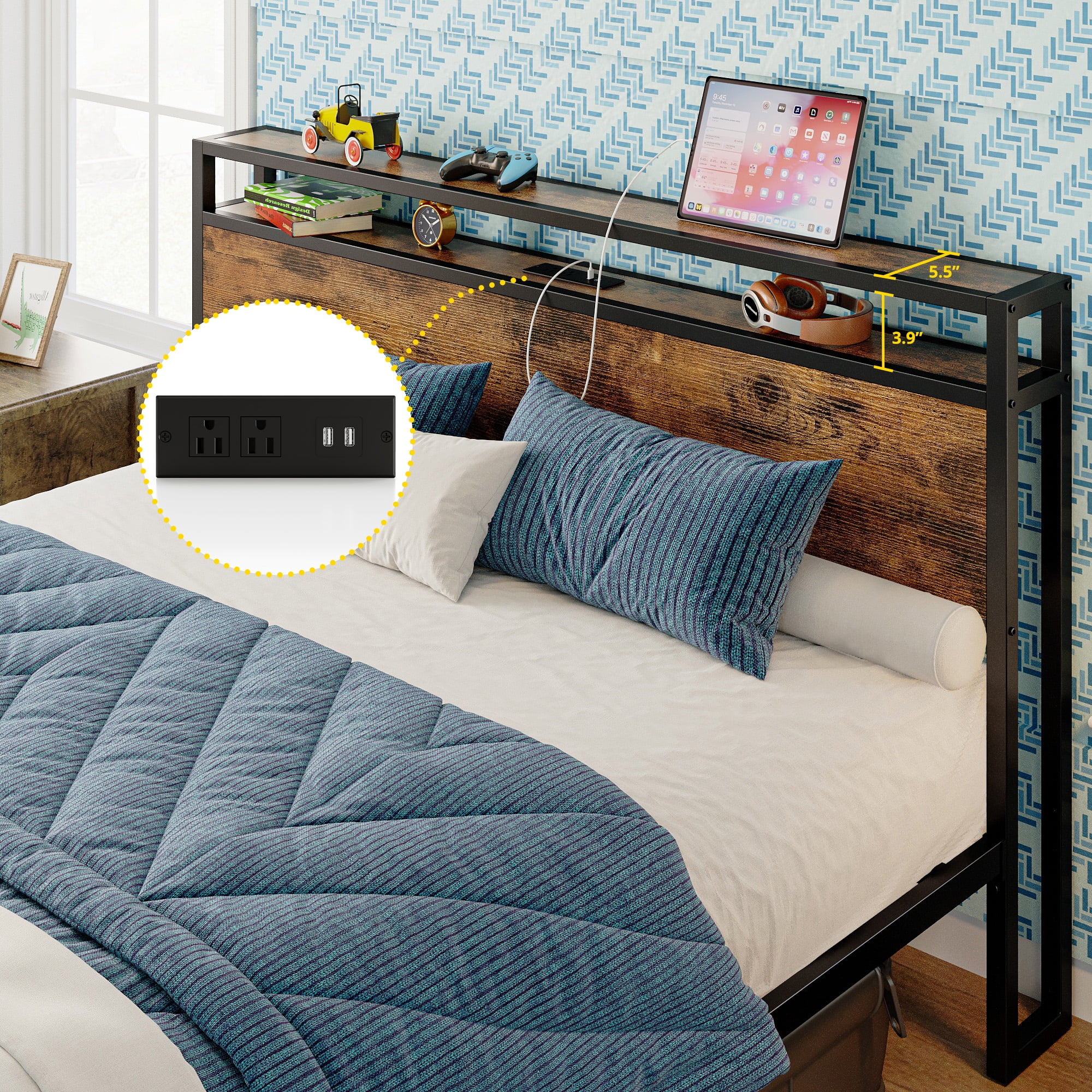 IRONCK Full Bed Frames with Storage Headboard and Charging Station, Easy Assembly, Vintage Brown