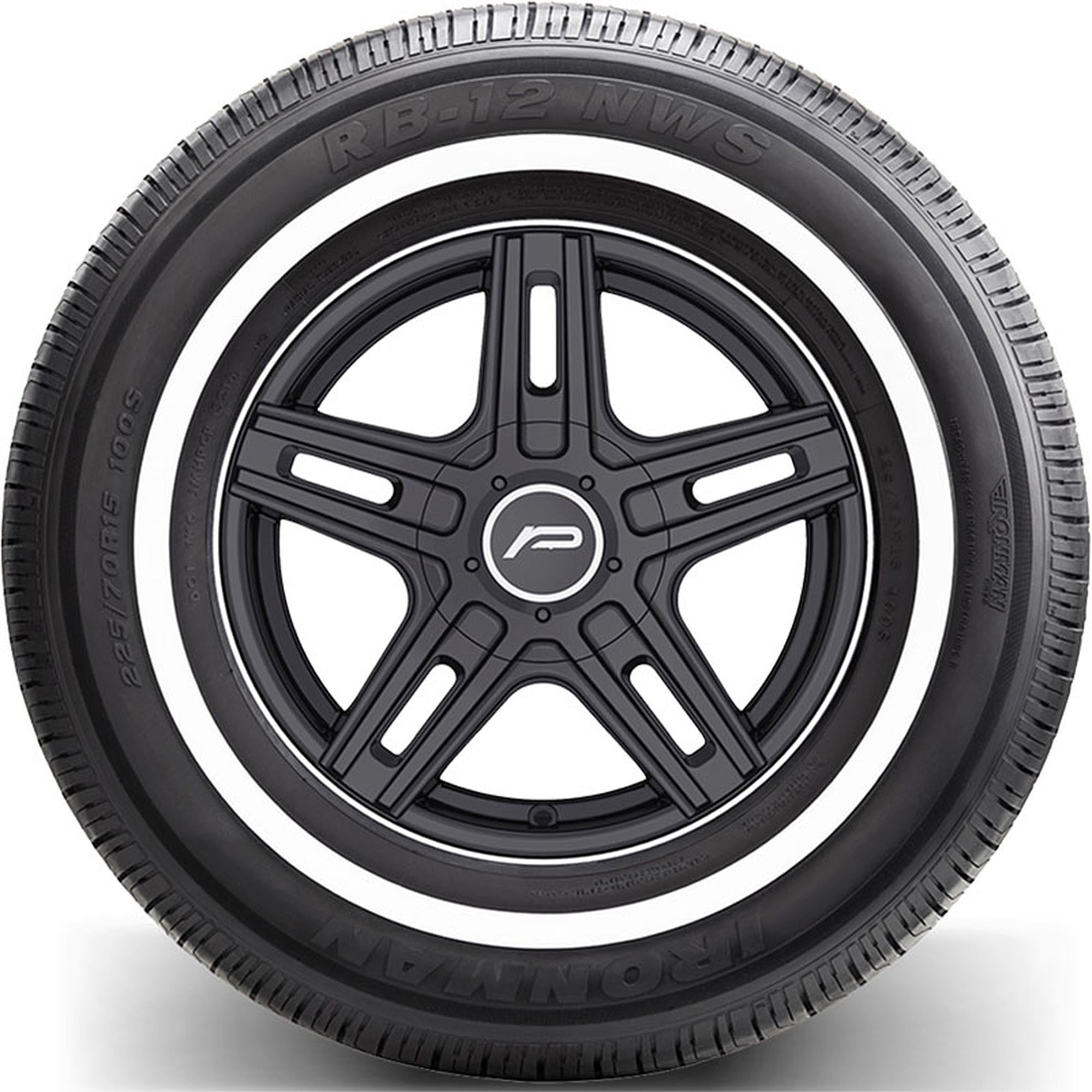 Ironman RB-12 NWS 195/75R14 92S OVERVIEW The Ironman RB-12 NWS is a great choice in an affordable touring/all season tire. The RB-12 NWS features an enhanced rubber formulation, symmetrical all season tread with sipes, deep grooves and slotted shoulders, a tread pitch that’s computer tuned for low noise and a wide footprint for great handling and road manners. For a nice retro touch, the RB-12 NWS also features a white-stripe sidewall. The RB-12 NWS is covered by a 60-month limited policy and road hazard warranty.