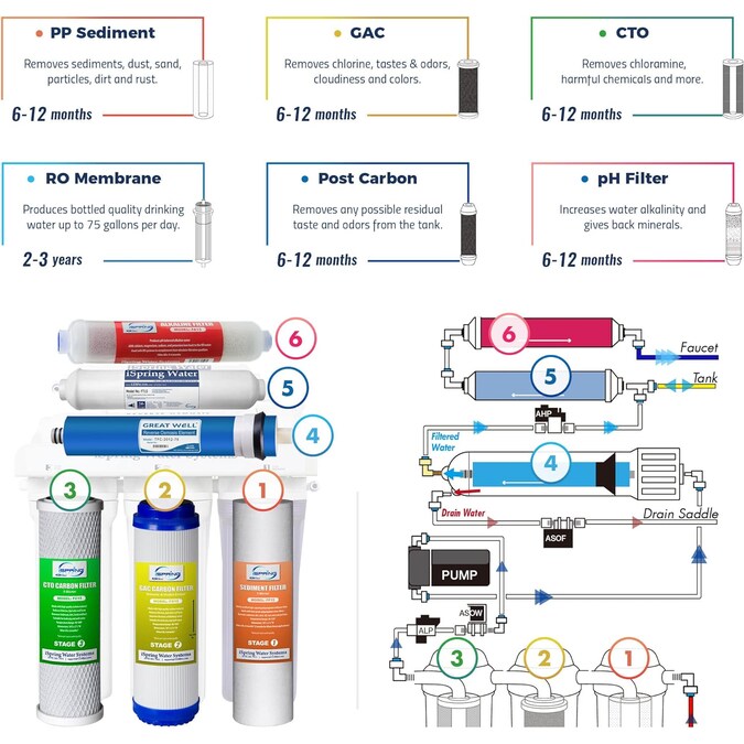 - Package Contents: RO system, prefilters, ro membrane, post carbon filter, alkaline filter, water storage tank, drinking faucet, installation kit with spare parts, owner’s manual
