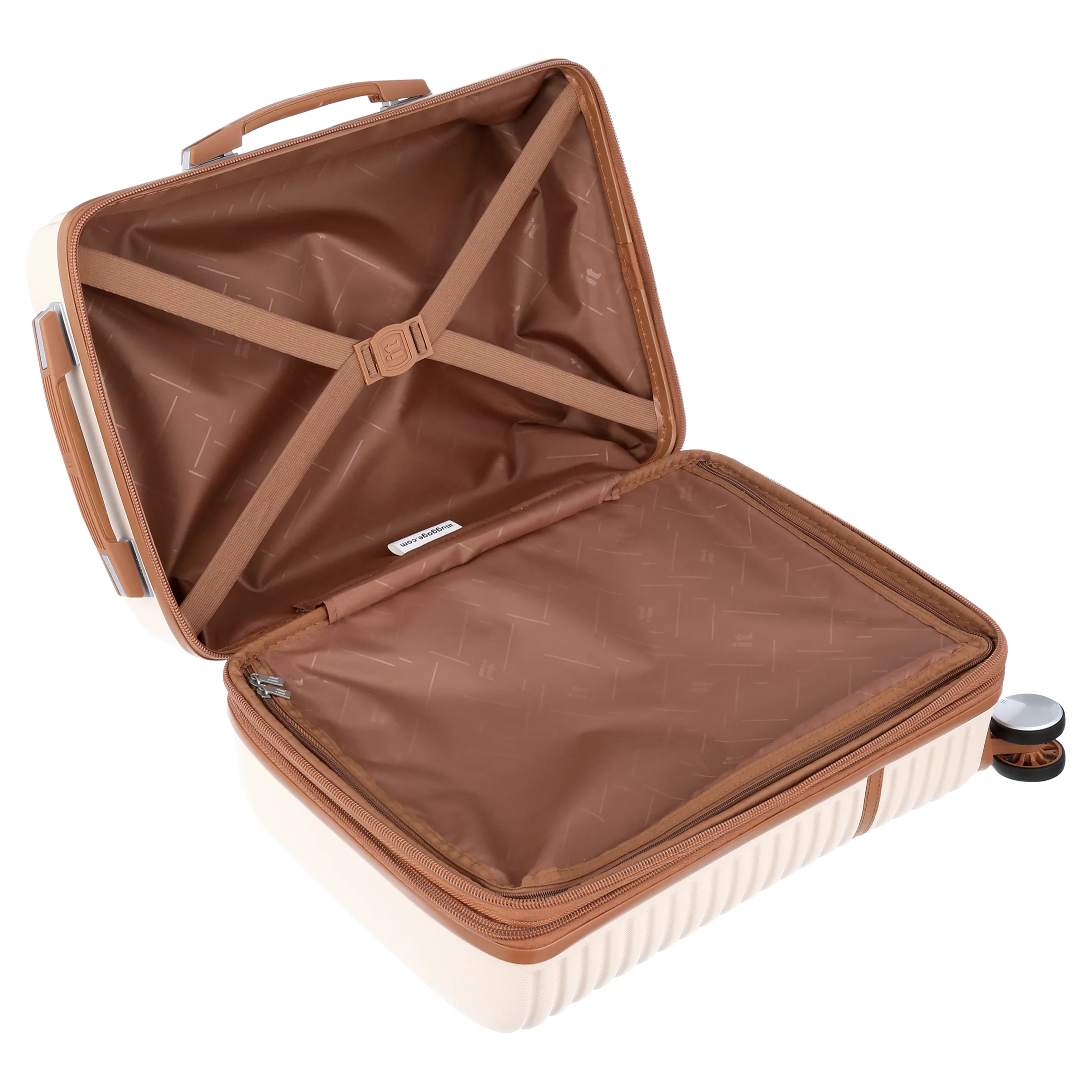 Superior wheel control – Constant design and testing ensures the performance of our wheels lead the industry Luxury fashion detailing – Tan PVC design on front panel with matching components add to the luxurious look Space expansion from the middle – This provides up to 25 percent extra space while still ensuring stability Lightweight trolley system – Strong, lightweight tubes help reduce weight and improves strength Overall Dimensions: 21.5 x 14 x 9” + 2.5” Exp, Case Dimensions: 18.5 x 13 x 9” + 2.5” Exp, 6.34 lbs. 10 Year Warranty – Assured quality in every case!