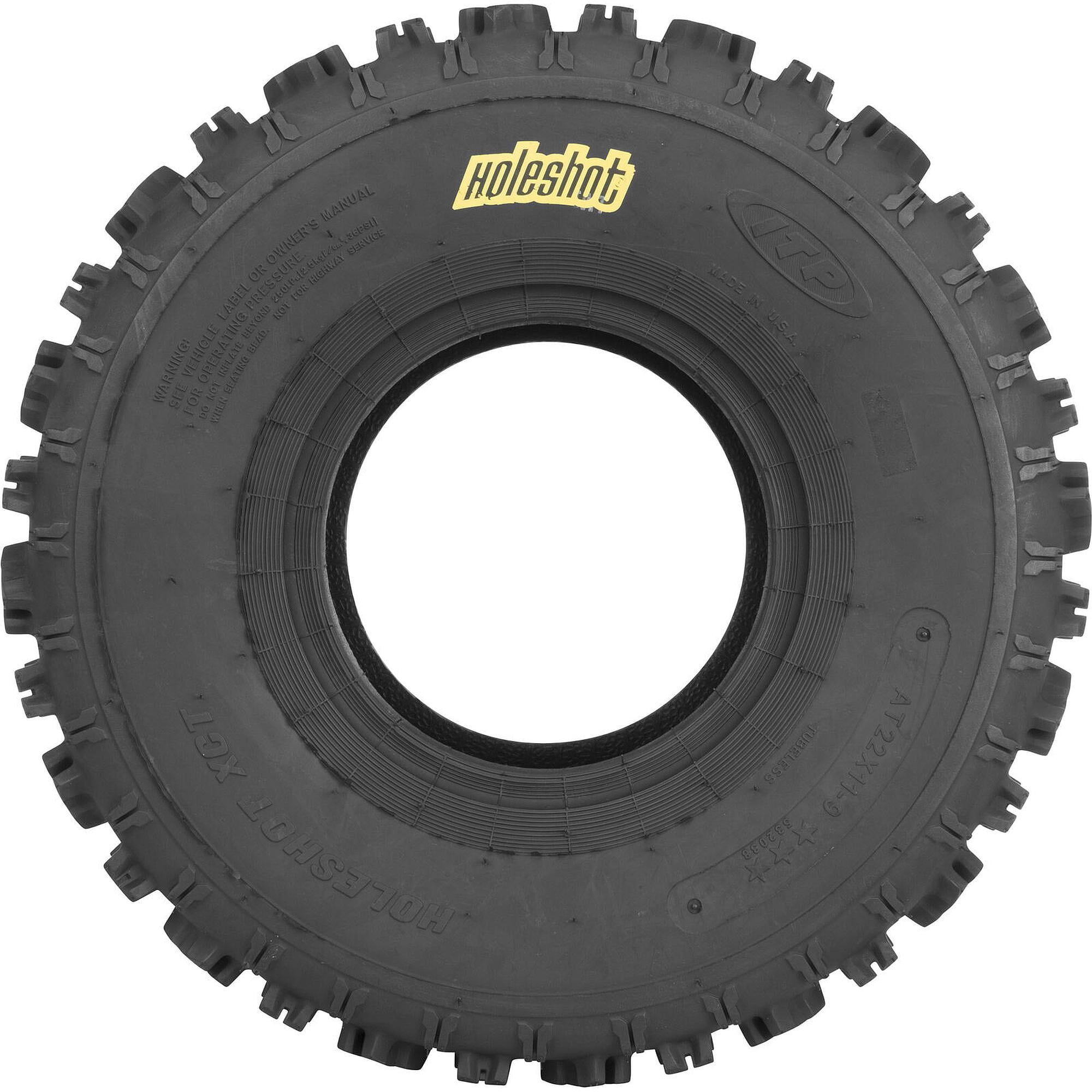 Itp Holeshot XCT FEATURES AND BENEFITS Enhanced controllability Upgraded damage resistance All terrain traction OVERVIEW The Itp Holeshot XCT is an all terrain, all season tire designed for ATVs and UTVs. The tire promotes exceptional on- and off-road traction. The ideal tread design allows the tire to enhance soft, loose, and uneven terrain grip, optimizing its consistent forward motion. The staggered block pattern increases the surface traction, upgrading the model’s ability to conquer deep mud and loose dirt terrains. The tread design keeps the footprint clean as well. The groove pattern and its staggered blocks eliminate mud, snow, and rocks from the footprint. Stone retention is effectively avoided, while mud and snow do not block surface contact. This results in a safer versatile terrain performance. The model offers excellent controllability, thanks to the ideal tread design and its close contact with the driving surface. The symmetric tread pattern, with the directional tread elements, keeps surface contact at all times. In this manner, the tire is quicker and more precise in its response to the driver’s commands, while the structure is secured against the driving pressure affecting the tire. This combination greatly boosts the tire’s maneuvering capability on versatile terrain surface conditions. The Itp Holeshot XCT ensures secure performance with its better damage resistance. The strengthened casing and the deeper tread design work together in order to improve its tread and casing damage. These elements actively boost the tire’s resistance to the tread’s chipping, cracking, and tearing. On the other hand, the structure guards the casing against punctures, cuts, and impact damage. Their combination helps lengthen the overall service life. This tire has a BIASED ply structure. When it comes to ATV tires, there might be slight visual differences between brands and models even if the tires are of the same size. NOT FOR HIGHWAY USE: This tire model is not DOT-approved for highway use. Manufacturers recommend changing tires every 10 years. As long as tires are properly stored before they are sold, the year of their manufacture will not shorten their service life.