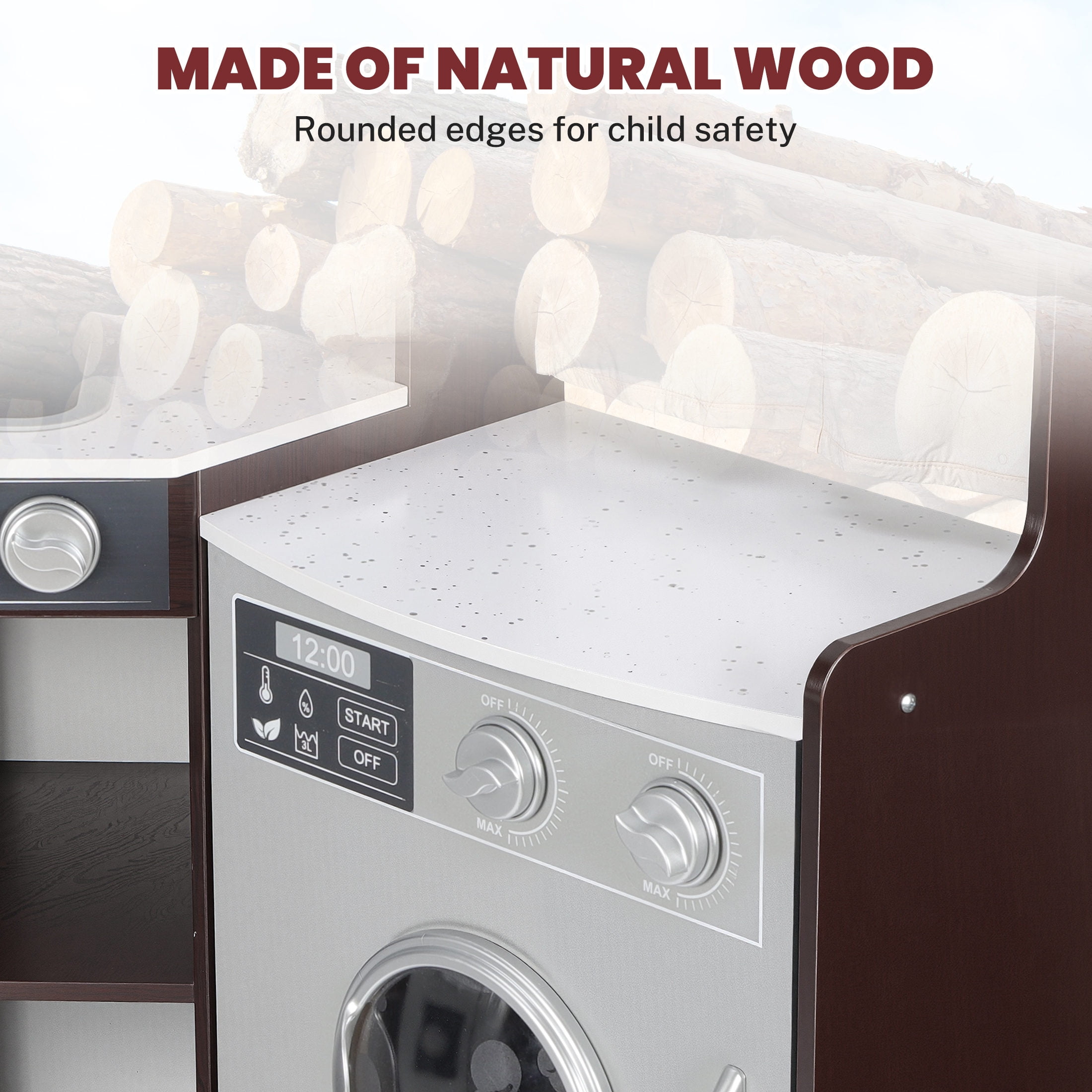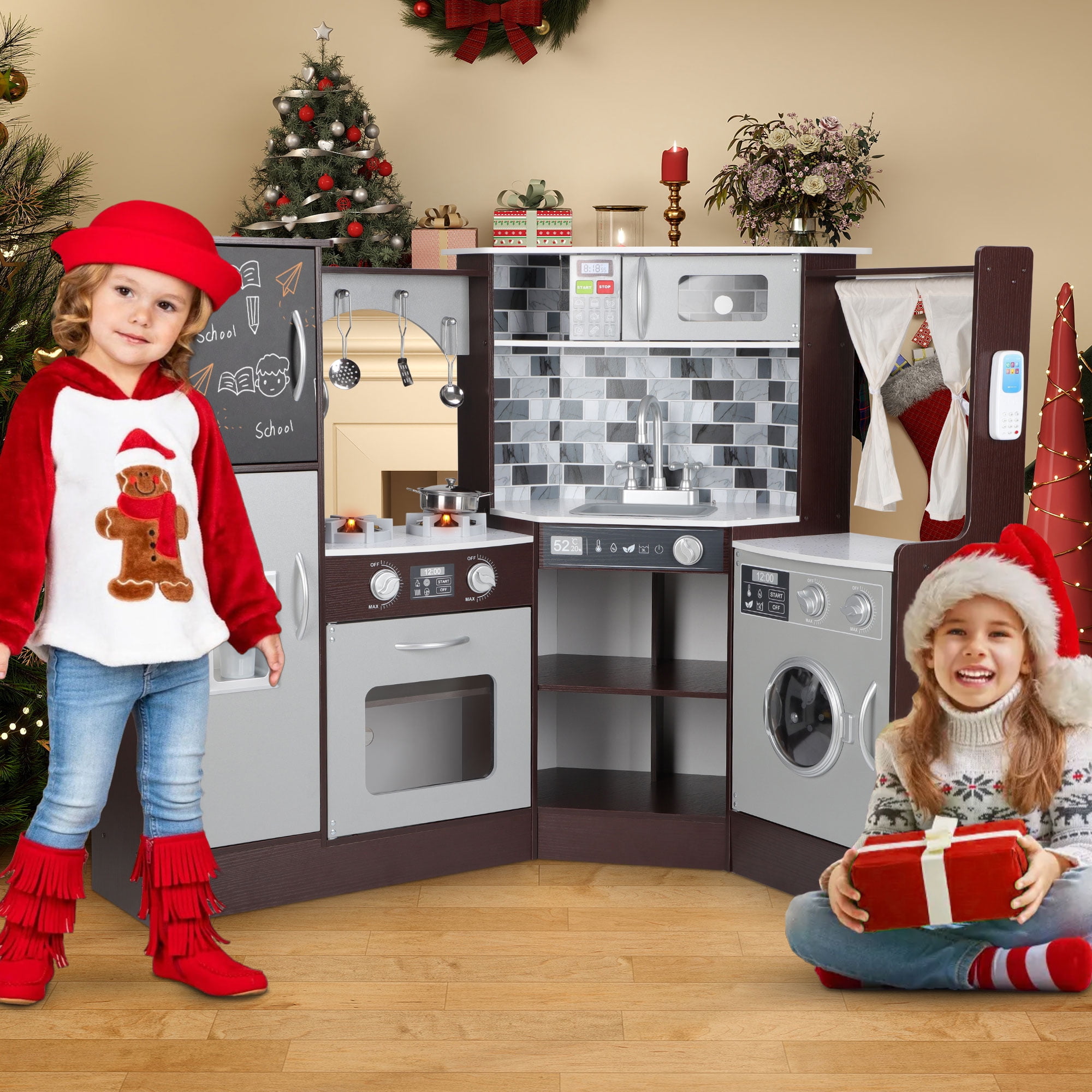 iYofe Corner Wooden Play Kitchen, Kids Kitchen Playset w/Light & Sound, Phone, Microwave, Stove, Cocina de Juguete Para Niña with Cooking Toys Accessories for Toddler Ages 3-5 Boys Girls, Espresso