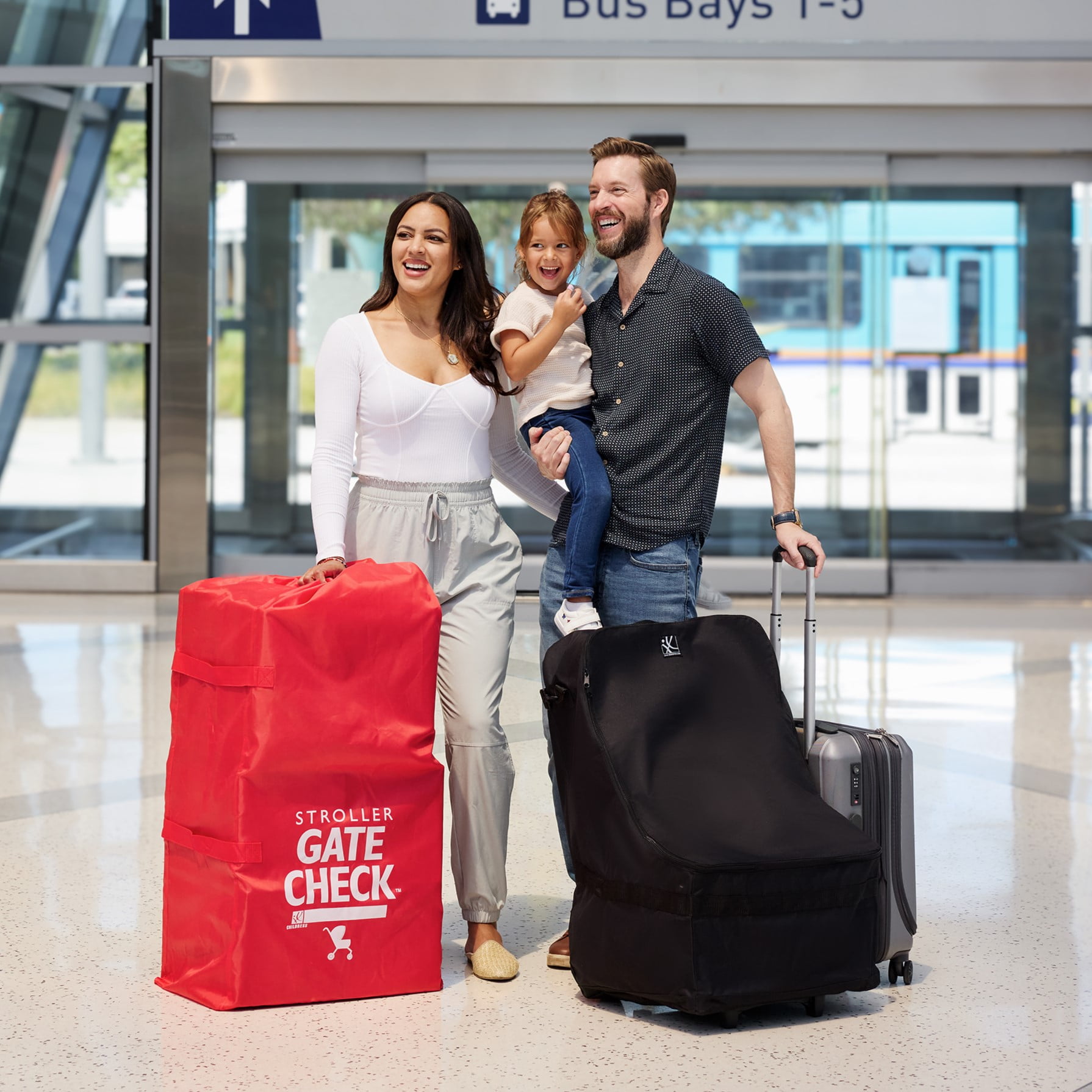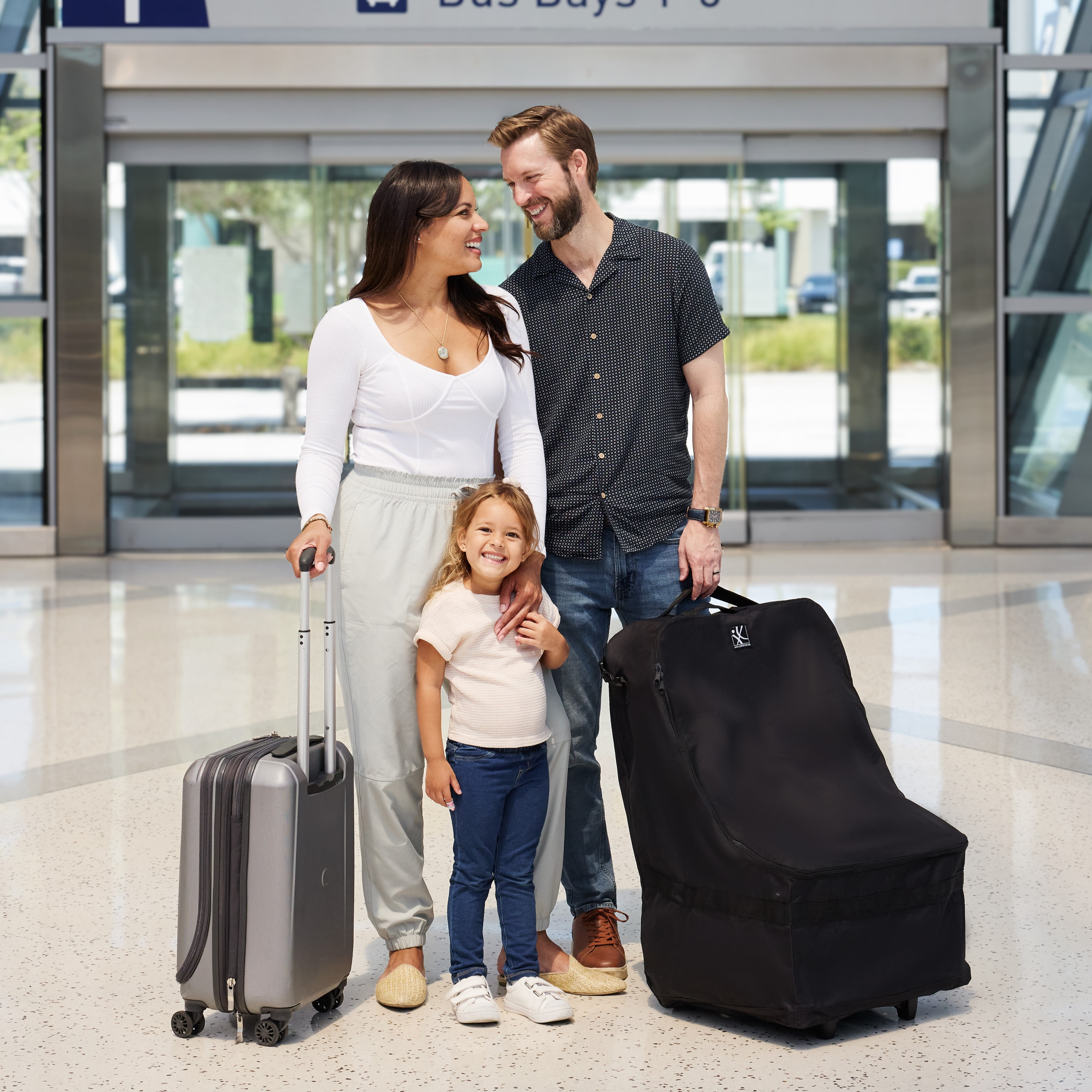 J.L. Childress Wheelie Car Seat Travel Bag and Carrier with Wheels, Black: Protects your child’s car seat from scratches, dirt and germs Water-resistant, heavy-duty fabric is travel-tested Adjustable, interior cinch strap holds car seat in place Adjustable pull strap allows easy pulling & maneuvering Dual rubber wheels, resting pegs and a solid platform prevent dragging Dual, lockable zippers, detachable shoulder strap and ID card Compatible with most car seats, contact J.L. Childress to confirm