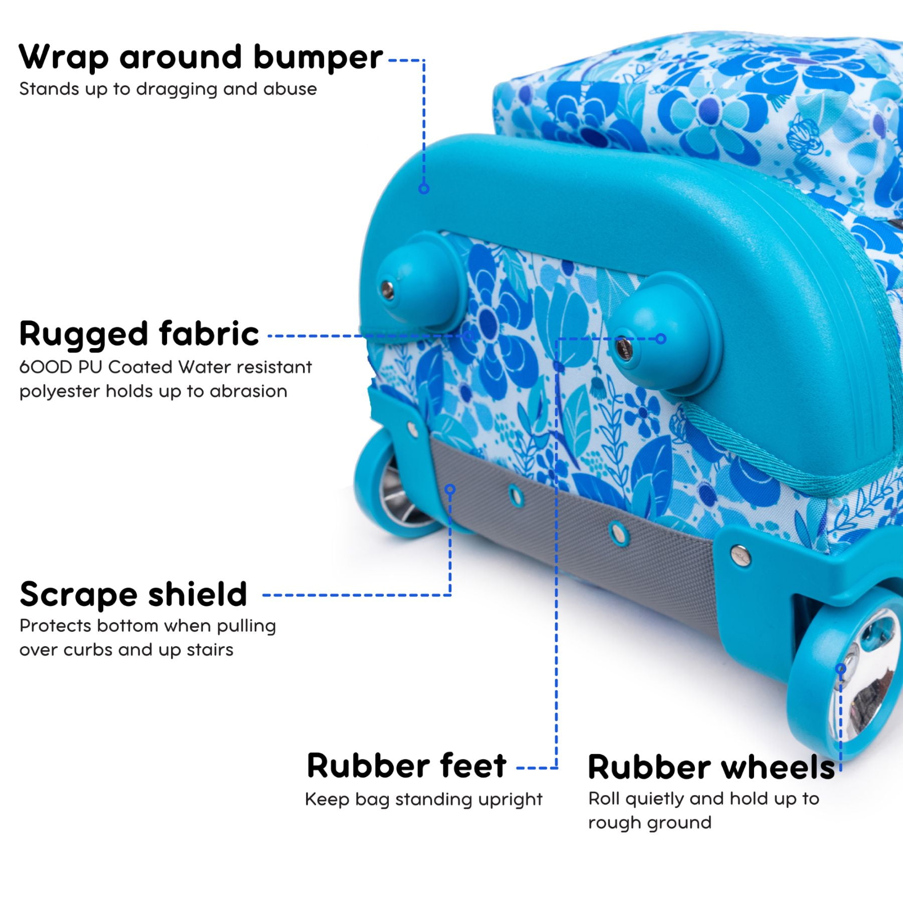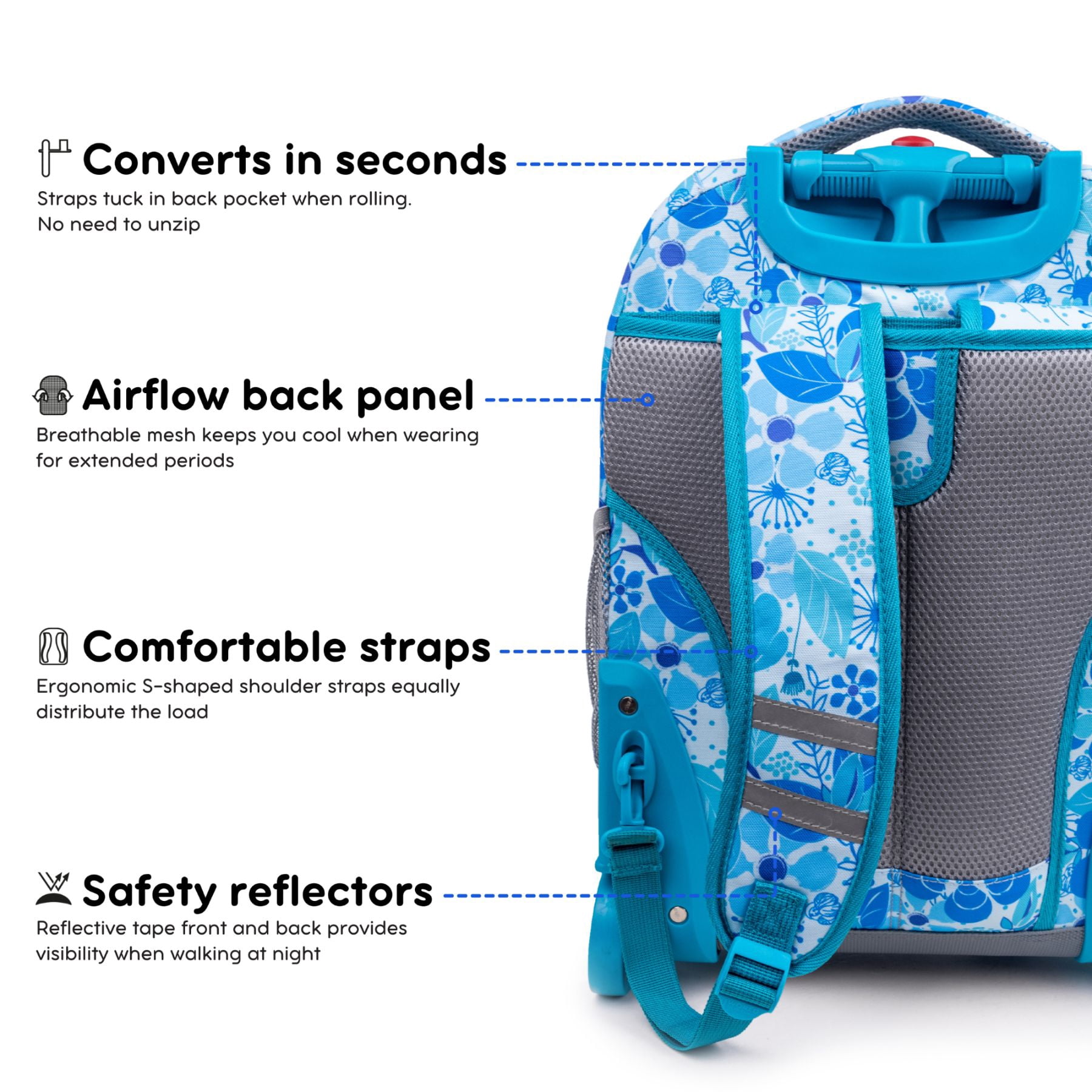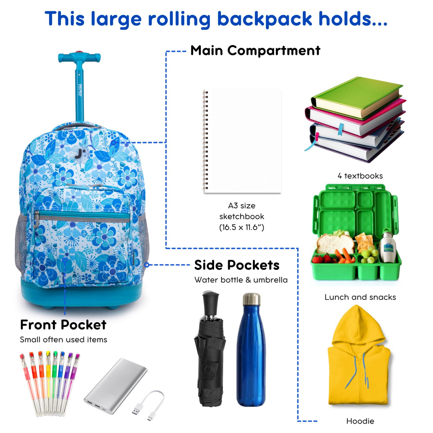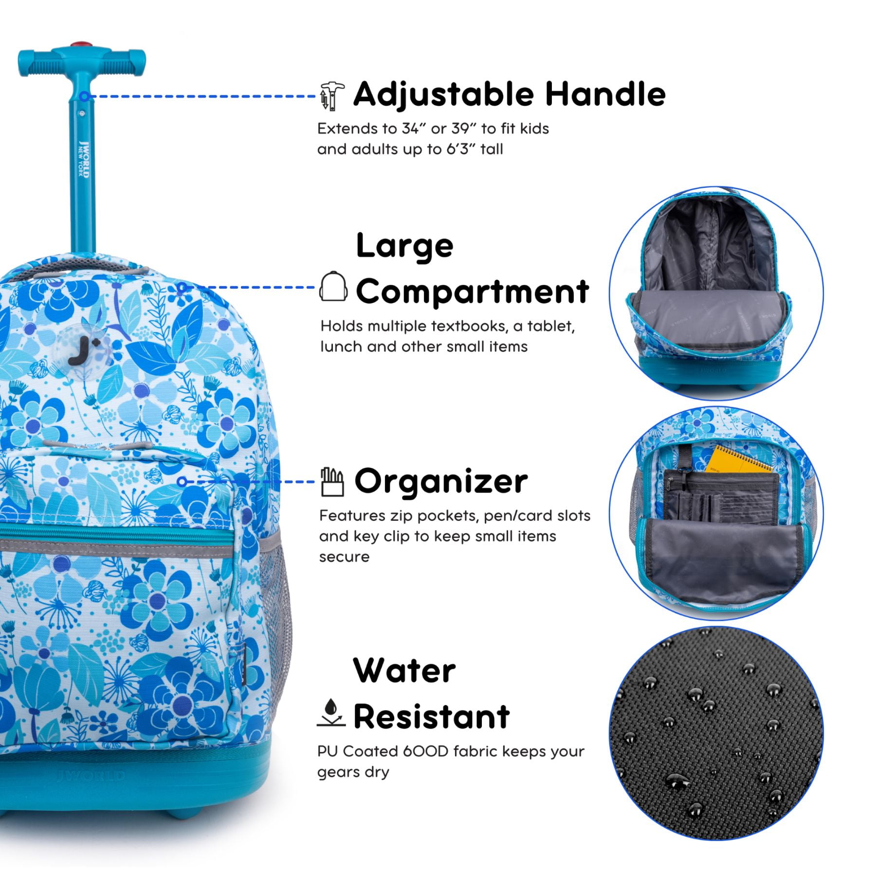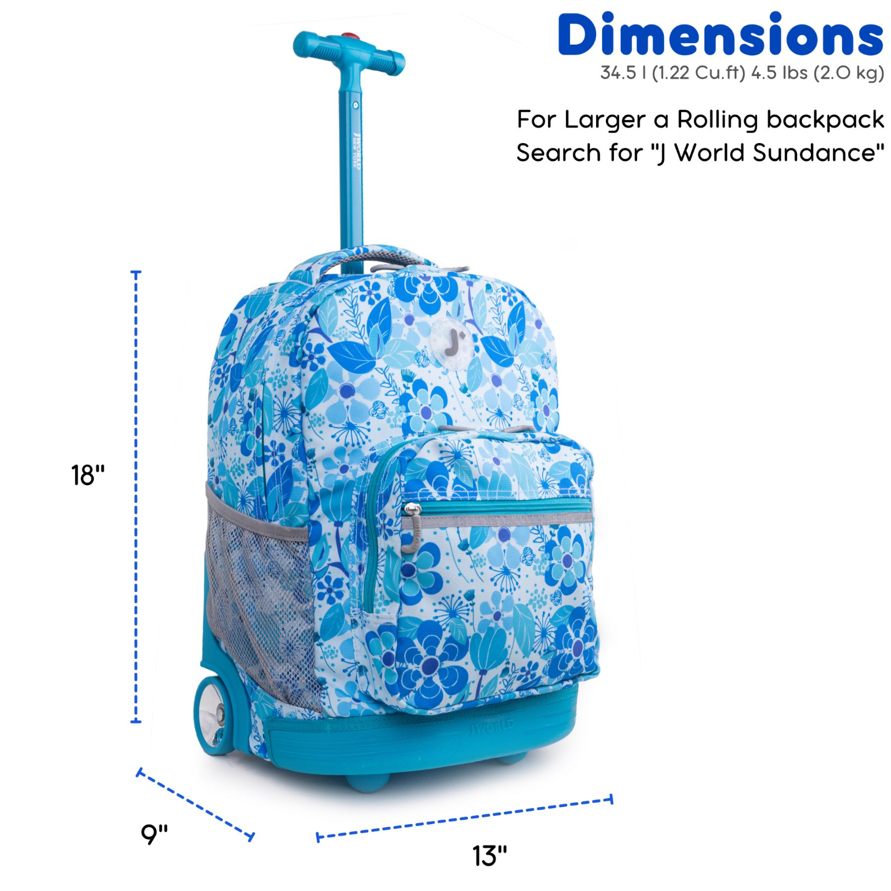 J World Girls Sunrise 18″ Rolling Backpack For School And Travel, Blue Vine