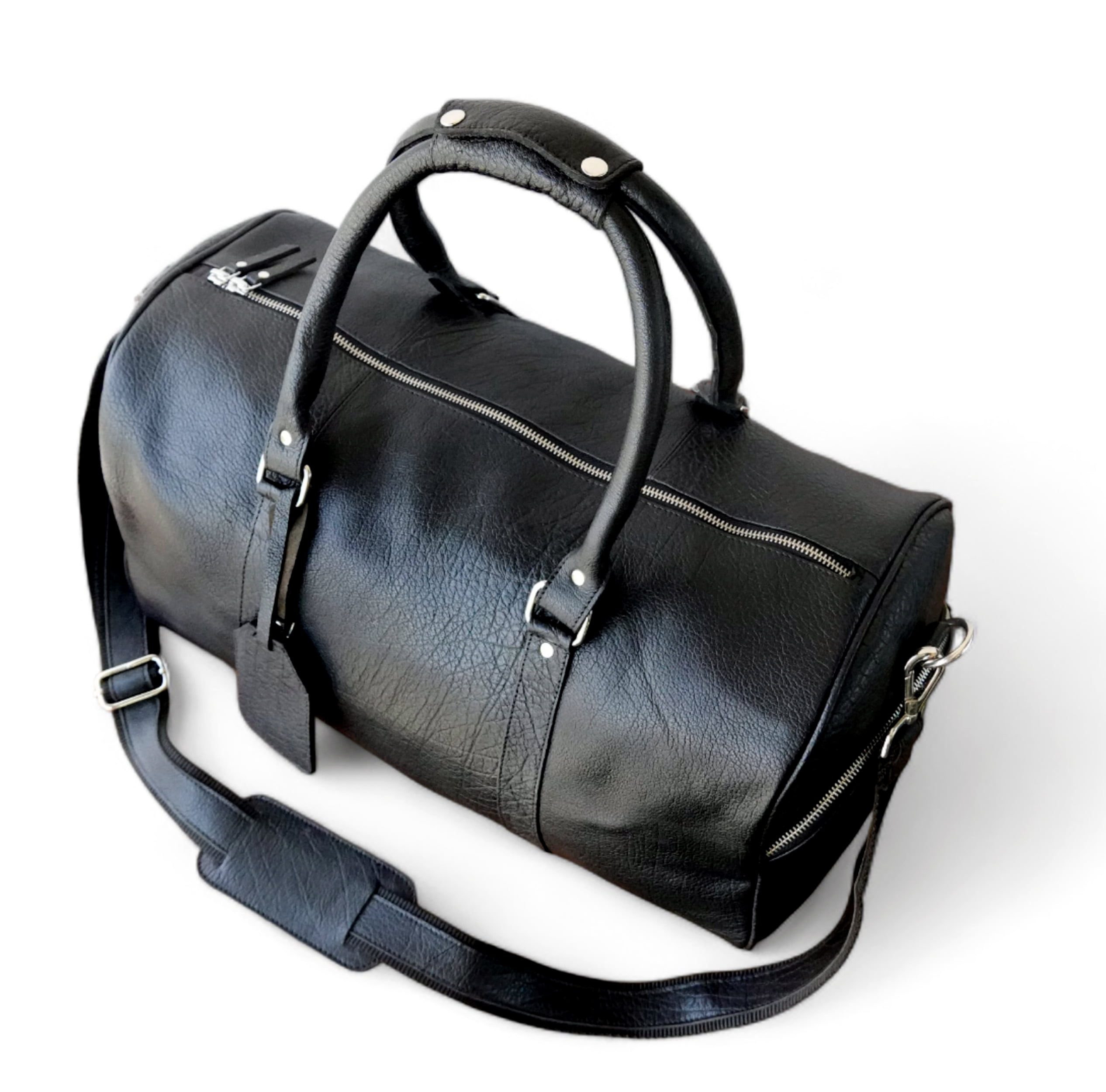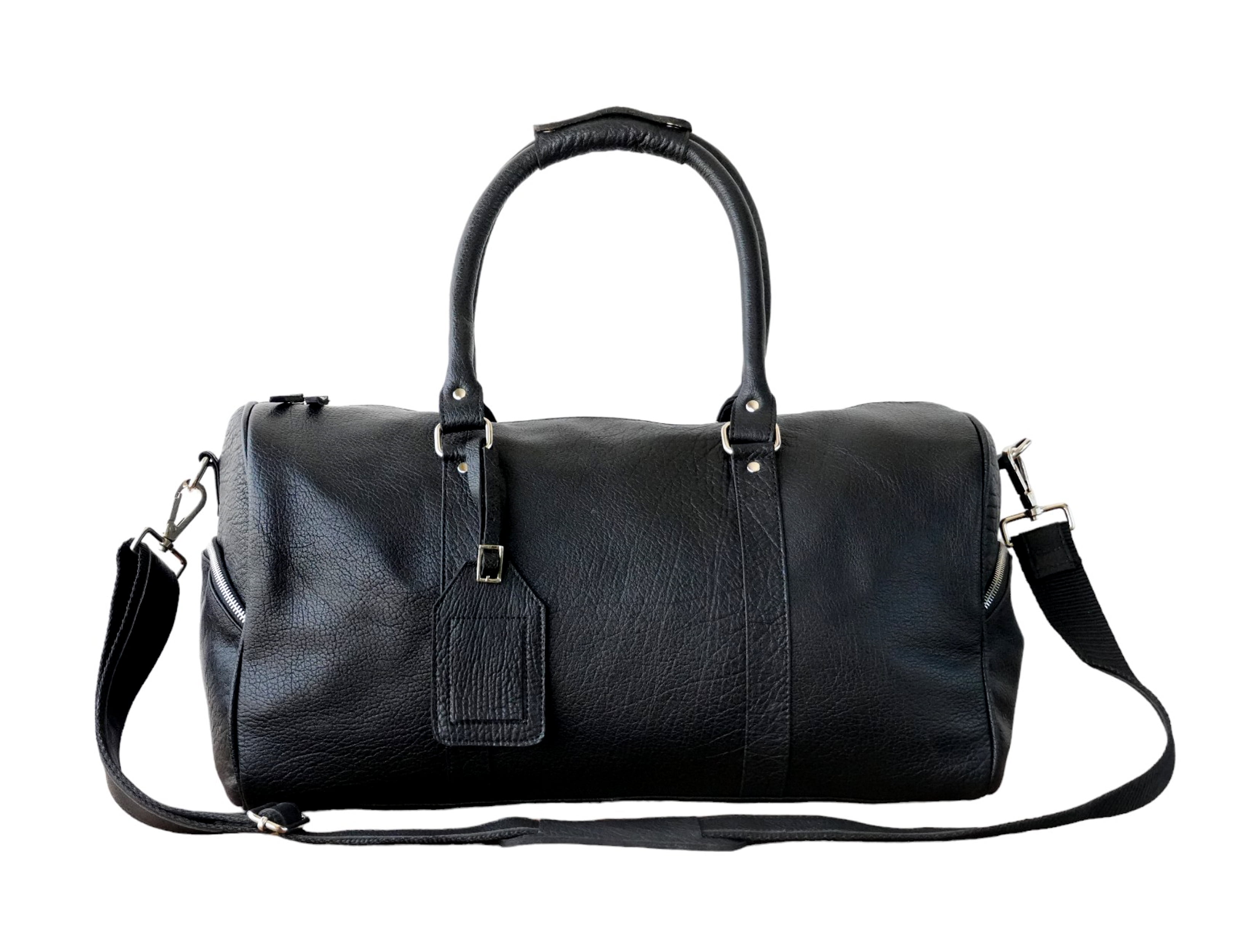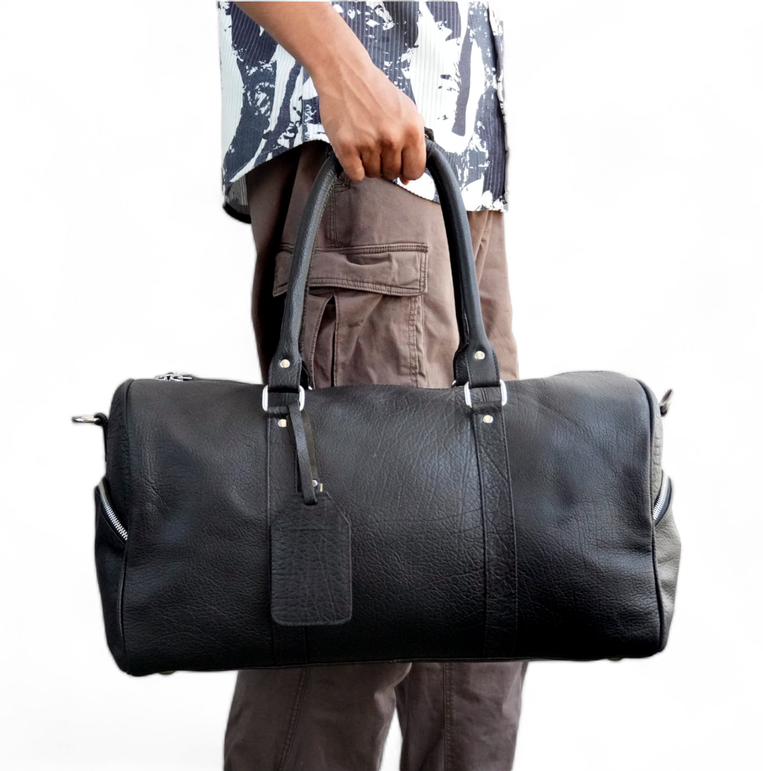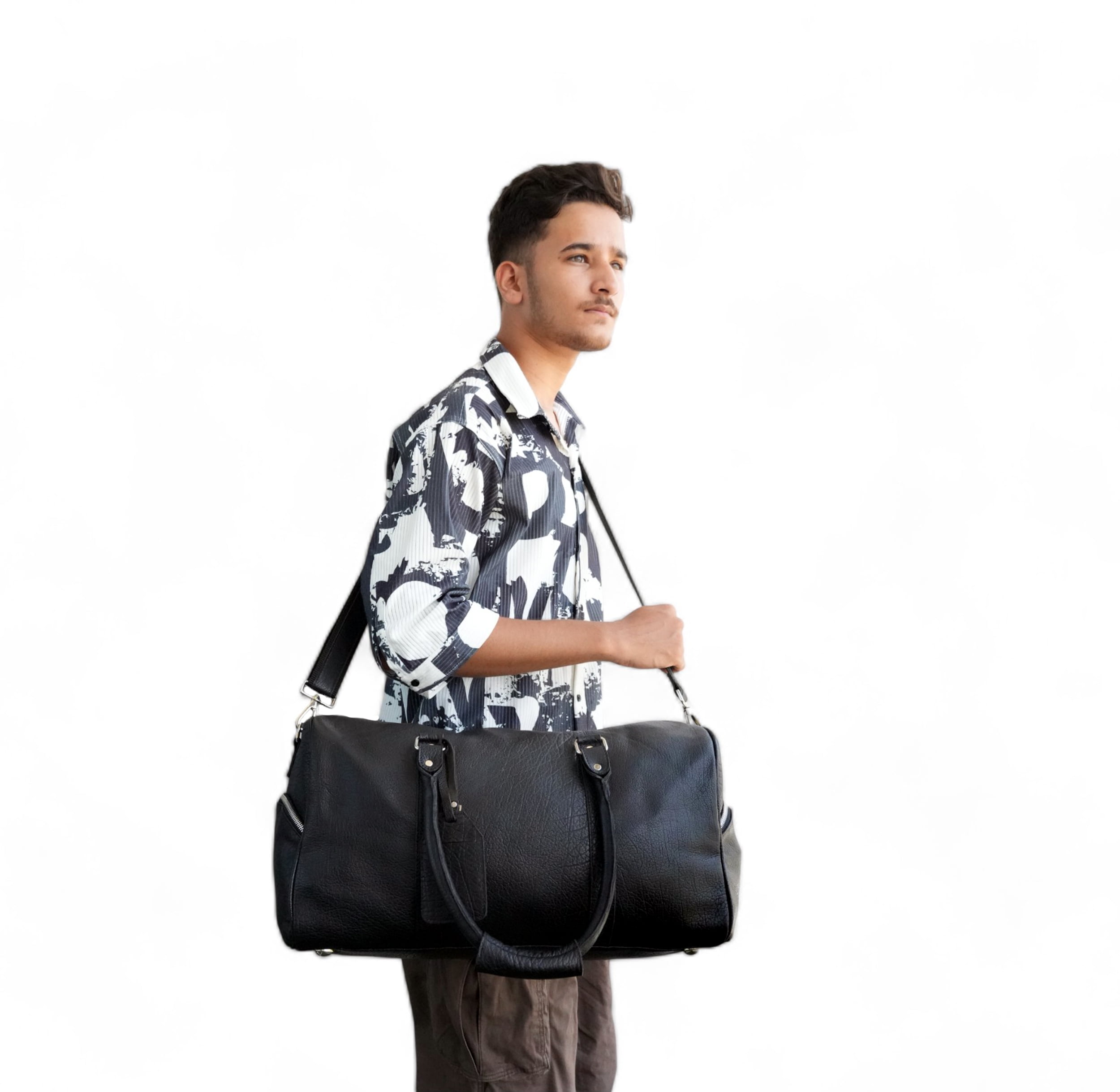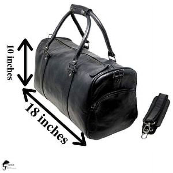 Dimensions: 18″” Length x 9″” Width x 10″” Height. Meets most airline carry-on rules. Ideal as a gym bag, weekender bag, travel bag, or overnight bag. Fits easily in the overhead bin. PREMIUM MATERIAL: Crafted from superior leather with durable waxed thread. Features a thick polyester inner lining and high-quality nickel-finished buckles for a luxurious look. Built to last with solid hardware and construction. LARGE CAPACITY: Spacious main compartment for clothes, shoes, and other essentials. Smaller side pockets for gadgets like chargers, power banks, and mouse. FLEXIBLE VERSATILITY: Adjustable, wide shoulder strap with a 25-inch drop. Includes a padded handle and strap-pad for comfort. Features durable YKK zippers that glide smoothly.
