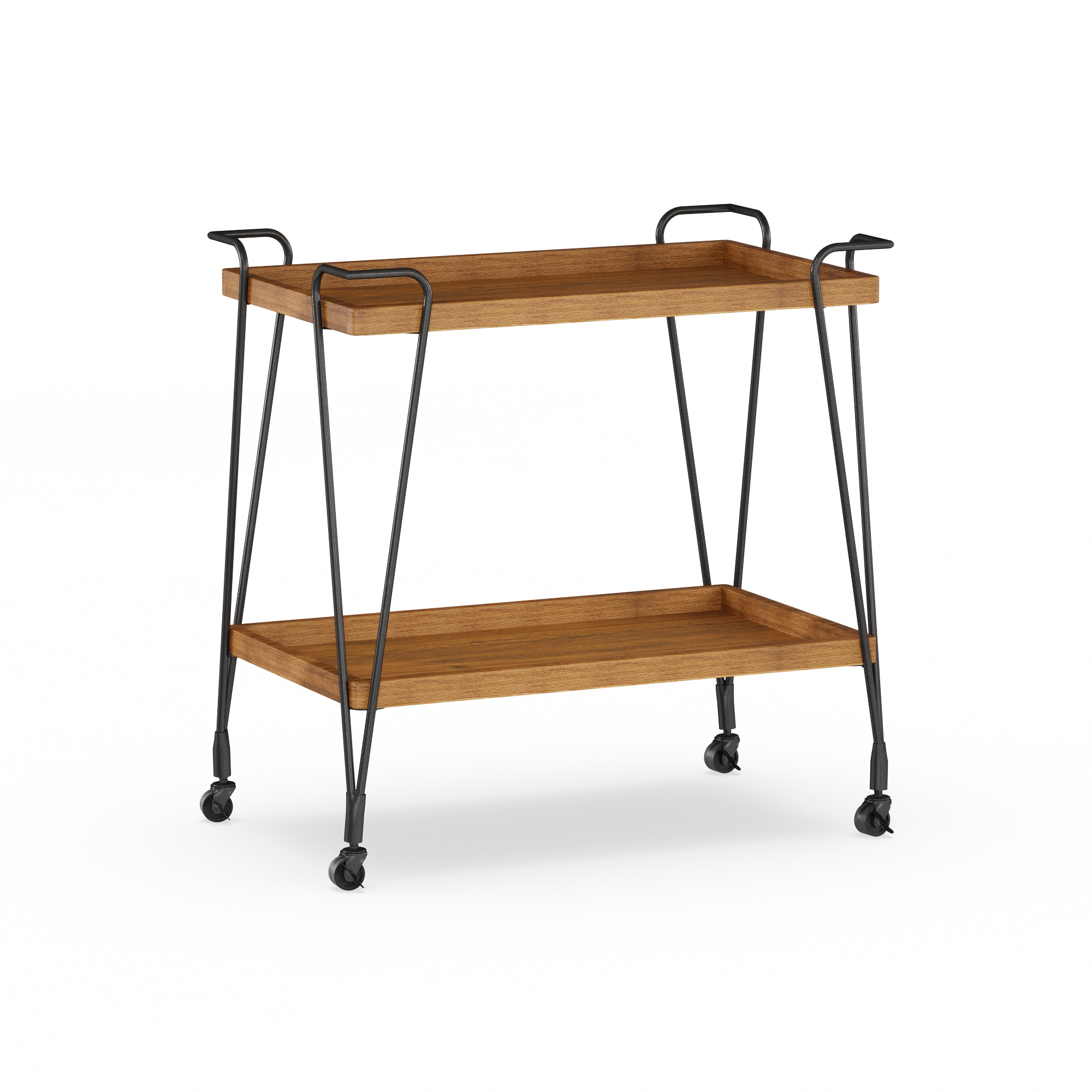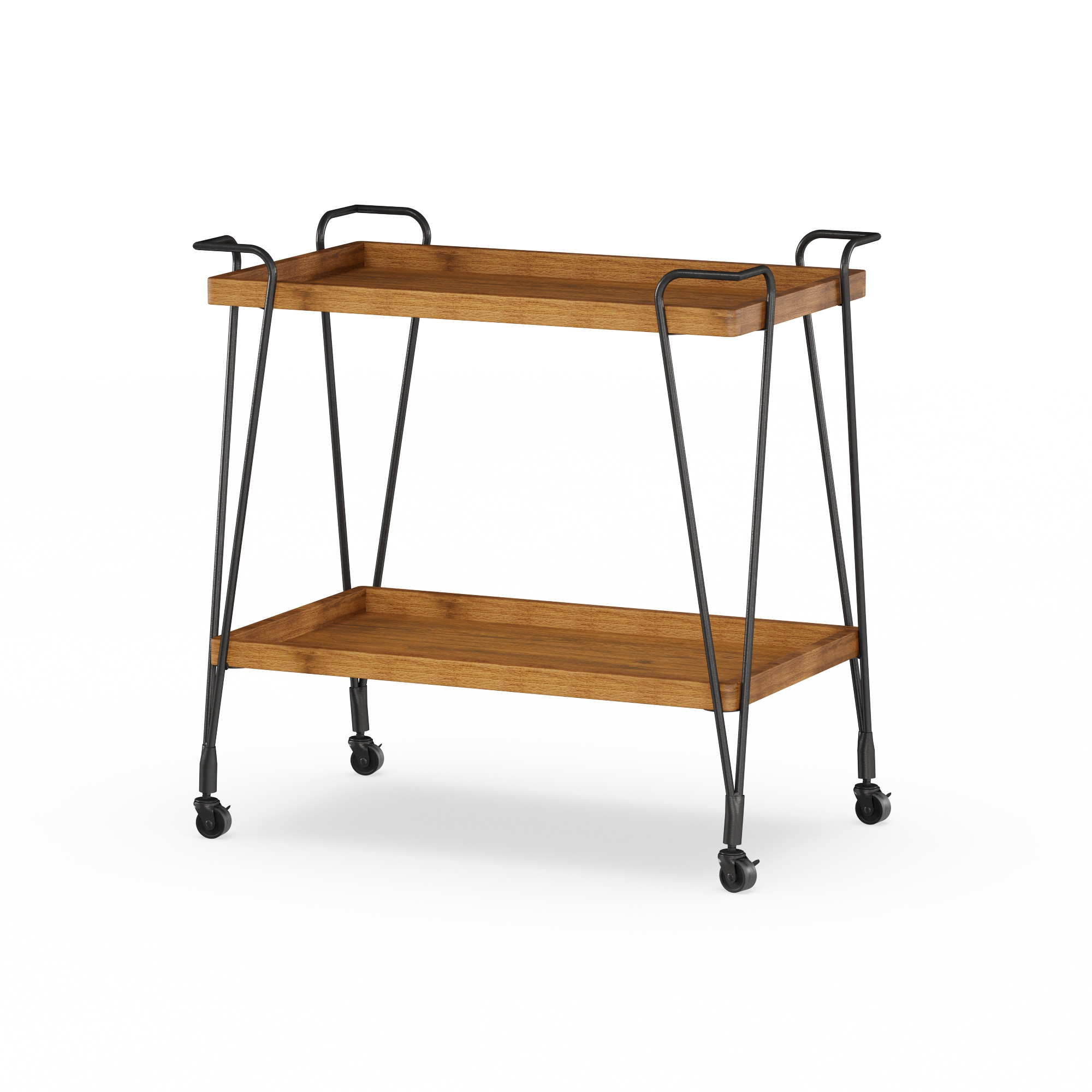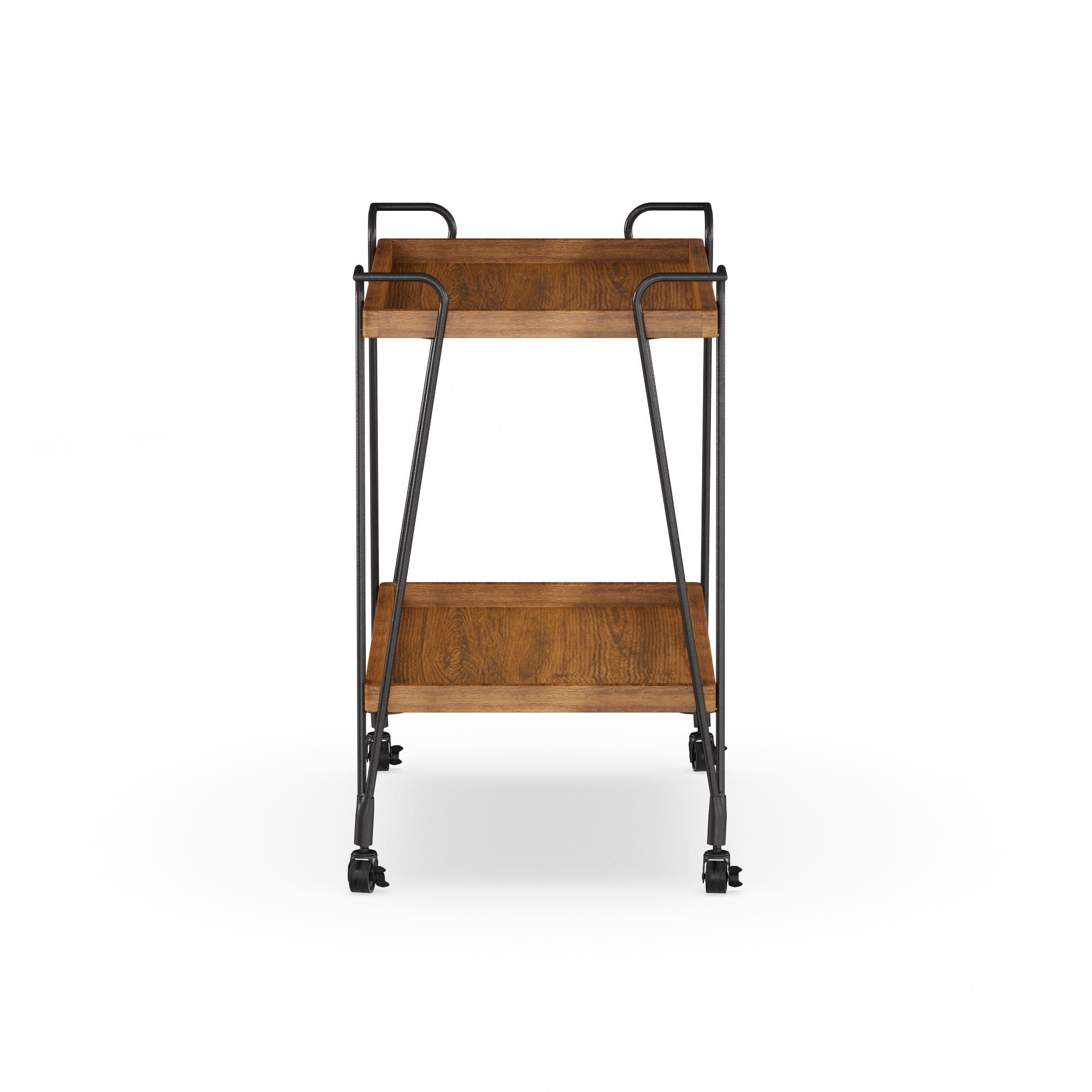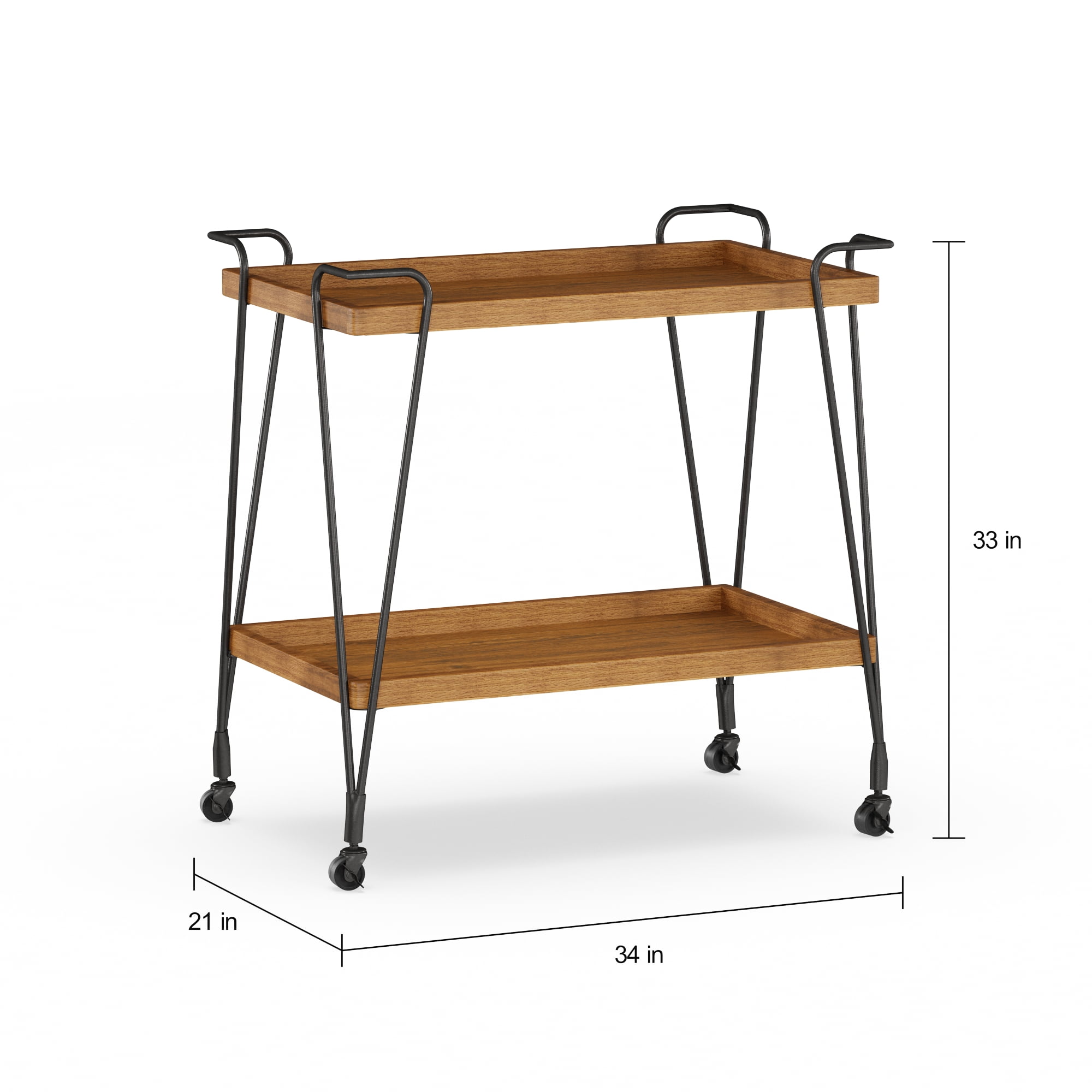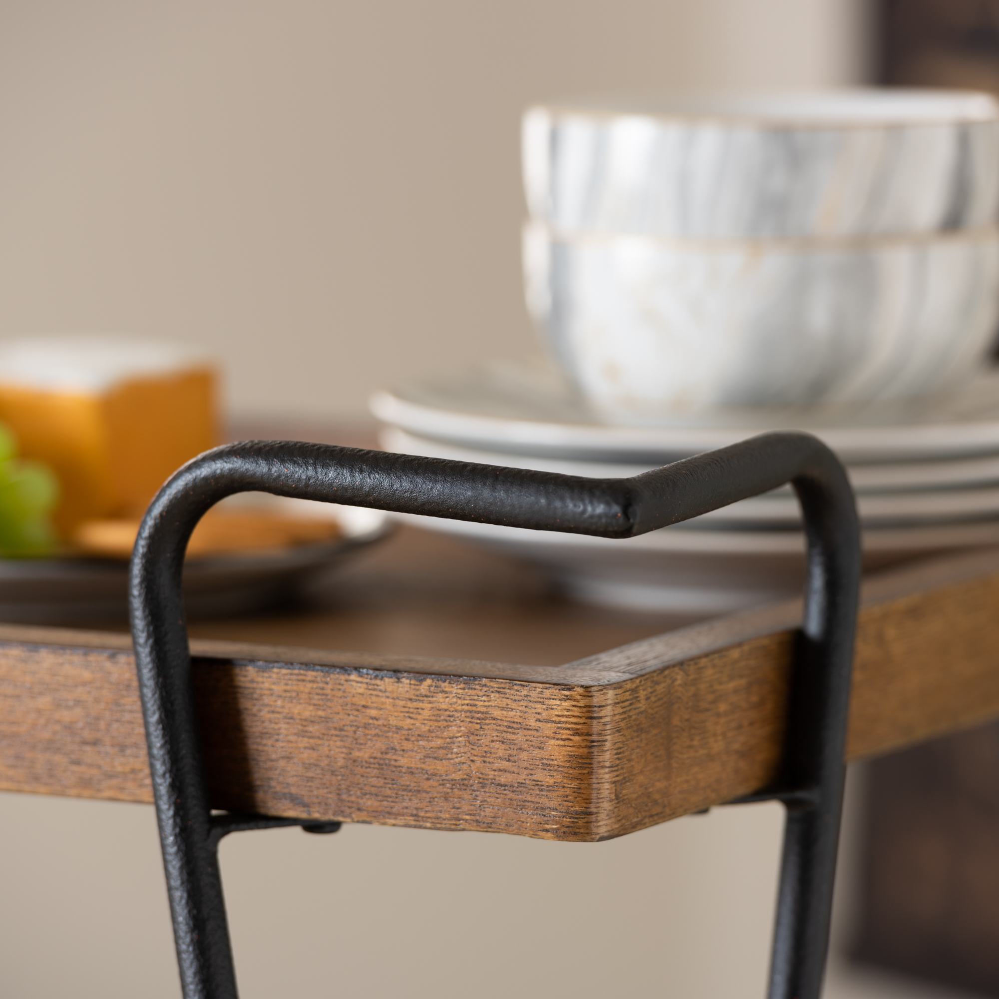 There’s something cinematic and wonderful in the simple functionality of the Jessica Rustic Industrial Style Antique Black Textured Finish Metal Distressed Ash Wood Mobile Serving Bar Cart. Whether used in the kitchen/laundry room or in a home office, the industrial style delivers authentic charm in ample doses. Constructed of sturdy metal frame in antiqued bronze finishing with MDF and distressed ash veneer, the Jessica features two spacious shelves for your wine bottles, glasses and kitchen utensils. The Jessica mobile serving cart is perfect for all kinds of parties or family and friends gathering. Load it full with wine bottles and wine glasses to serve your guests. Great design is as much about style as it is about functionality, the Jessica is made in China and it requires assembly.
