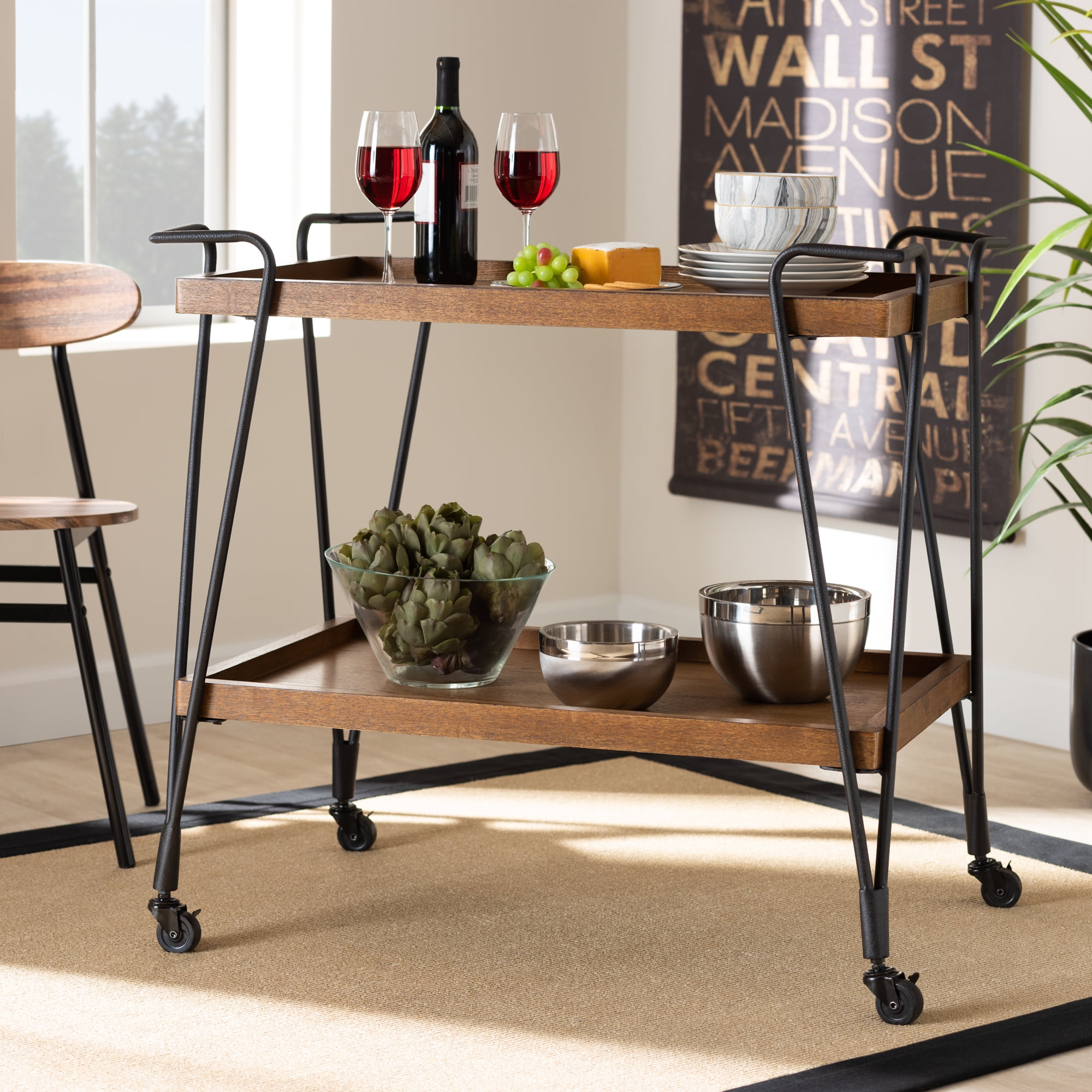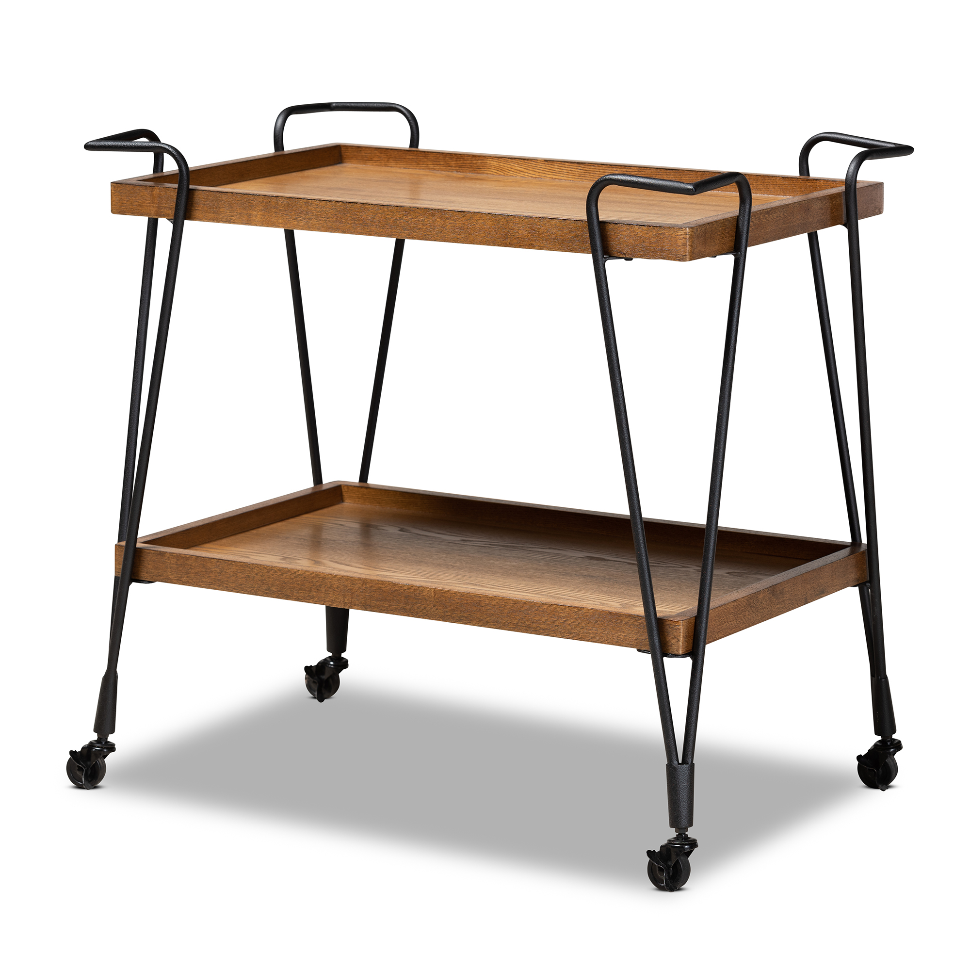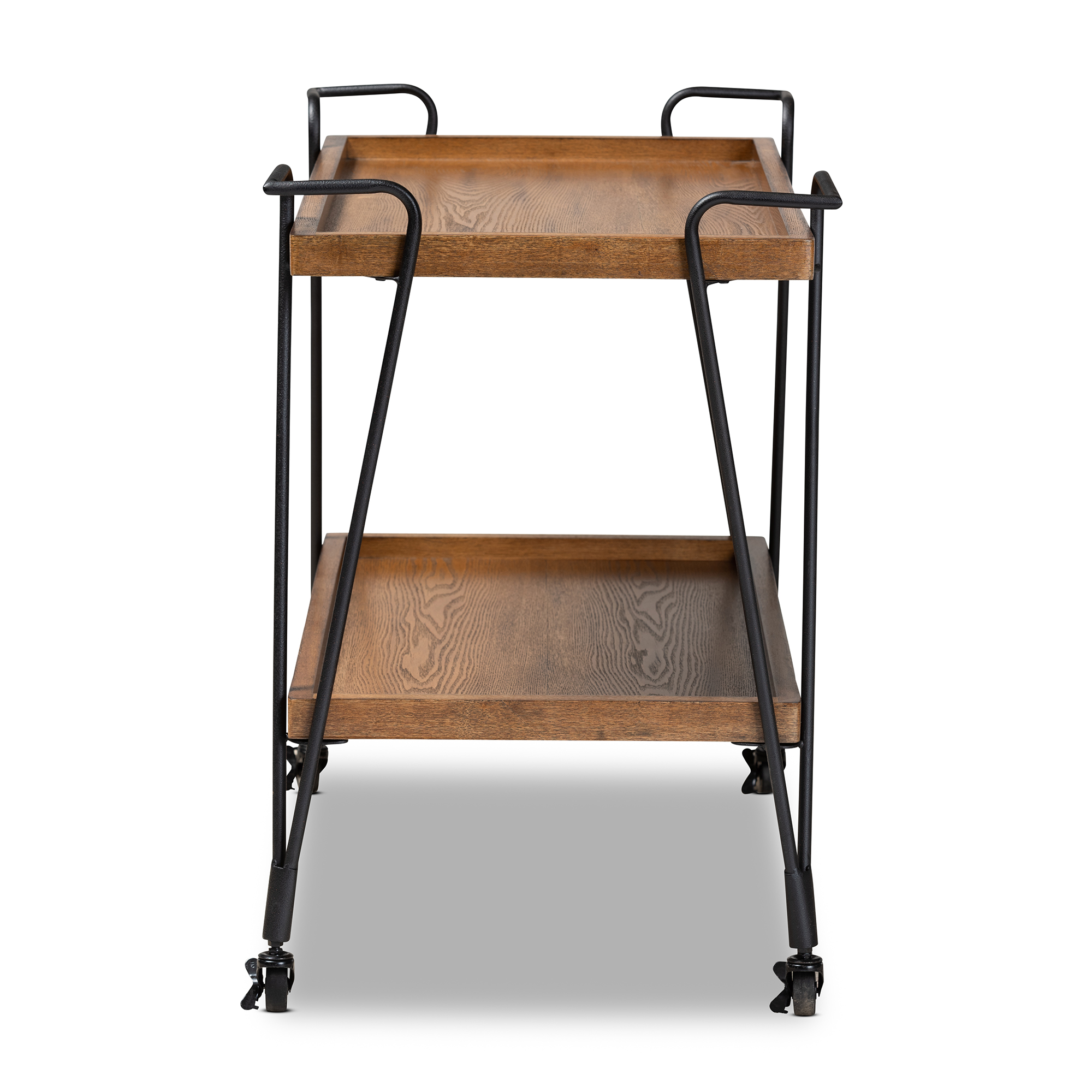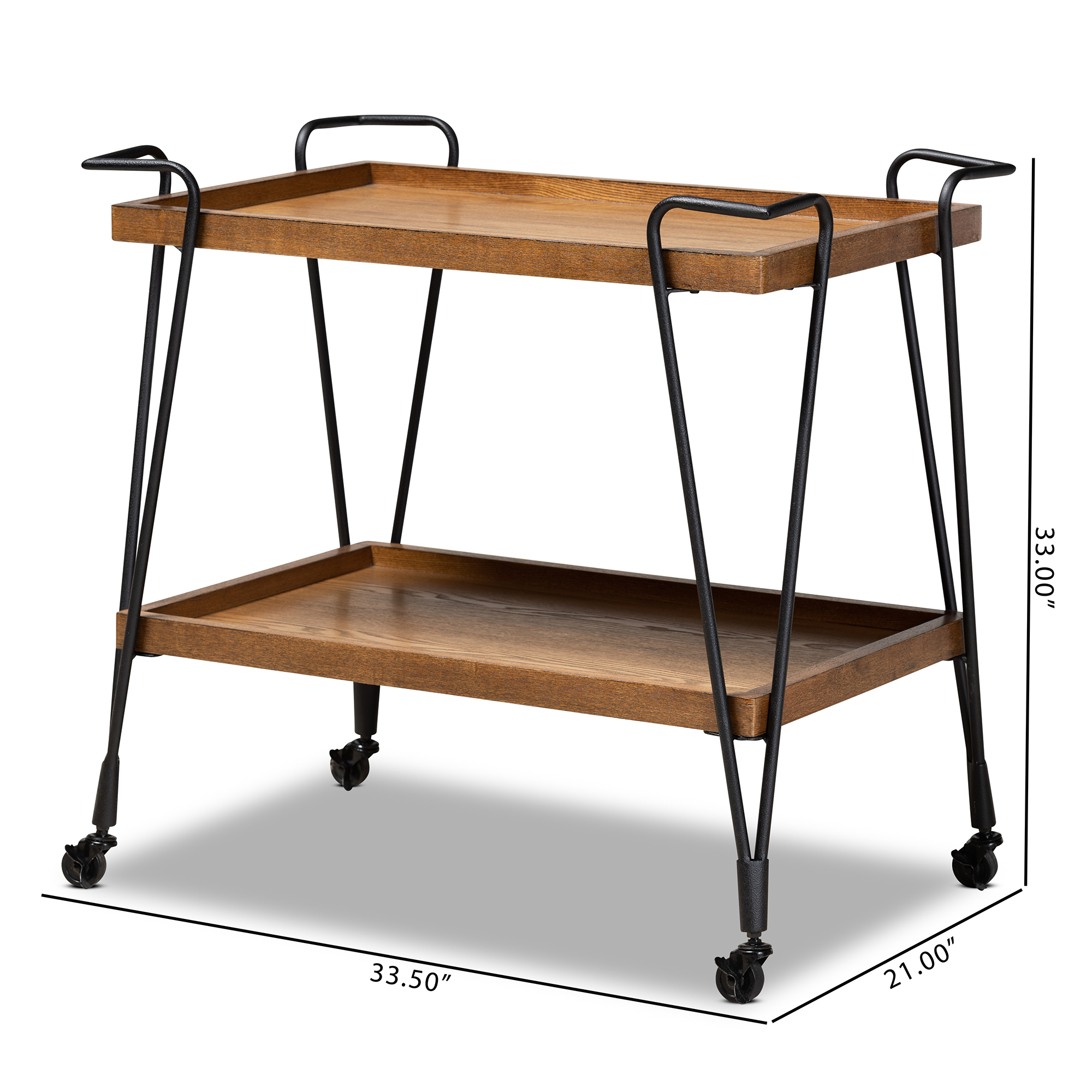 Rustic; Industrial; Antique; Black; Textured; Metal; Distressed; Ash Wood; Mobile; Serving; Bar Cart