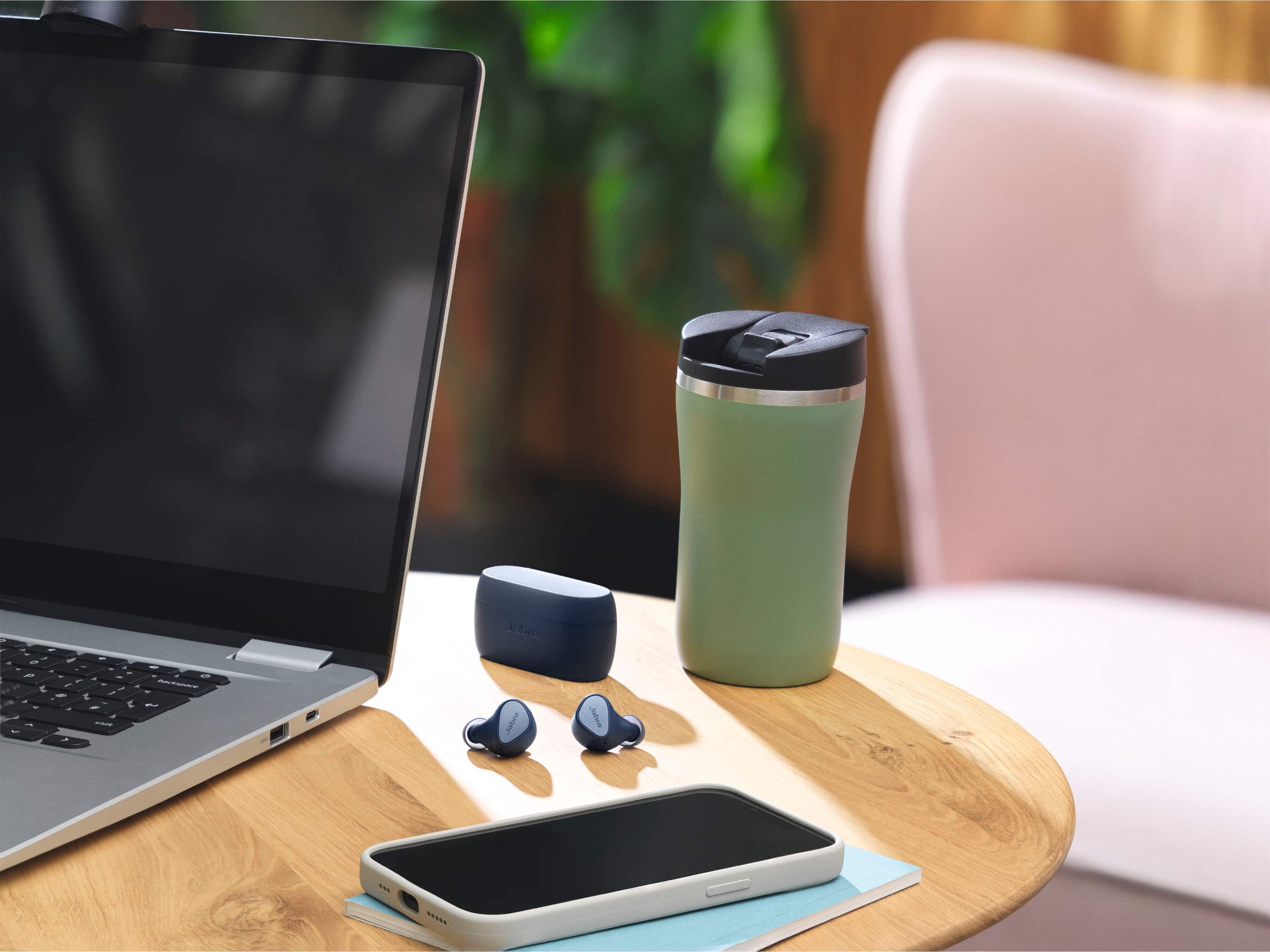 Jabra Elite 4 true wireless earbuds seamlessly switches between mobile phones or computers with Bluetooth Multipoint, and Fast Pair or Swift Pair features connect instantly with no hassle. With comfortable rainproof durability and Active Noise Cancellation, these wireless earbuds can tune into your music or be used while on-the-go. Wear the earbuds alone in either ear with mono mode or together as a pair. Long battery life with 5.5 hours in the buds and a total of 22 hours with the case (28 hours ANC off).