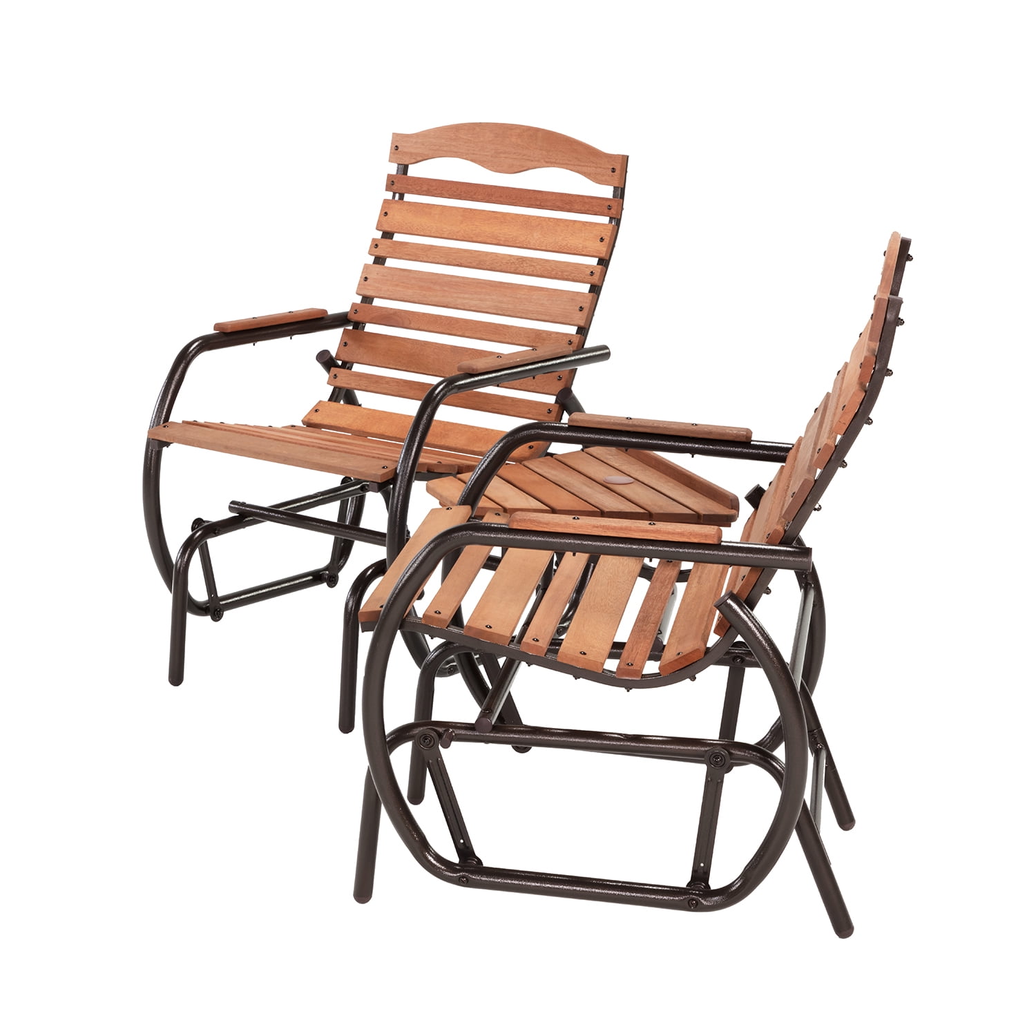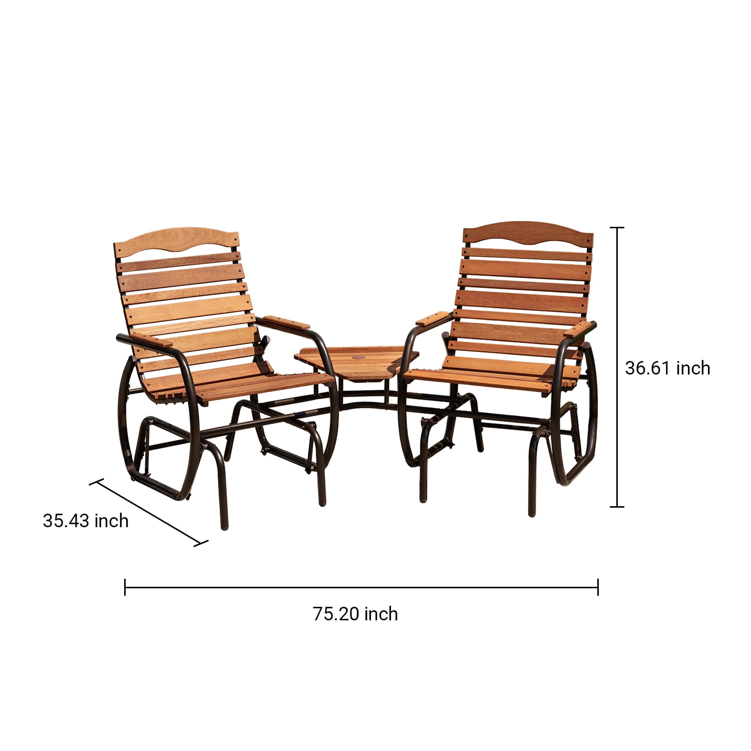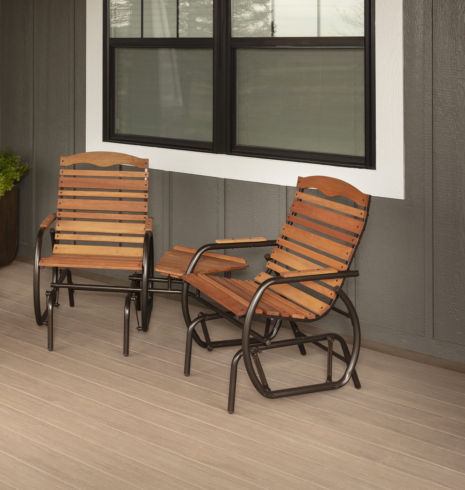 Jack-Post Hardwood Outdoor Gliding Tete-a-Tete Chairs in Bronze Frame