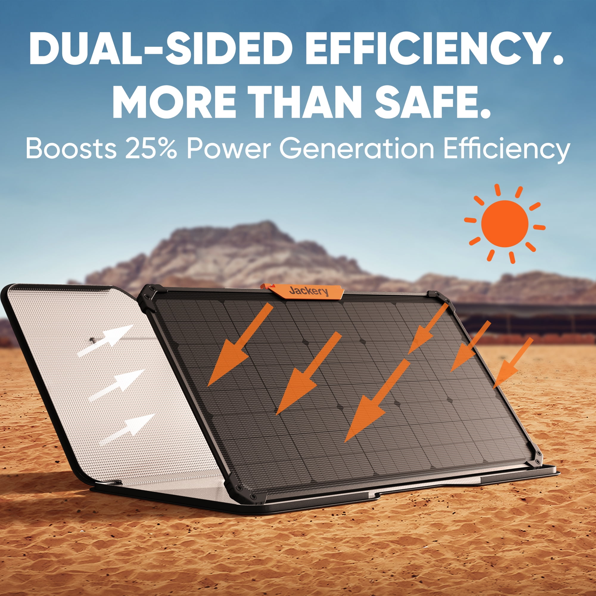 Jackery Dual-Sided 80W Solar Panel, Enhanced Efficiency, IP68 Waterproof
