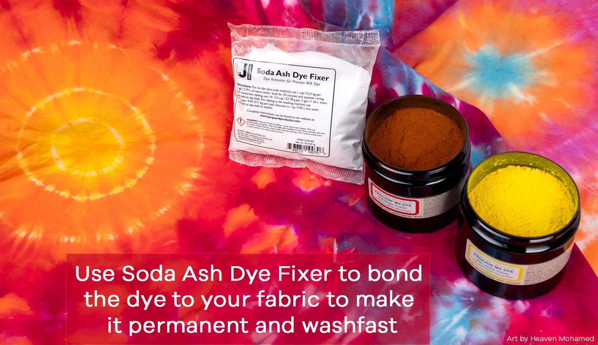 Procion MX dyes are “cold water dyes” that are fixed chemically instead of with heat The most permanent and washfast of all dyestuffs A soda ash fixative, which can be added directly to the dye bath or used to pretreat the fabric The ideal colors for shibori, ice dyeing, tub and low water immersion dyeing, printing, direct painting and other “alternative” dye applications