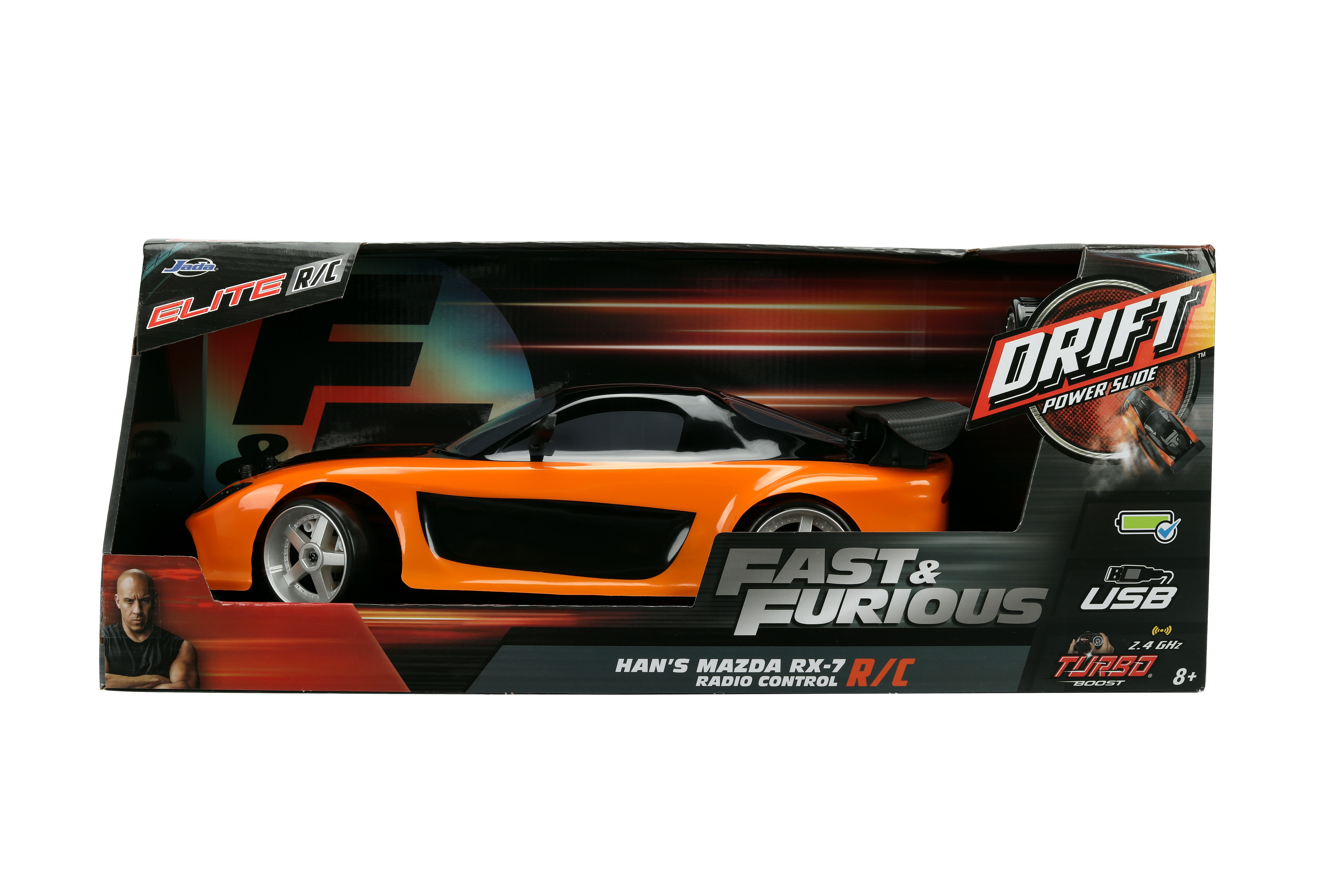 Licensed product from the Fast & Furious Saga. READY TO PLAY: Product comes ready to play out of the box. Simple and convenient recharging with USB technology. A set of AA batteries come included. MULTIPLE PLAYERS: 2.4 GHz frequency enables up to 16+ players to play at a range of 100 feet. FAST DRIFTING: Featuring a Turbo Button and Pistol Grip Controller, hit the Turbo button to initiate the drifting feature and slide with style. AGE: 8+