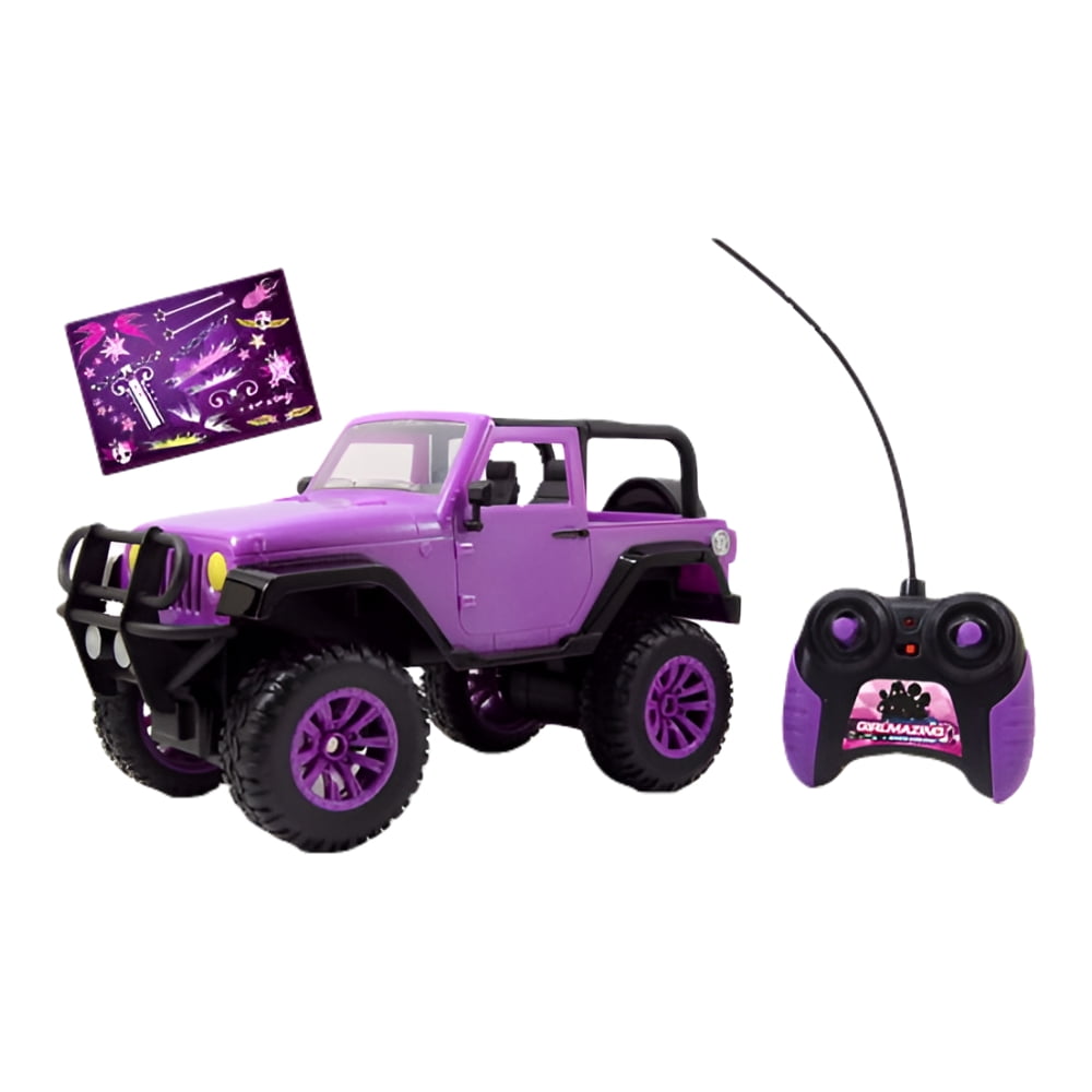 Girlmazing Big Foot Jeep Radio-Controlled Vehicle: Fun, bright and colorful line of licensed, customizable R/C cars Choose a vehicle that best suits your personality Express your style with customizable stickers Radio controlled jeep includes 20 stickers Requires 4 AA batteries and one 9V battery (not included)