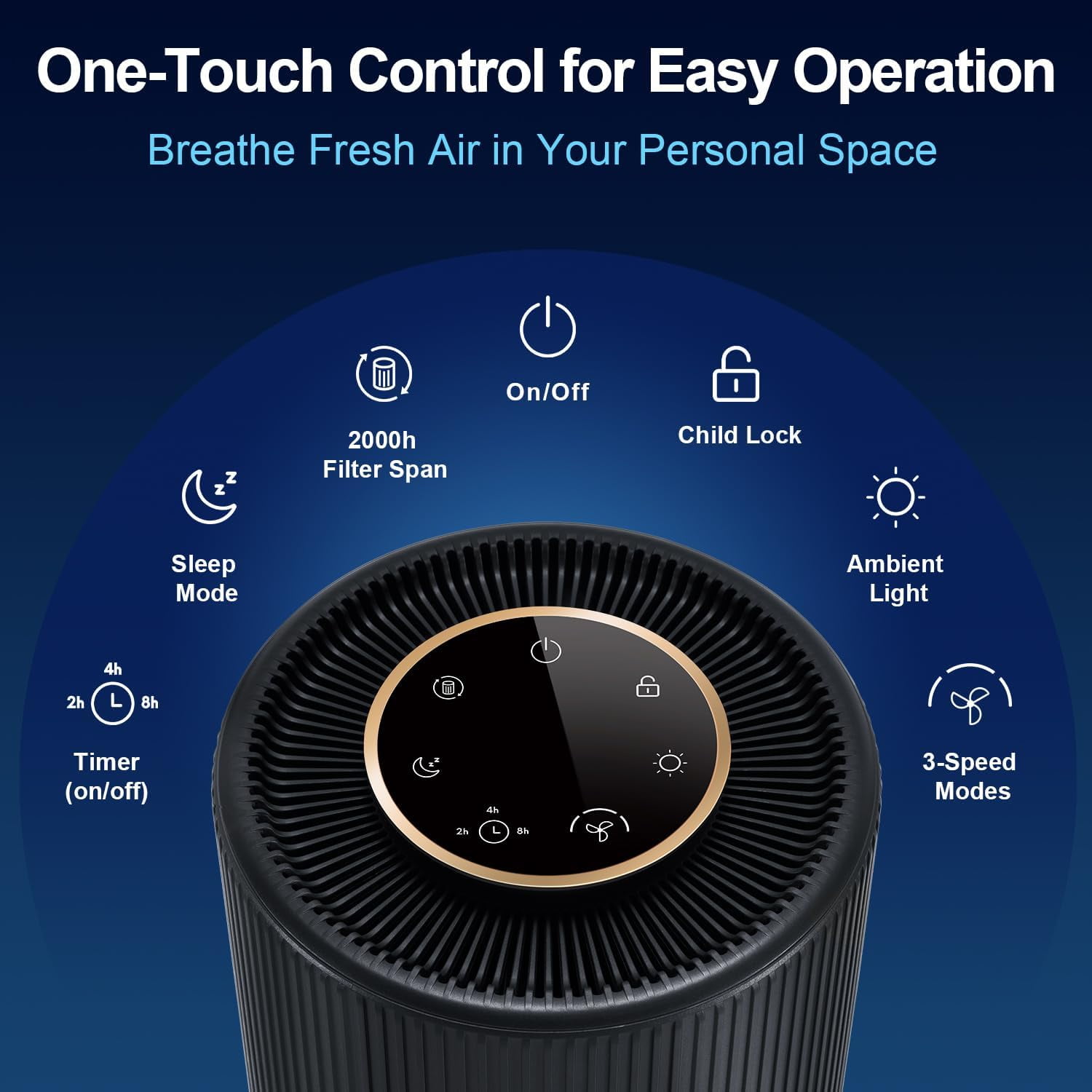 【H13 True HEPA Filtration】Captures 99.97% of airborne particles for cleaner, healthier air. 【Odor Elimination】Equipped with activated carbon filters to effectively remove odors and unpleasant smells from the air, promoting a fresher environment. 【Allergen Reduction】Targets common allergens such as pollen, dust, and pet dander, providing relief for allergy sufferers and improving overall respiratory health. 【Quiet Operation】Provides efficient purification with minimal noise, ideal for quiet environments. 【450 Sq.ft Coverage】Purifies large spaces effectively, ensuring comprehensive air cleaning. 【Adjustable Fan Speeds】Customize the purification intensity with 3 fan speed settings, catering to different air quality needs and preferences. 【Night Mode】Activate a special night mode feature for even quieter operation and dimmed indicator lights, perfect for uninterrupted sleep. 【Timer Function】Set the purifier to operate for a 2-4-8H, providing convenience and energy savings. 【Child Lock】Ensure safety and prevent accidental changes to settings with the child lock function, ideal for households with children. 【Sleek Black Design】Adds a touch of elegance to any room decor while enhancing air quality. 【Versatile Use】Perfect for home, bedroom, or office, promoting better respiratory health. 【User-Friendly Controls】Easy-to-use interface for effortless operation and customization. 【Energy-Efficient】Helps save energy while maintaining effective air purification performance. 【Filter Replacement Reminder】Notifies when it’s time to replace the filter, ensuring optimal performance. 【Compact Size】Space-saving design fits seamlessly into any room without taking up much space. 【Reliable Quality】Backed by Jafanda’s commitment to quality and customer satisfaction. 【Exclusive Filter Sourcing】 Purchase original replacement filters directly from us to guarantee compatibility and maintain peak performance of your Jafanda air purifier. 【Warranty Coverage】 Backed by a comprehensive warranty, providing peace of mind and assurance of product quality and reliability.