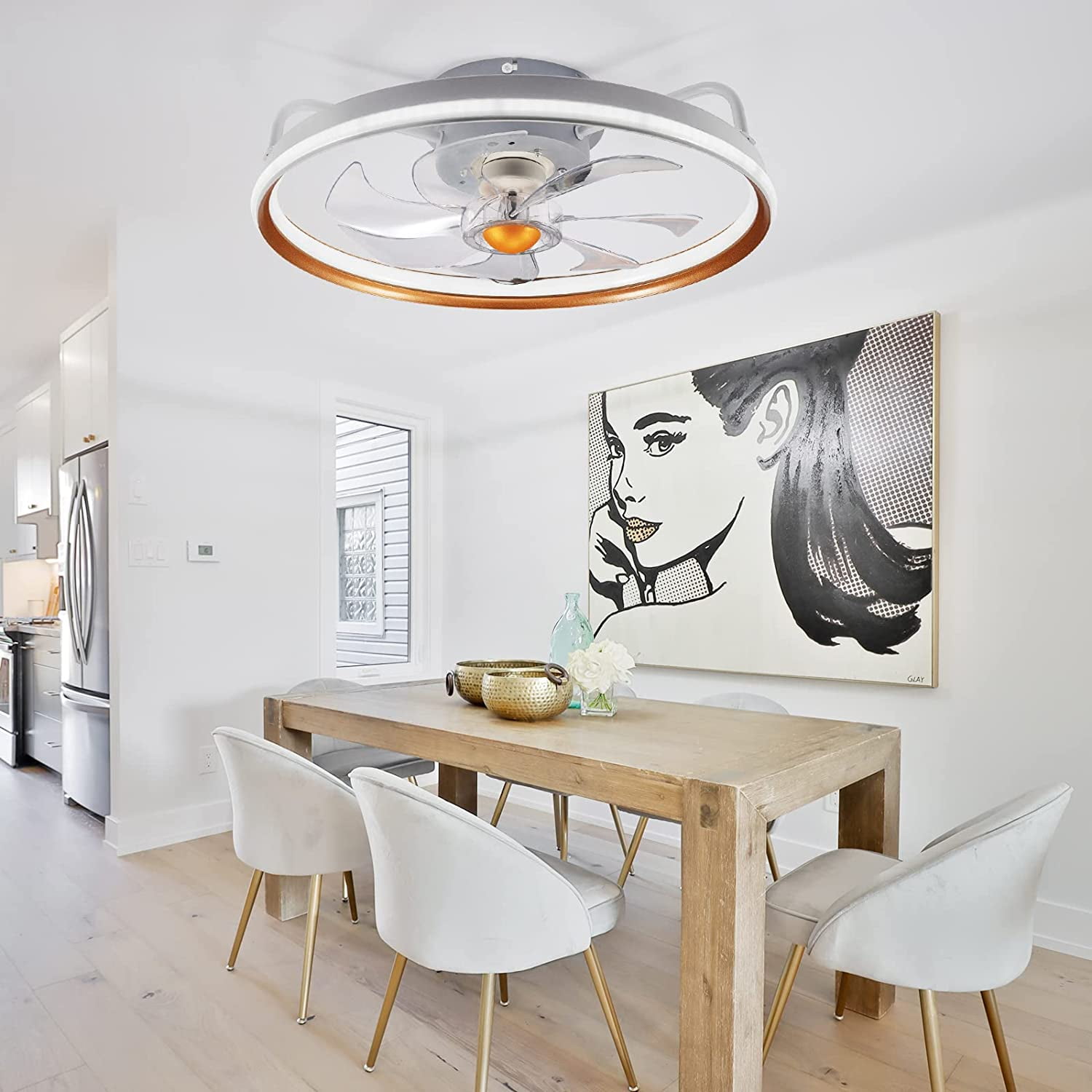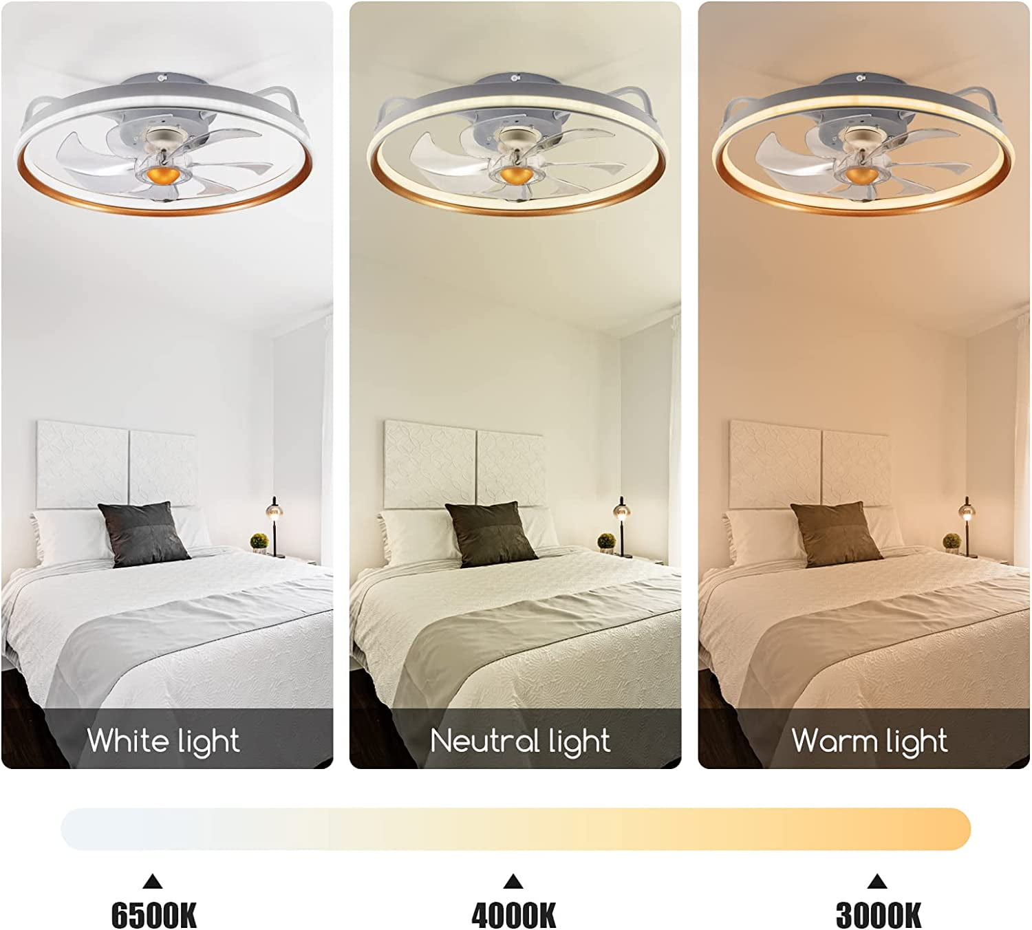 MODERN TRANSPARENTBLADES CEILING FAN The unique design of the modern minimalist fanlight makes it ideal for your home decor. The Unique Modern Ceiling Lamp Design, With Creative Fans, is The Best Choice For Decorating Homes! Suitable Place For Installation: We Recommend Installation By an Approved Electrician. Turn off The Power Until The Installation is Complete. Use Remote Or APP To Change The Light Color (Warm/Daylight/Cool Light), Dimming The Light, Adjust Wind Speeds And Set Fan Working Time. Packed With Detailed Remote Instruction And APP Download Guide, Bring You Easy-To-Use Experience. Product details Ceiling Fan Light with Remote Low Profile Enclosed Ceiling Fan 3 Light Color and 6 Speeds&Timer for Home Bedroom Living packing: 1 * Fan light 1 * Instructions 1 * Remote control