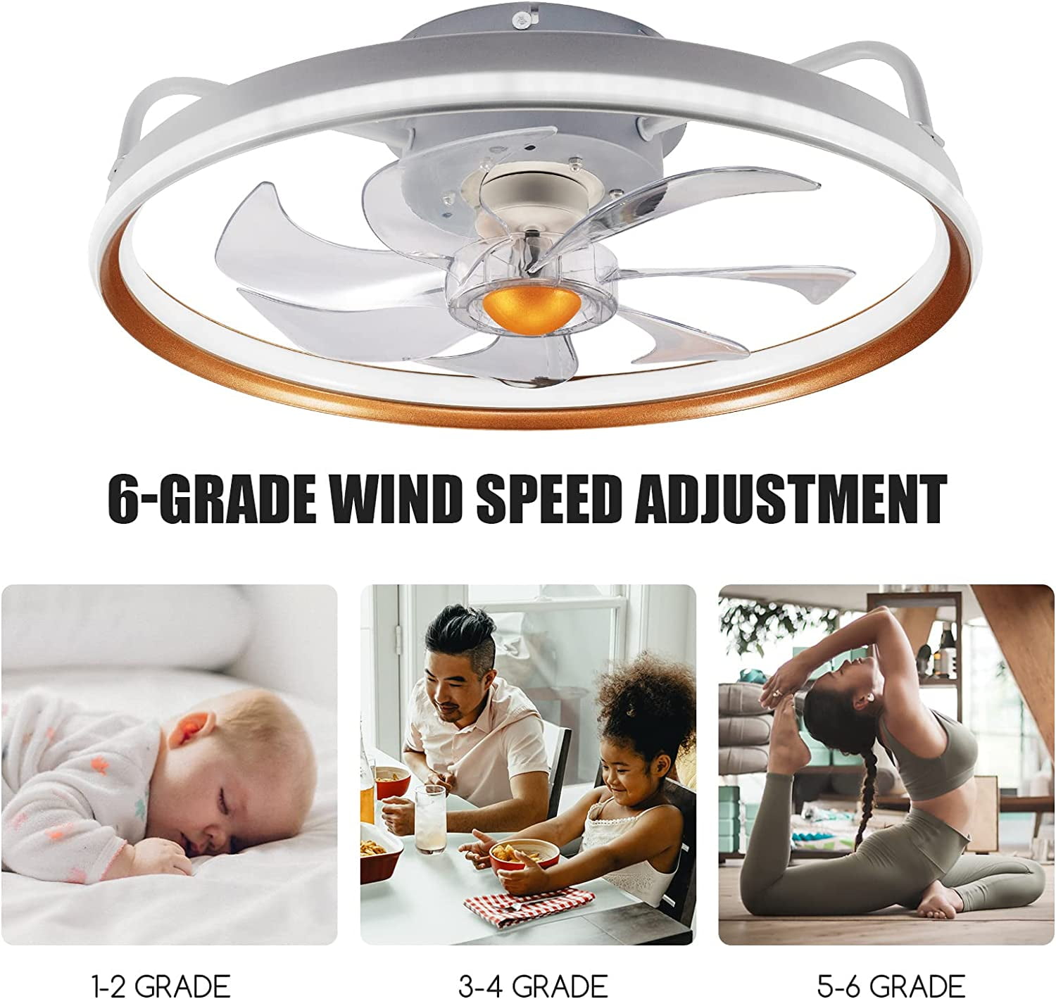 【Remote Control】 Modern ceiling fan works with a remote which makes it convenient to control timing functions. The remote has 6 different speed-settings that we can be able to get the right amount of air pushed around the room. The fan or illumination can be turned on separately 【APP Control】You can adjust the wind speed and stepless dimming light color, fan guide cover function and sleep mode by remote control. Setting timer, fan setting and light setting by APP 【Modern Ceiling Fans 2 in 1 Design】Modern design low profile ceiling fan with LED light to keep the home interior stylish and inspired. The cool outlooking design makes it a good home decoration.6 speeds fan and sleep timer (2hrs) settings make it easy to maintain the ideal comfort level 【Safety Design】Traditional fans with exposed blades have safety hazards, the modern round enclosed hidden blades are safer, more deal for loft beds and low ceilings, so don’t worry about any risk of being hit by rotating blades 【Easy to Install】 Most functional components have been assembled, you can finish the installation within an hour. The installation manual is included. Any question, feel free to contact our service team