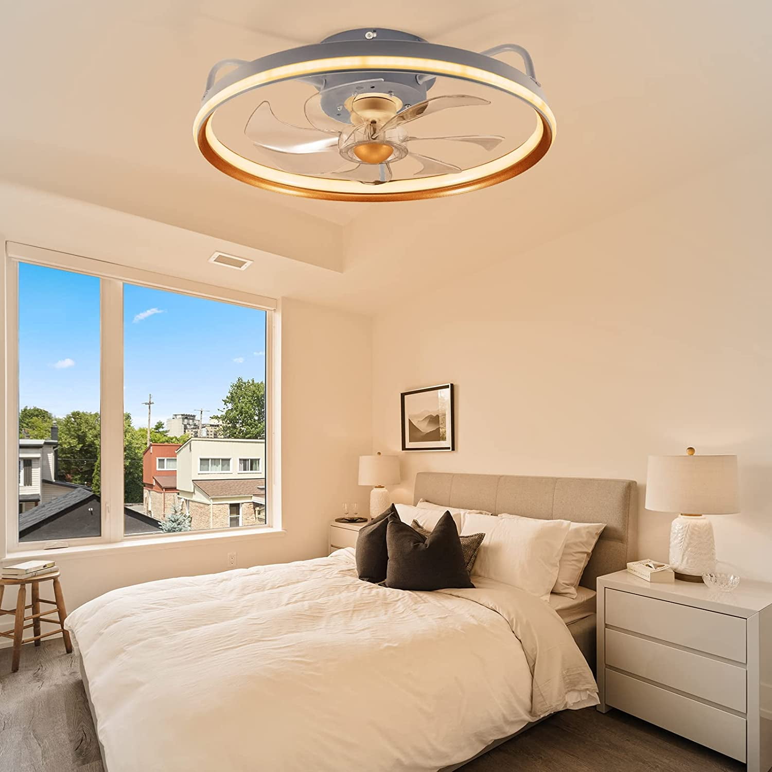 JahyShow Ceiling Fan Light with Remote Low Profile Enclosed Ceiling Fan 3 Light Color and 6 Speeds&Timer for Home Bedroom Living (GRAY)