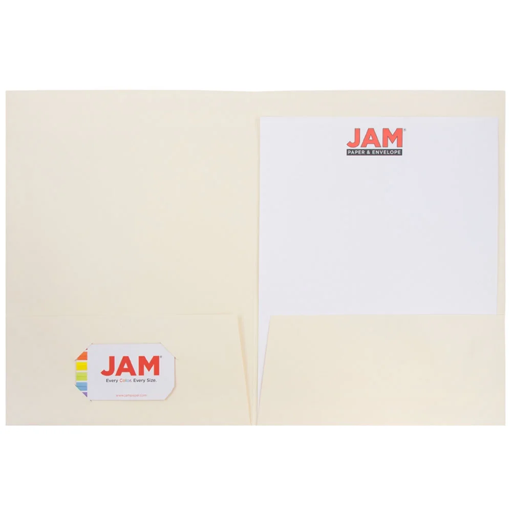 JAM Linen Two Pocket Folders, Ivory, 100/Pack