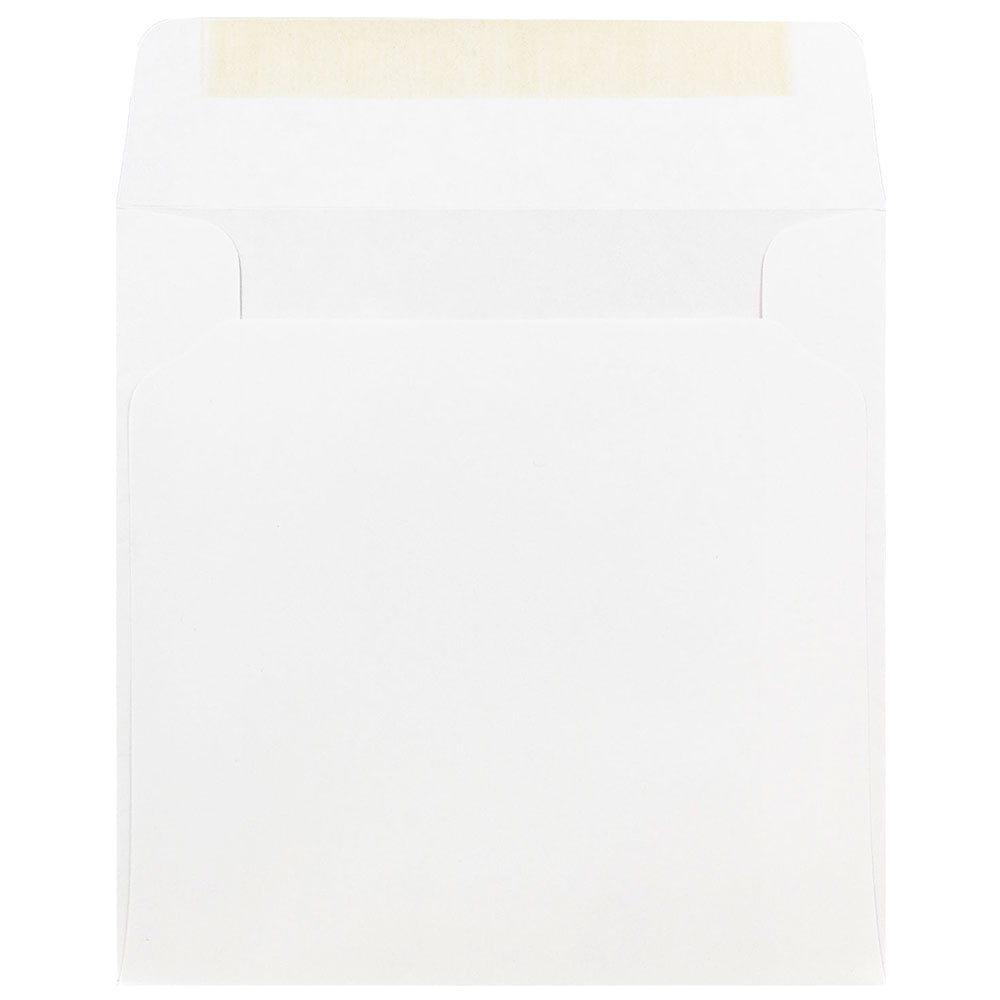 Color: White Size: Square (6 x 6 inches) Quantity: 250 envelopes per pack These envelopes feature a unique square shape and a gum closure. Perfect for Greeting Cards, Invitations, Weddings or any announcement.