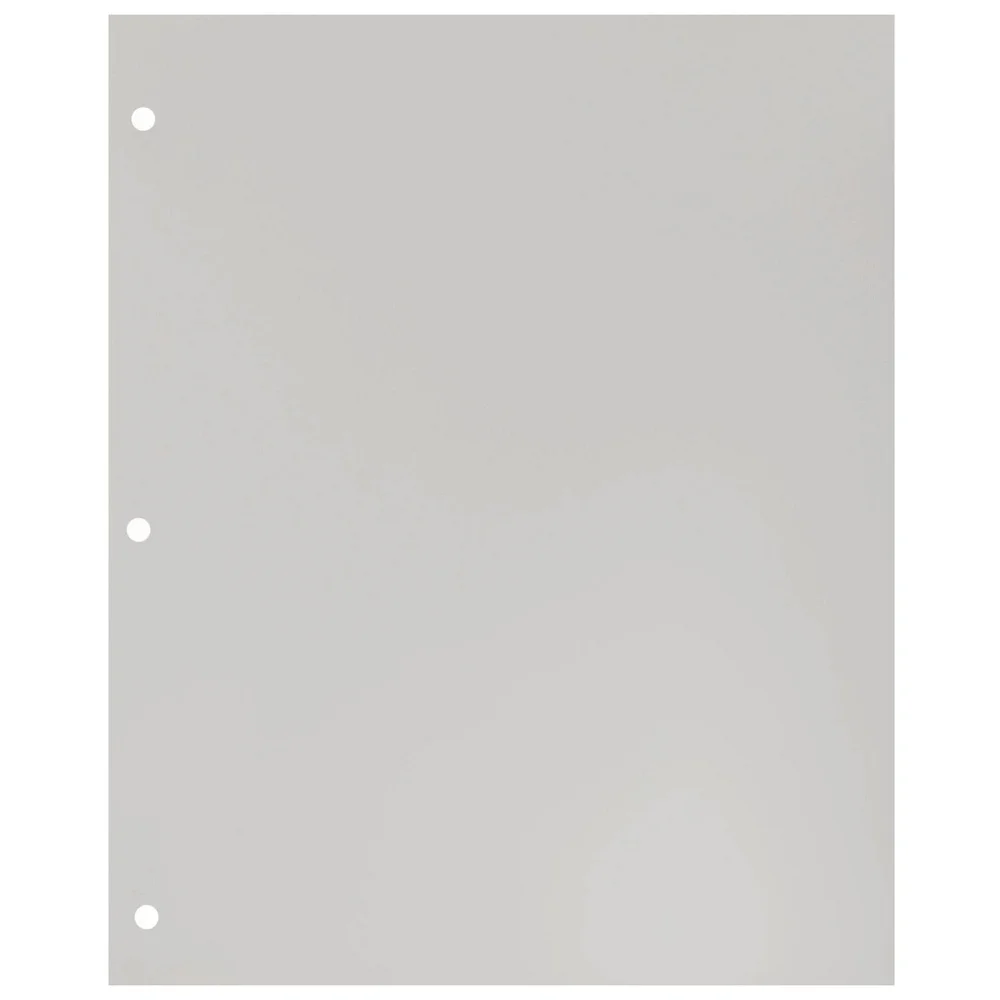 Glossy 3-Hole Punch Project Folders l Color: Silver Size: 9.25 x 11.5 inches l Easily fits 8.5″ x 11″ documents Quantity: 100 per box | Plenty for all subjects & projects Our high quality two-pocket presentation folders have a classic glossy finish, feature 3-hole punches allowing them to be put in binders, and have a business card slot on the left side These folders are the perfect accessory for students or office professionals looking to keep important files secure & organized at home, school, or on the go!