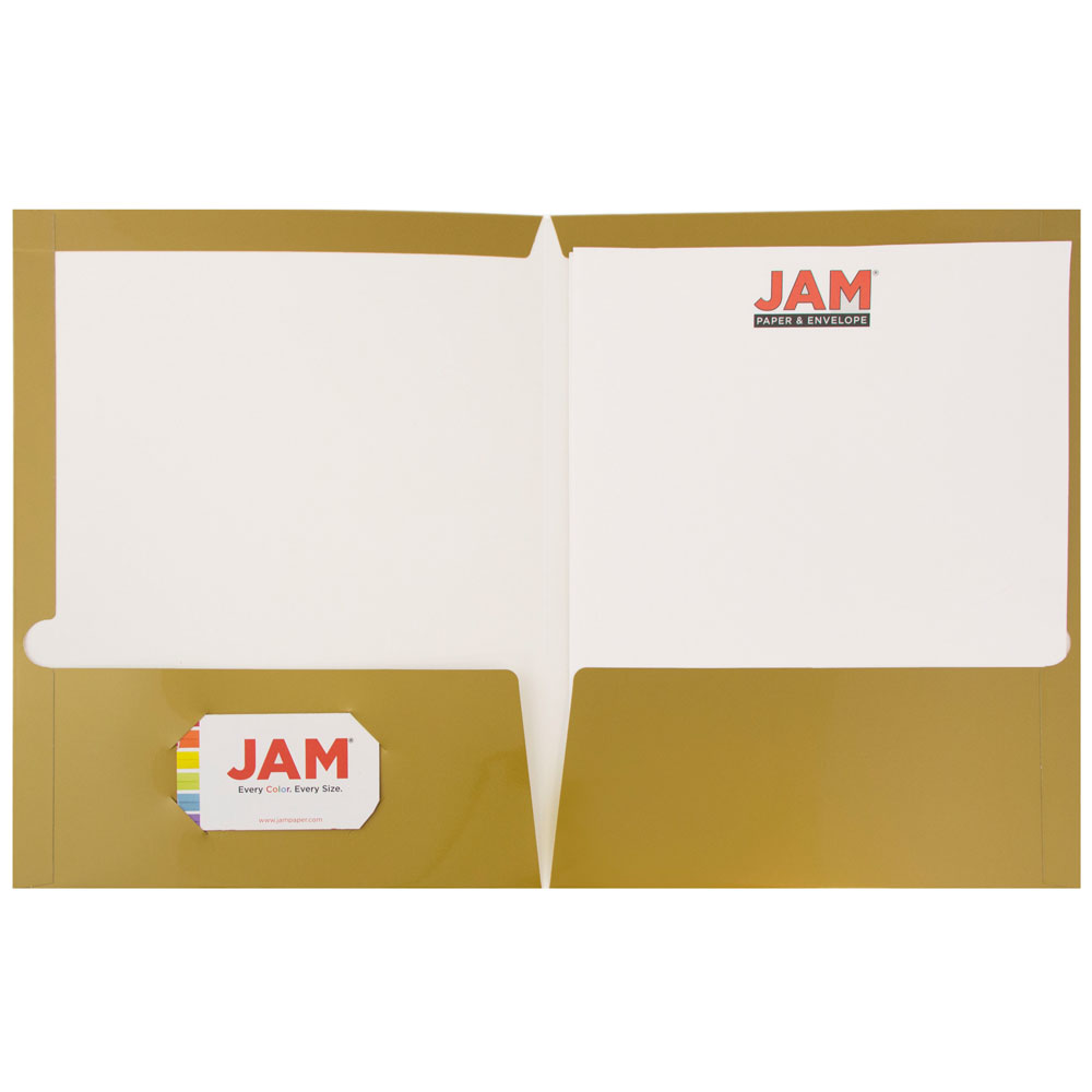 JAM Paper Glossy Two Pocket Folders, Gold, 100/Pack